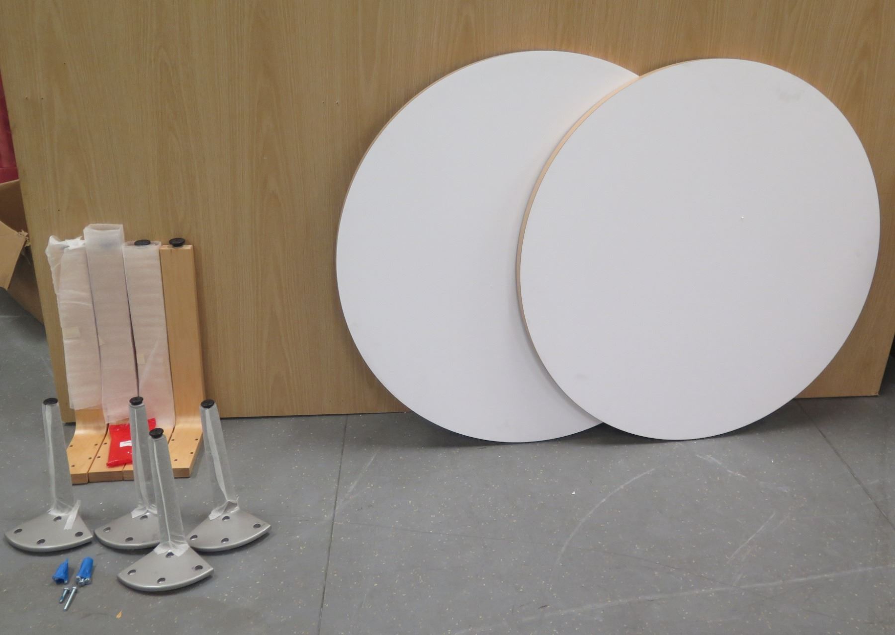 Qty 2 TMC Furniture Round Table Tops 36"dia w/ Wooden & Metal Legs (legs do not go w/ table but can be drilled)