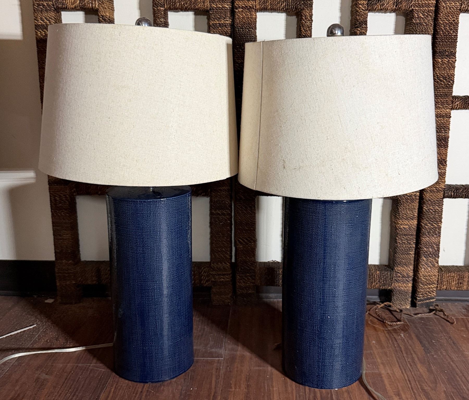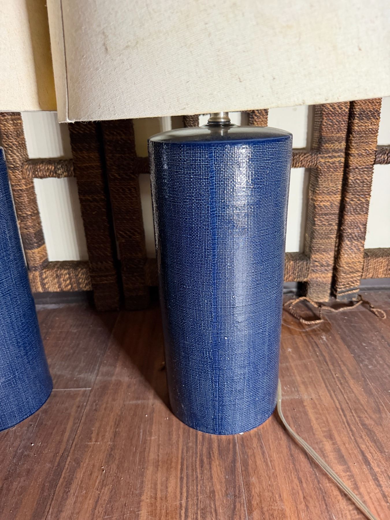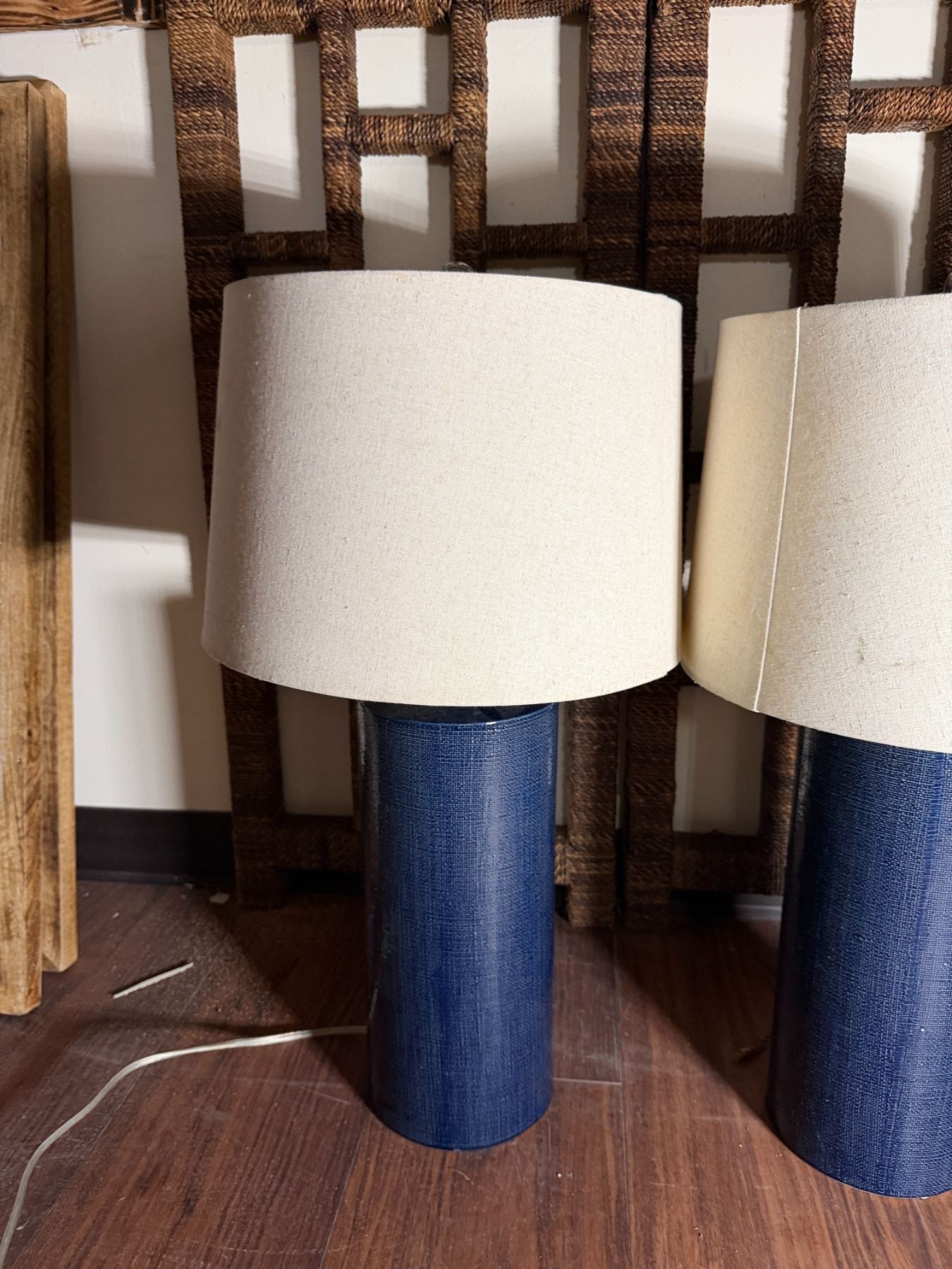 Qty 2 Table Lamps w/ Blue Bases & Shades 13" Dia, 26.5"H