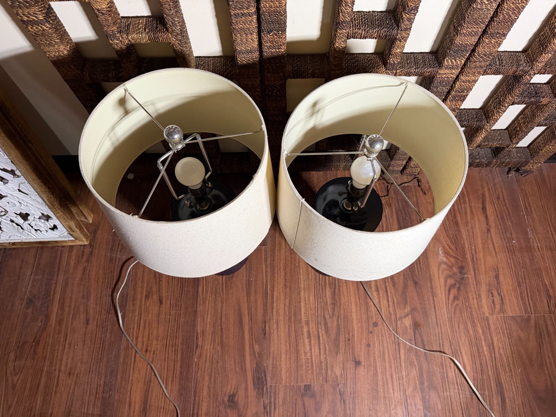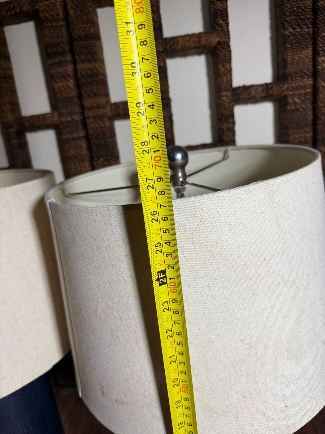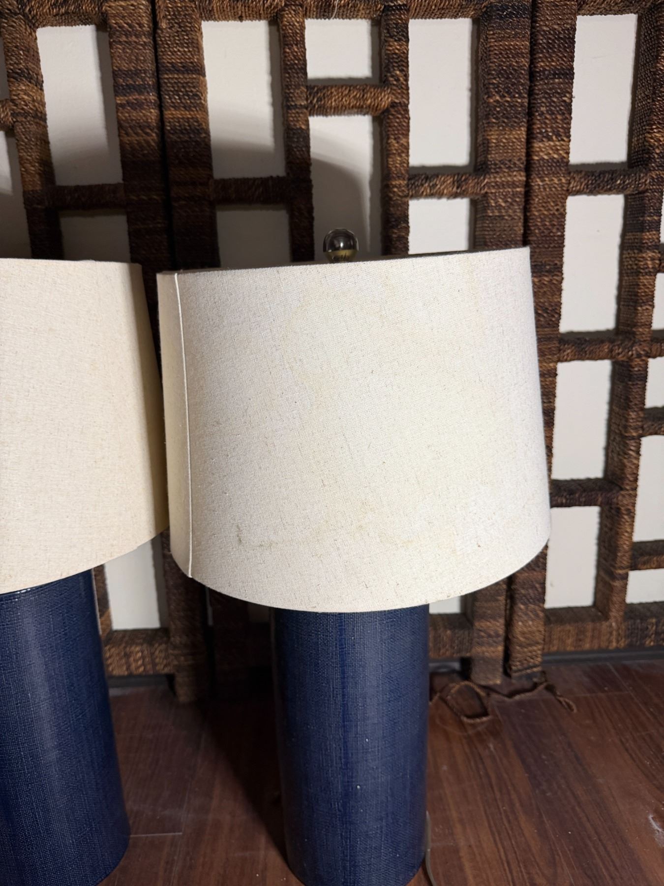 Qty 2 Table Lamps w/ Blue Bases & Shades 13" Dia, 26.5"H