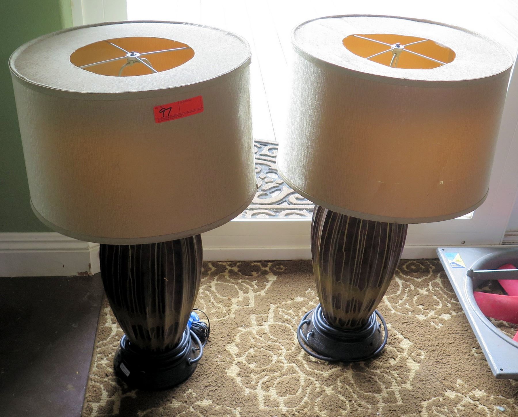 Qty 2 Table Lamps w/ Decorative Base & Round Shades