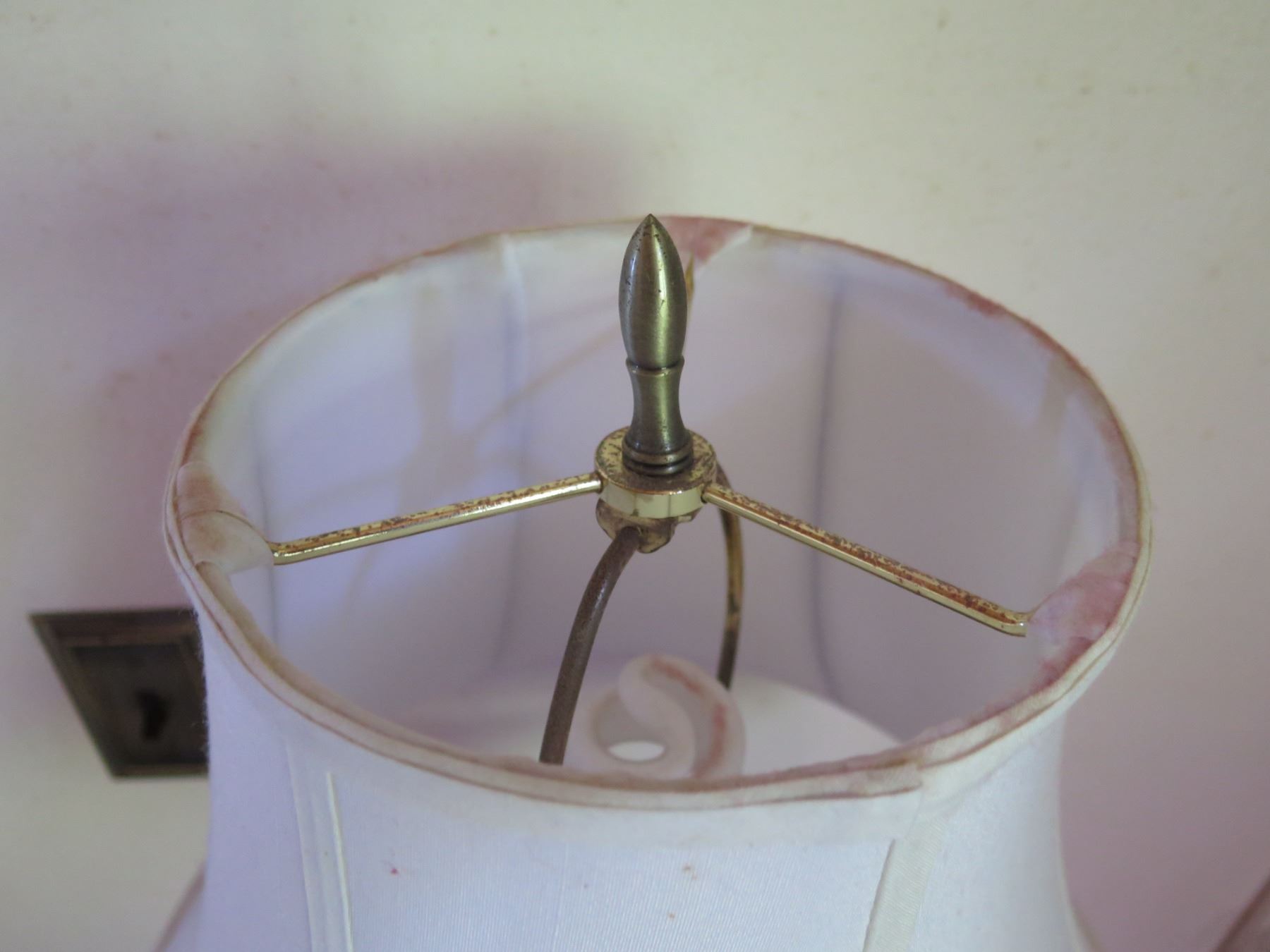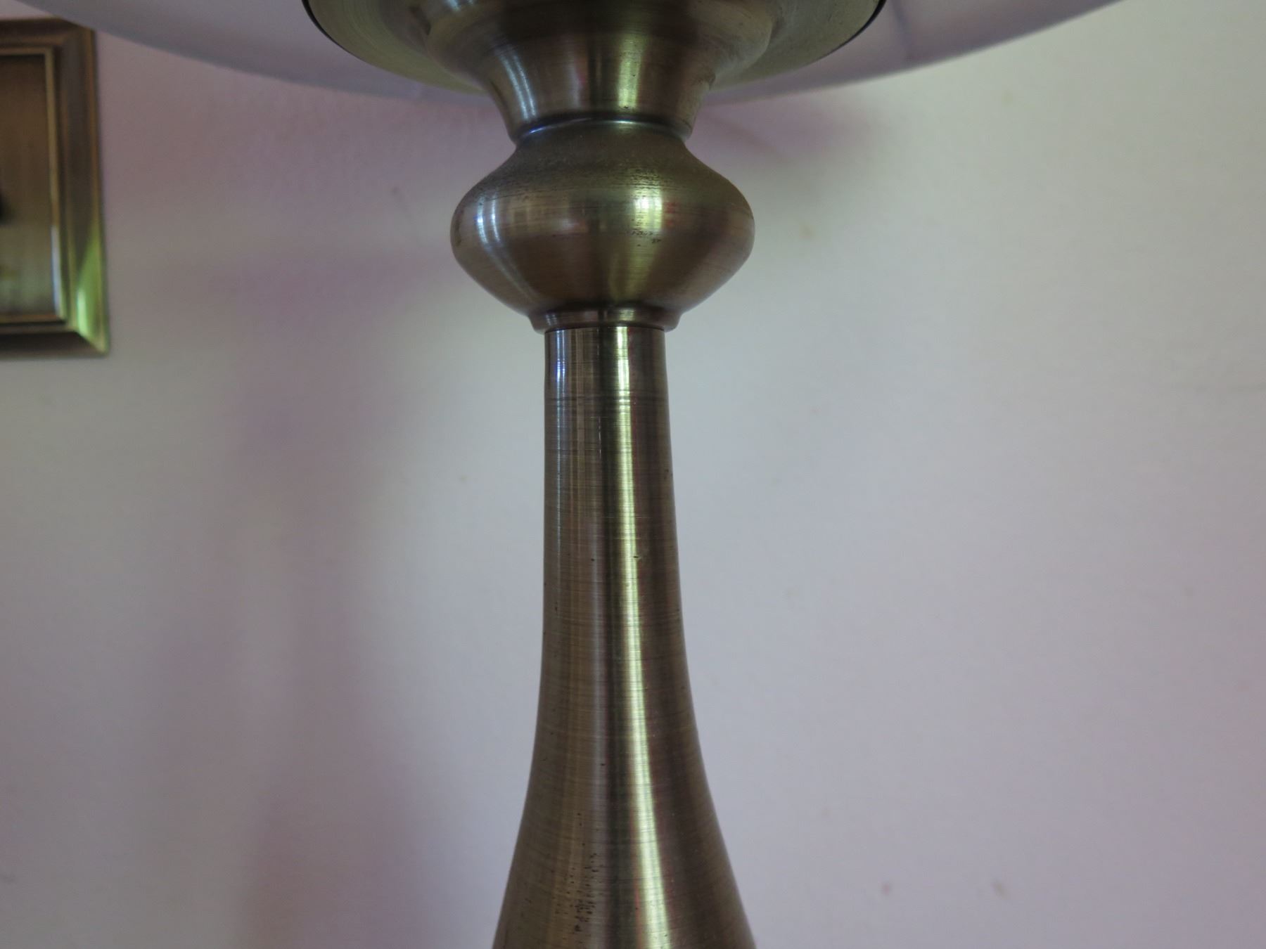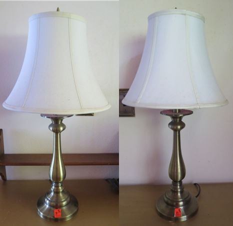 Qty 2 Table Lamps w/ Metal Pedestal Base & White Shades 26"H