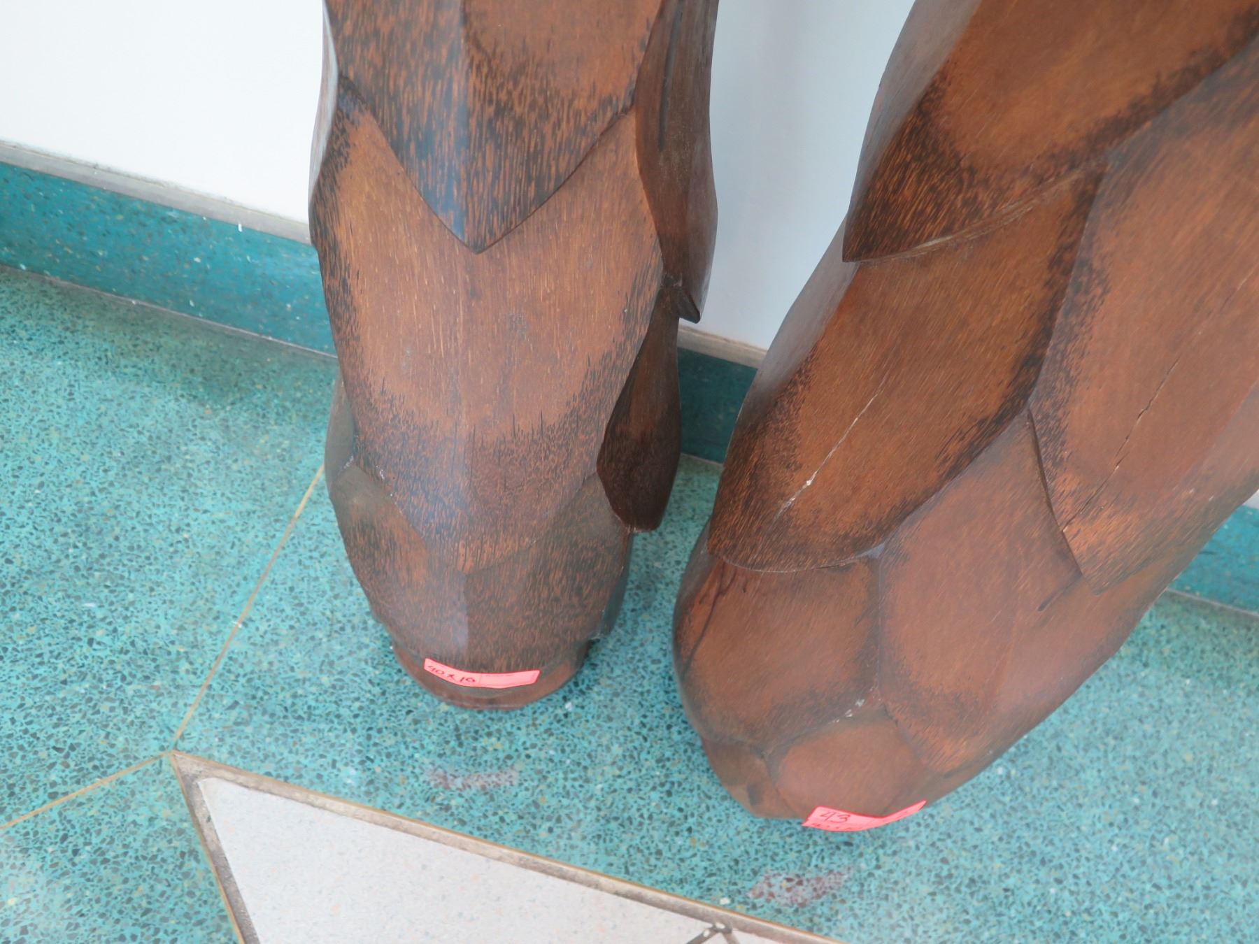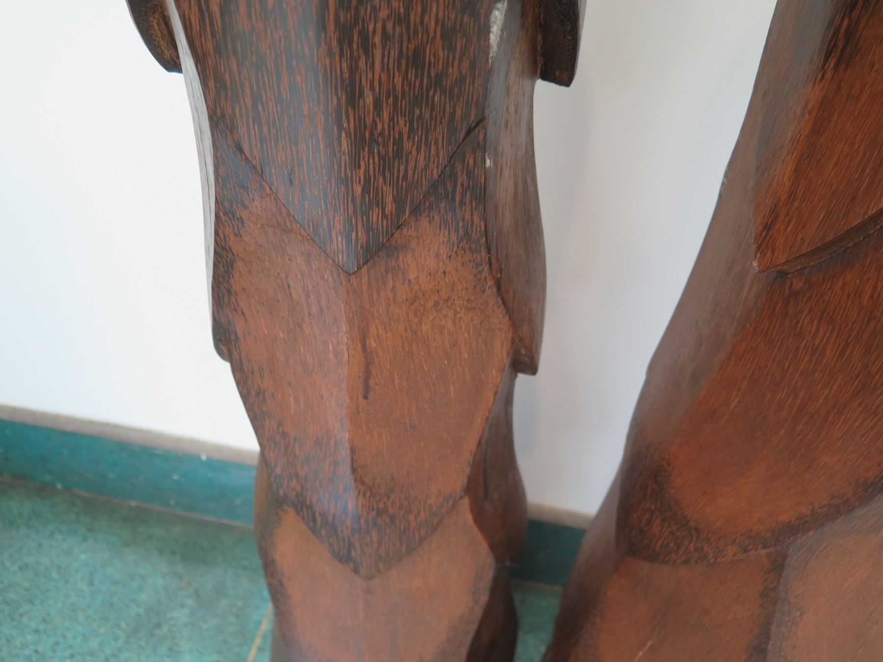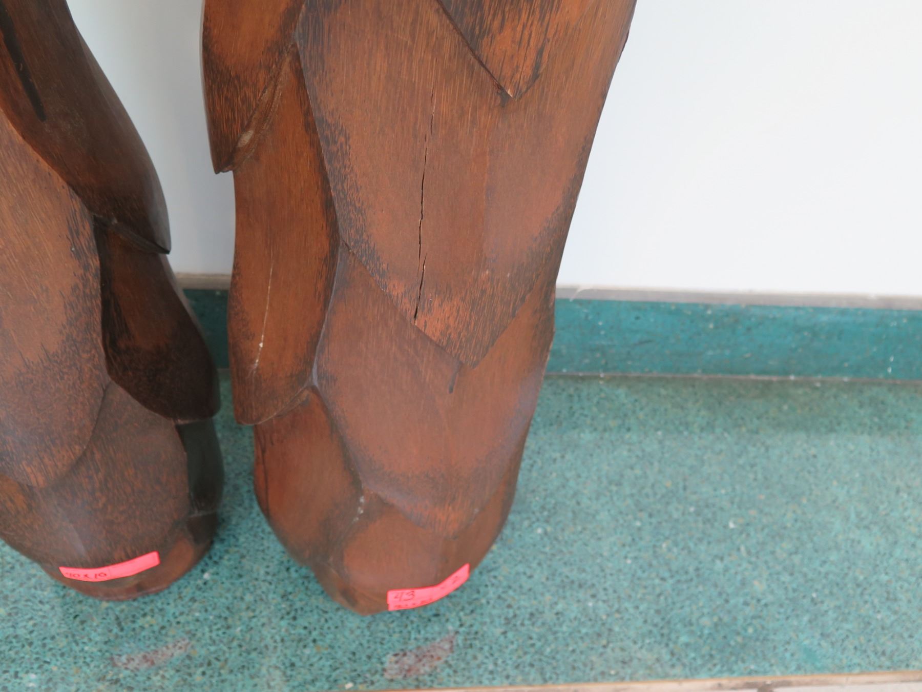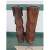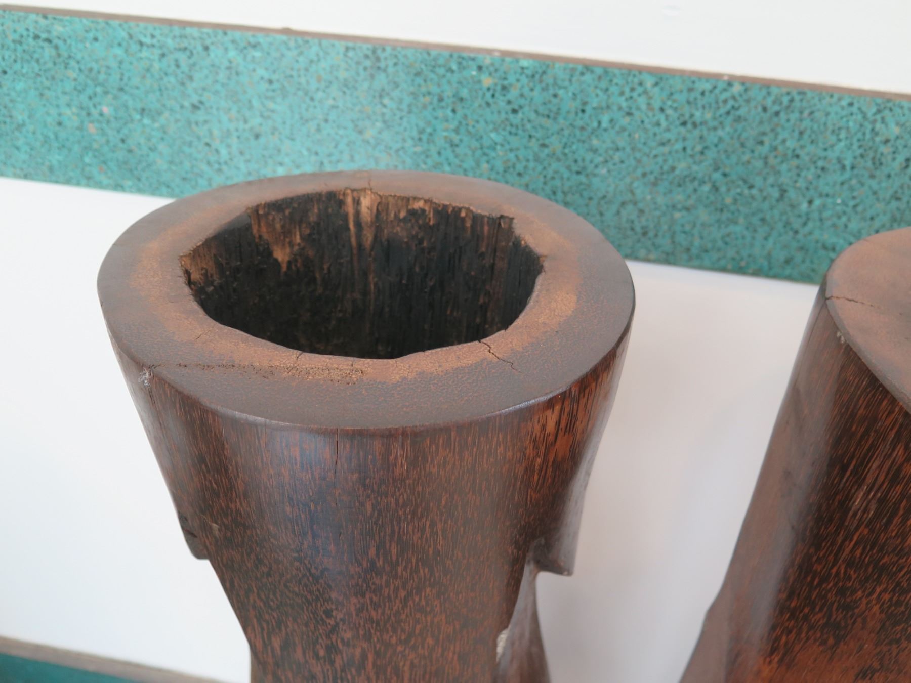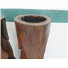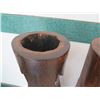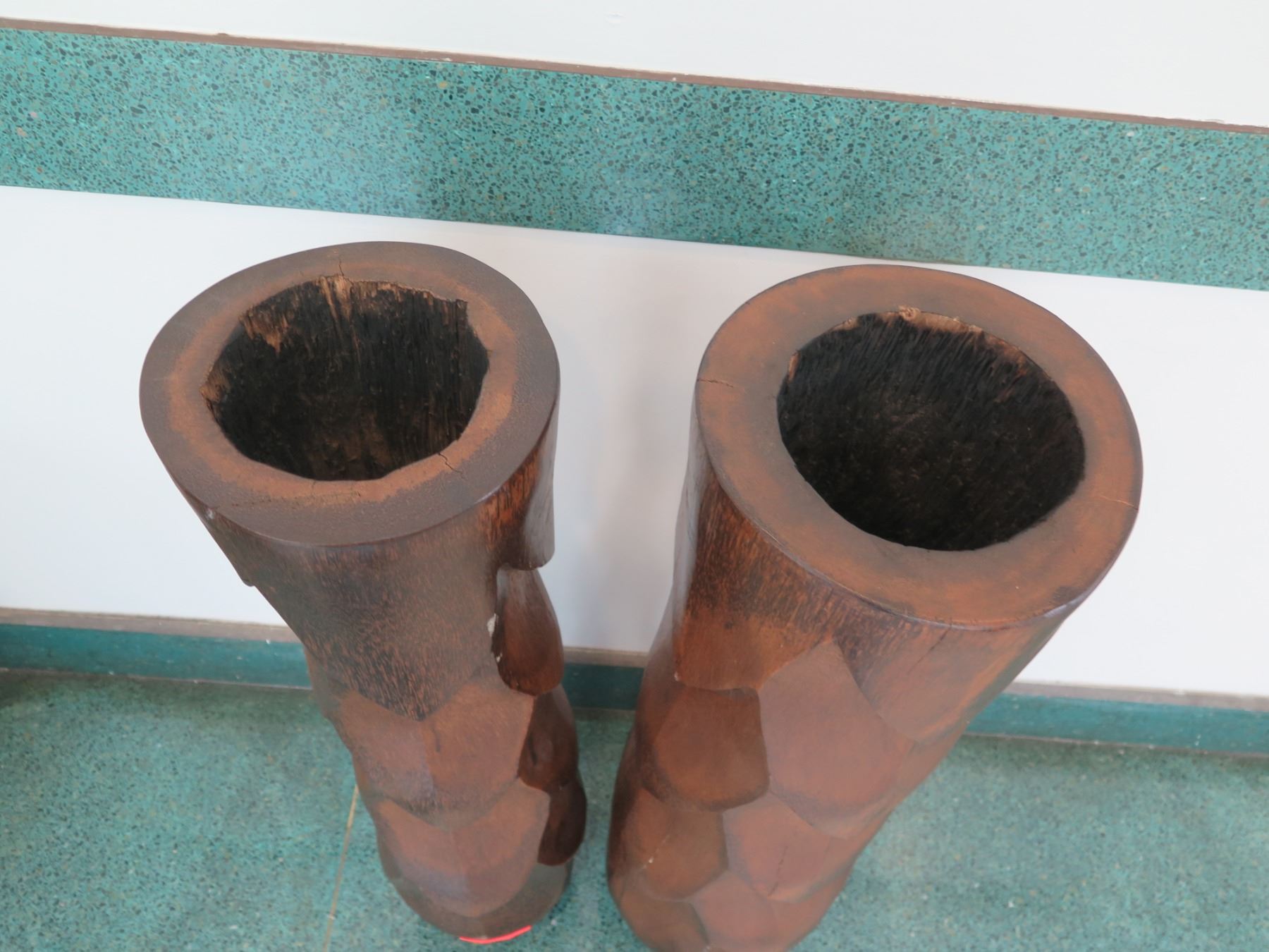 Qty 2 Tall Carved Pattern Wooden Vessels, Each Approx. 10" Dia, 40"H