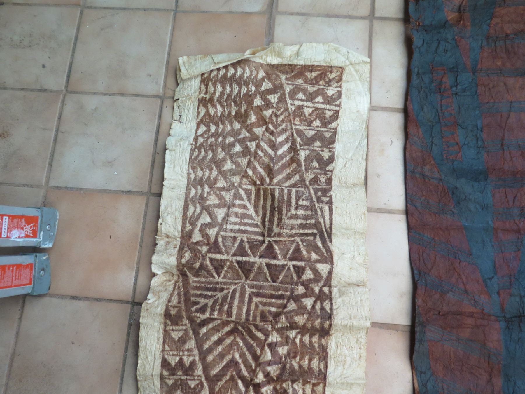 Qty 2 Tapa Cloth, Geometric Design Rust/Navy, Beige/Brown