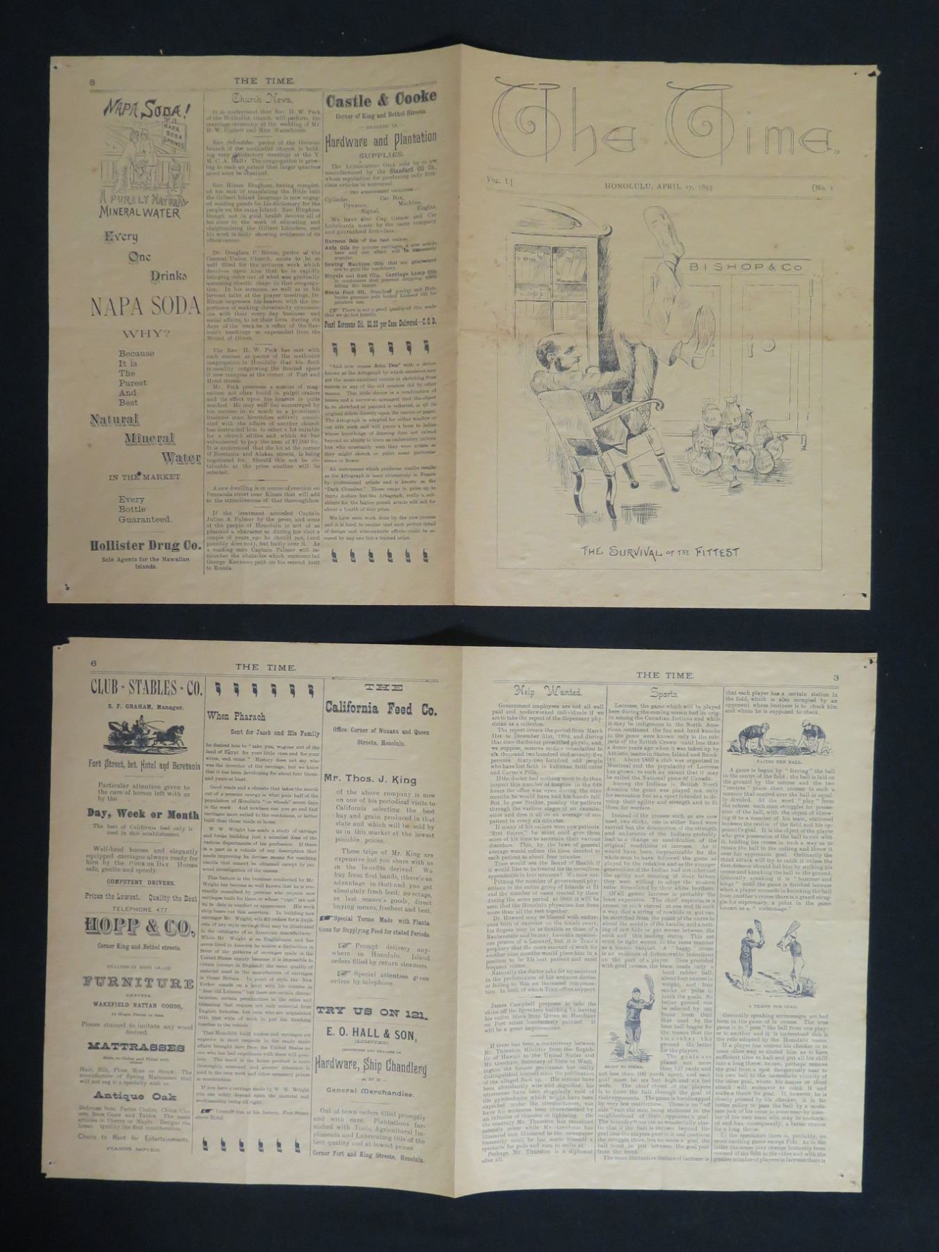 Qty 2 The Time Honolulu April 17, 1895 Newspaper Pages
