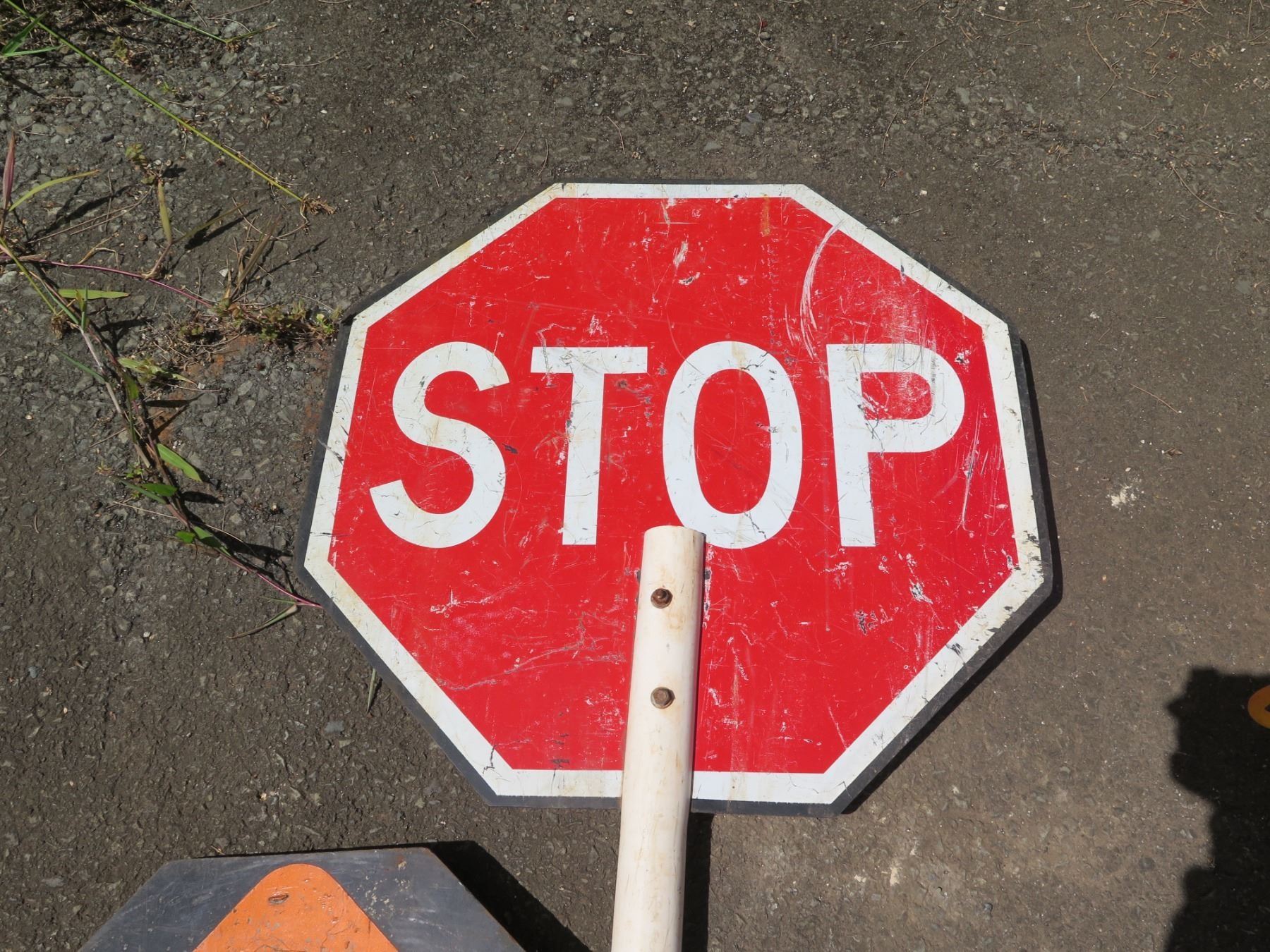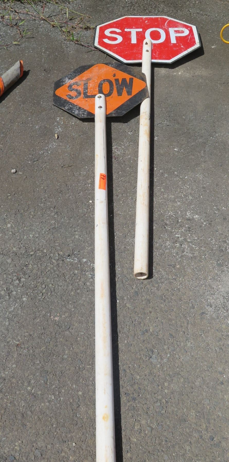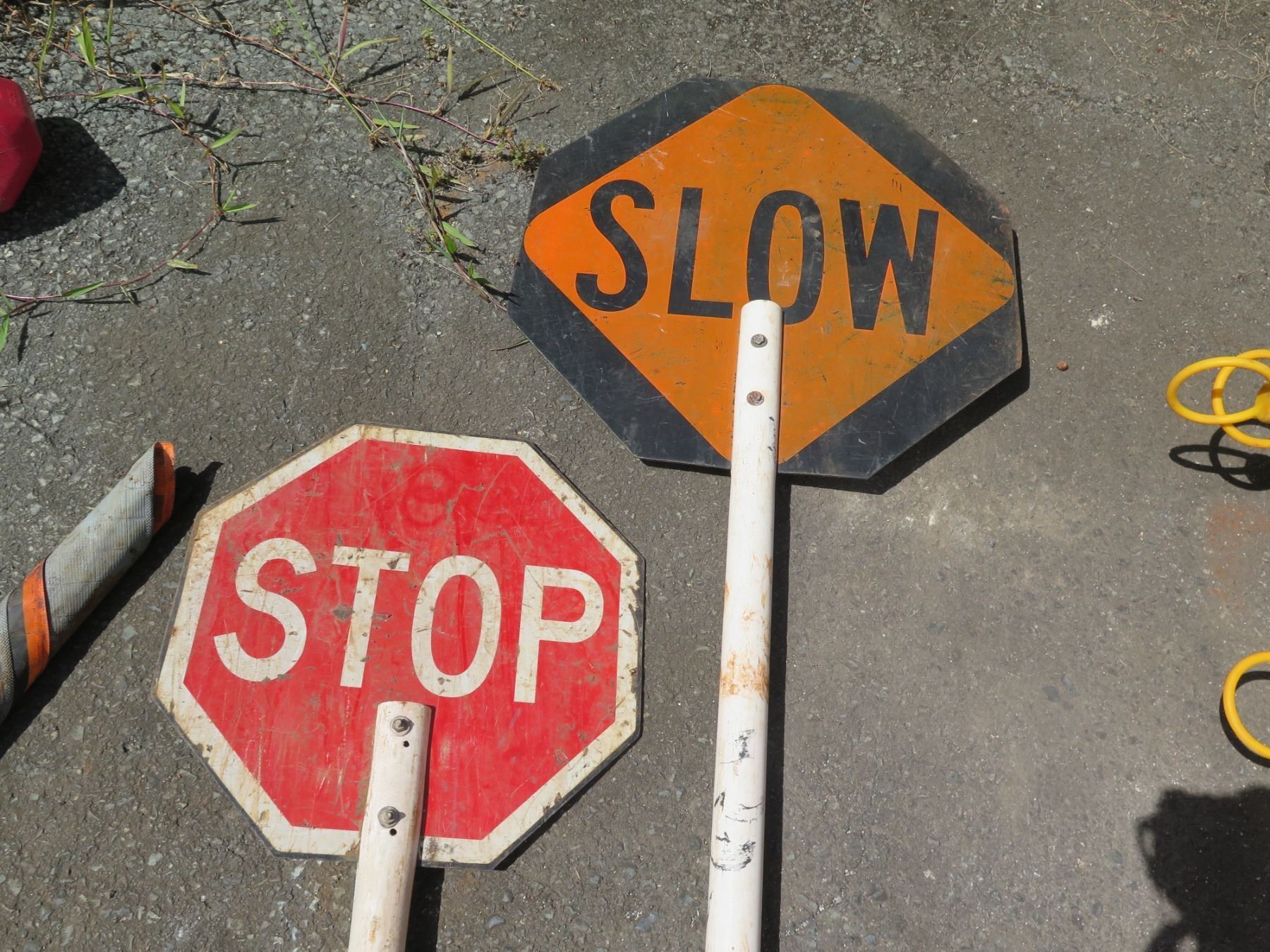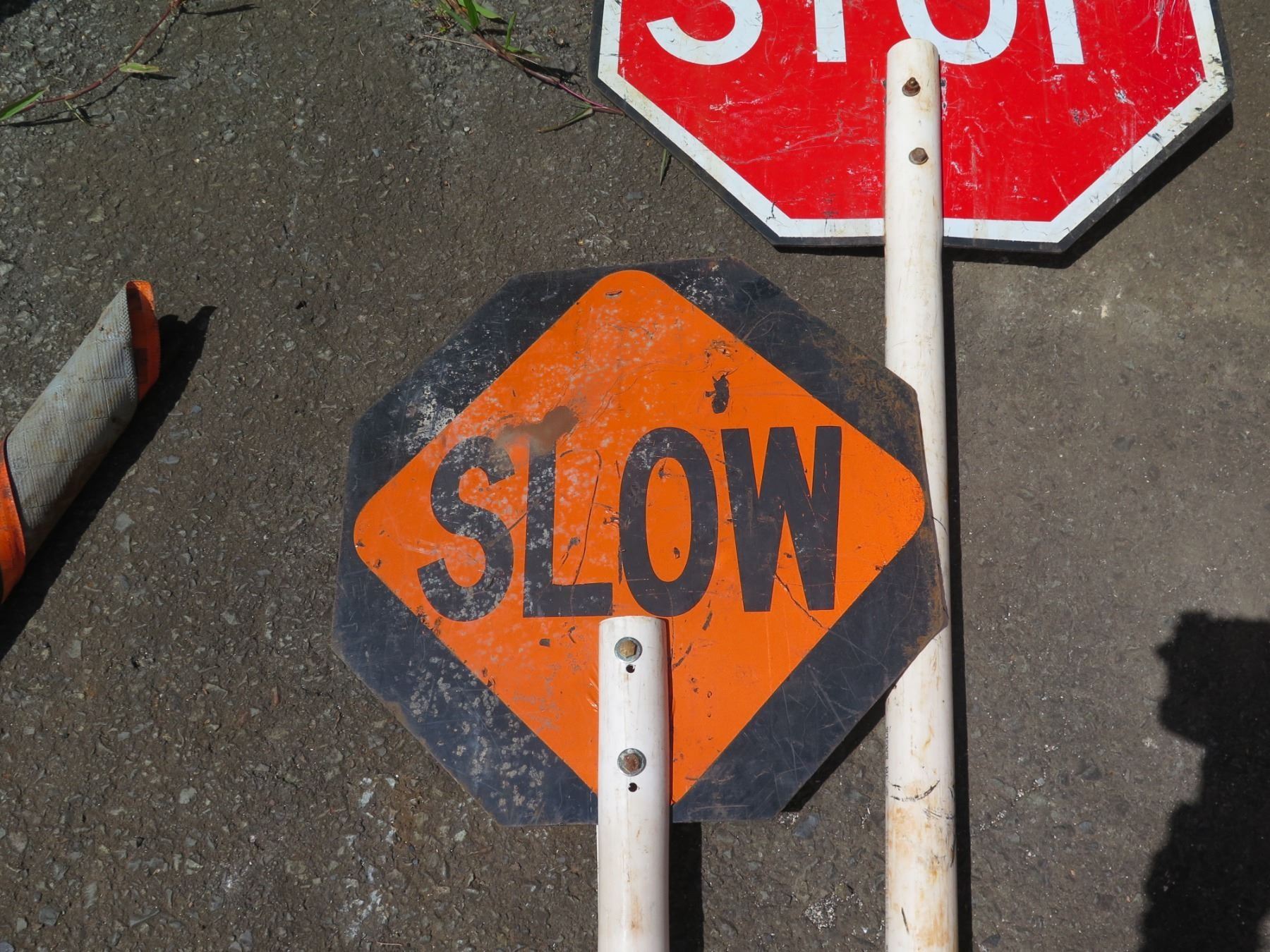 Qty 2 Traffic & Crosswalk Signs: Slow & Stop on Long Pole