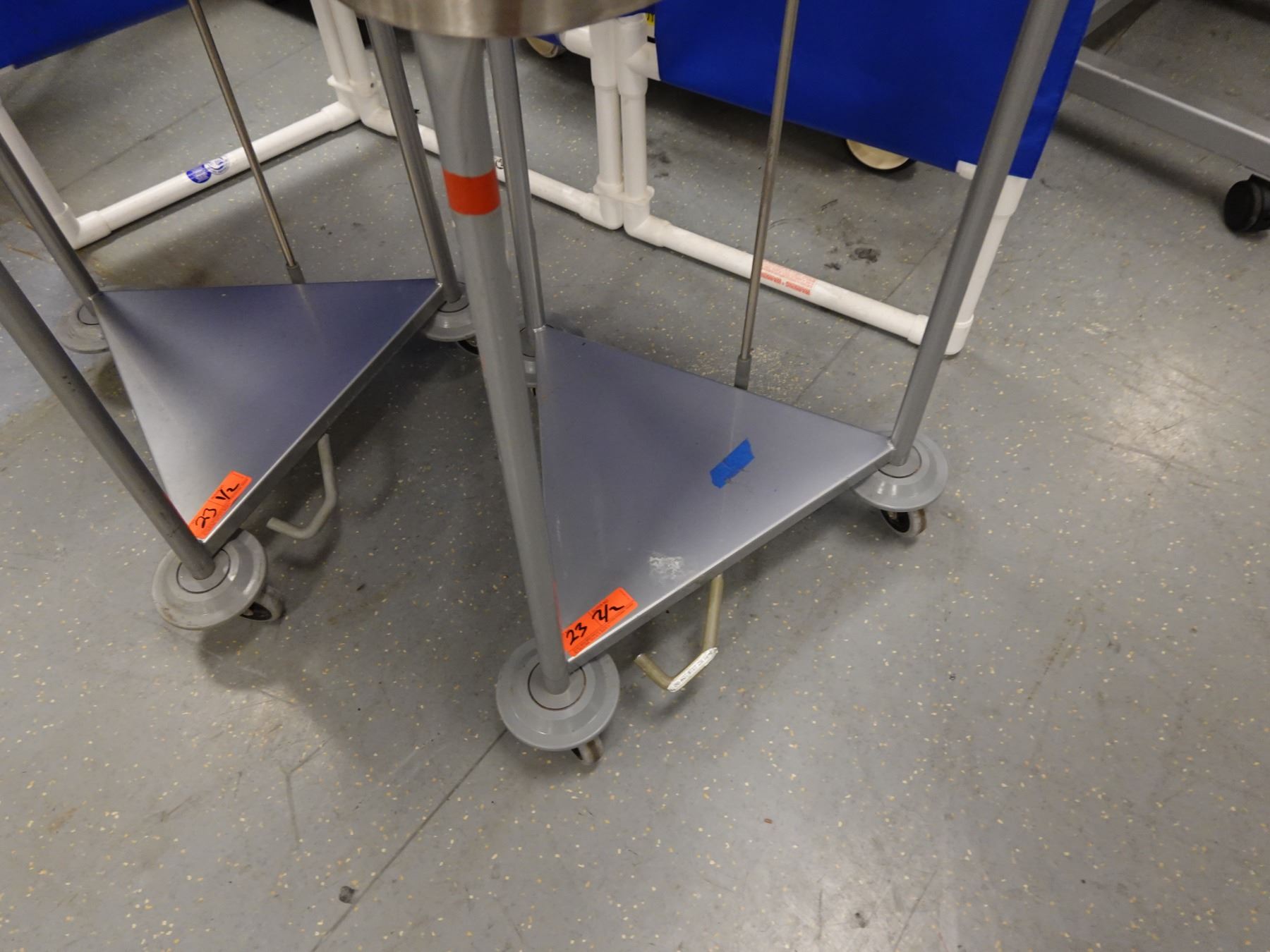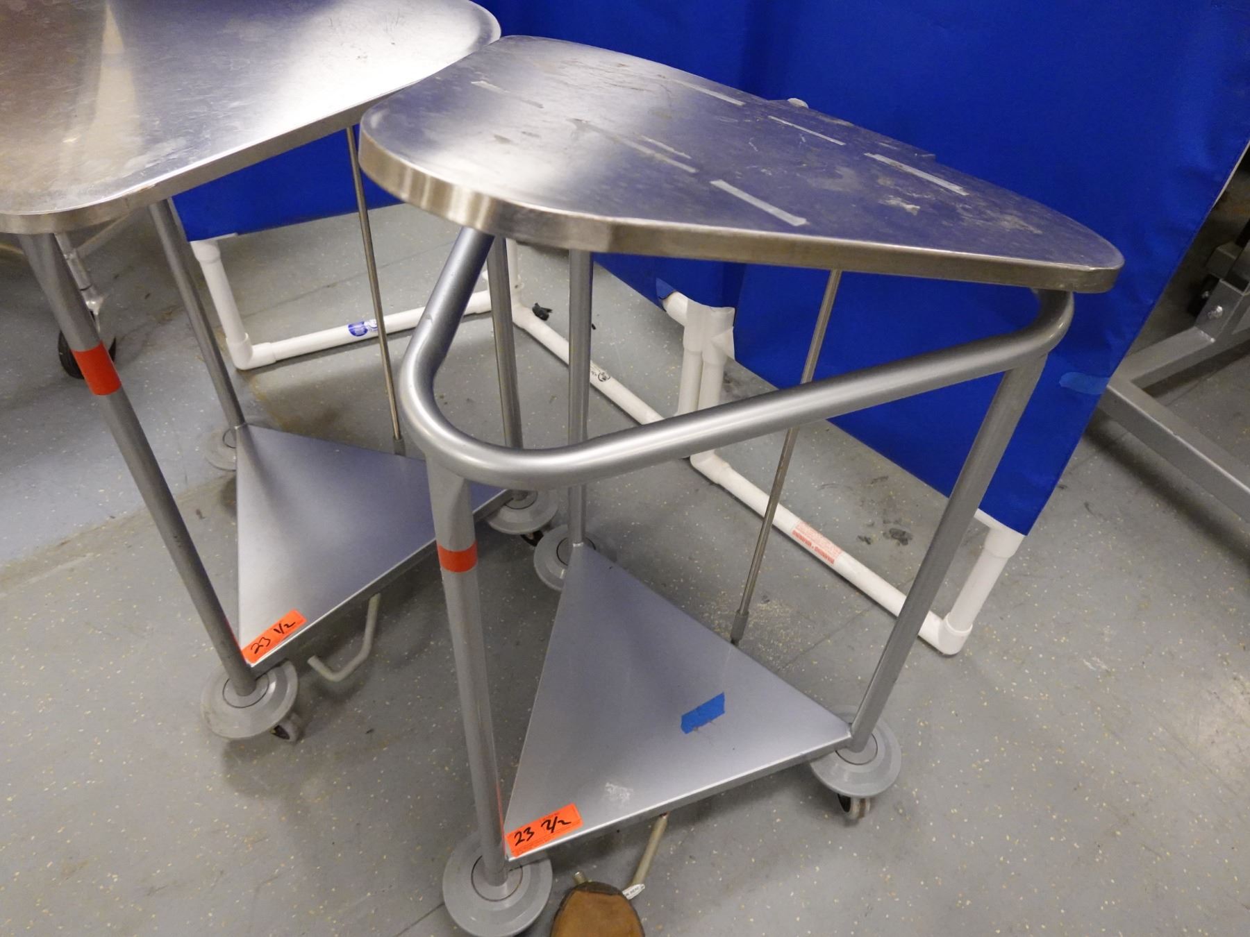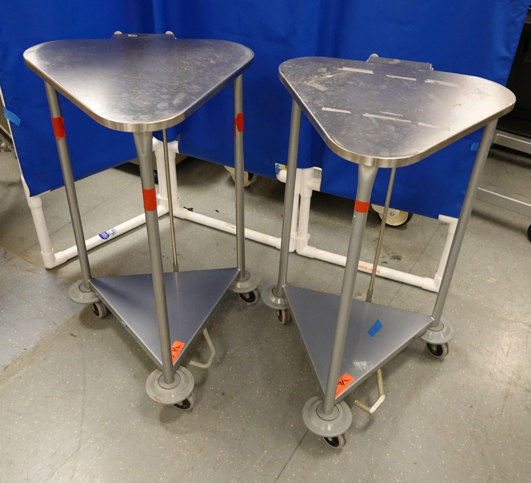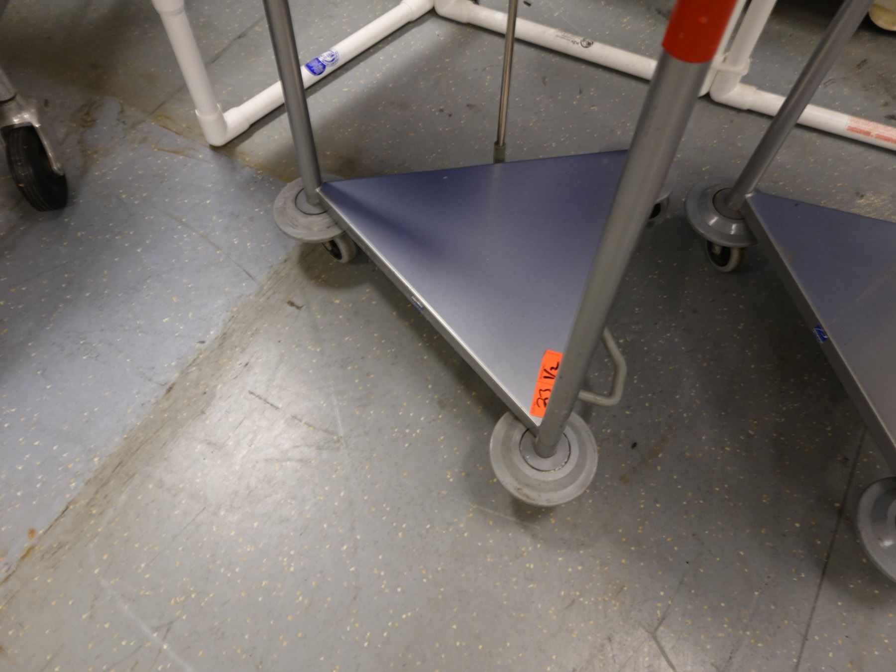 Qty 2 Triangular Metal Hamper Frames on Wheels 21" x 20" x 32"H