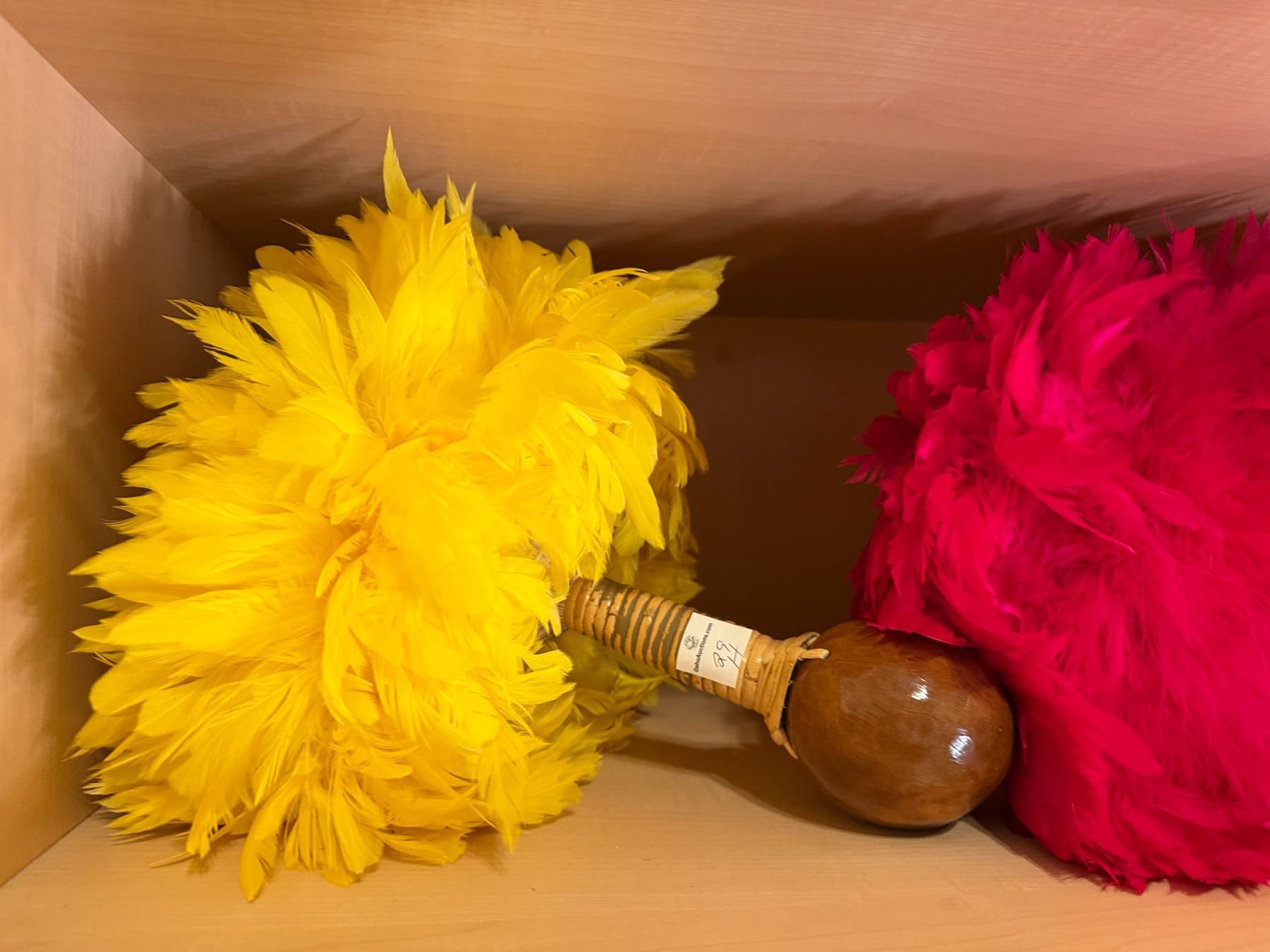 Qty 2 Uli Uli Feathered Gourd Hula Implements