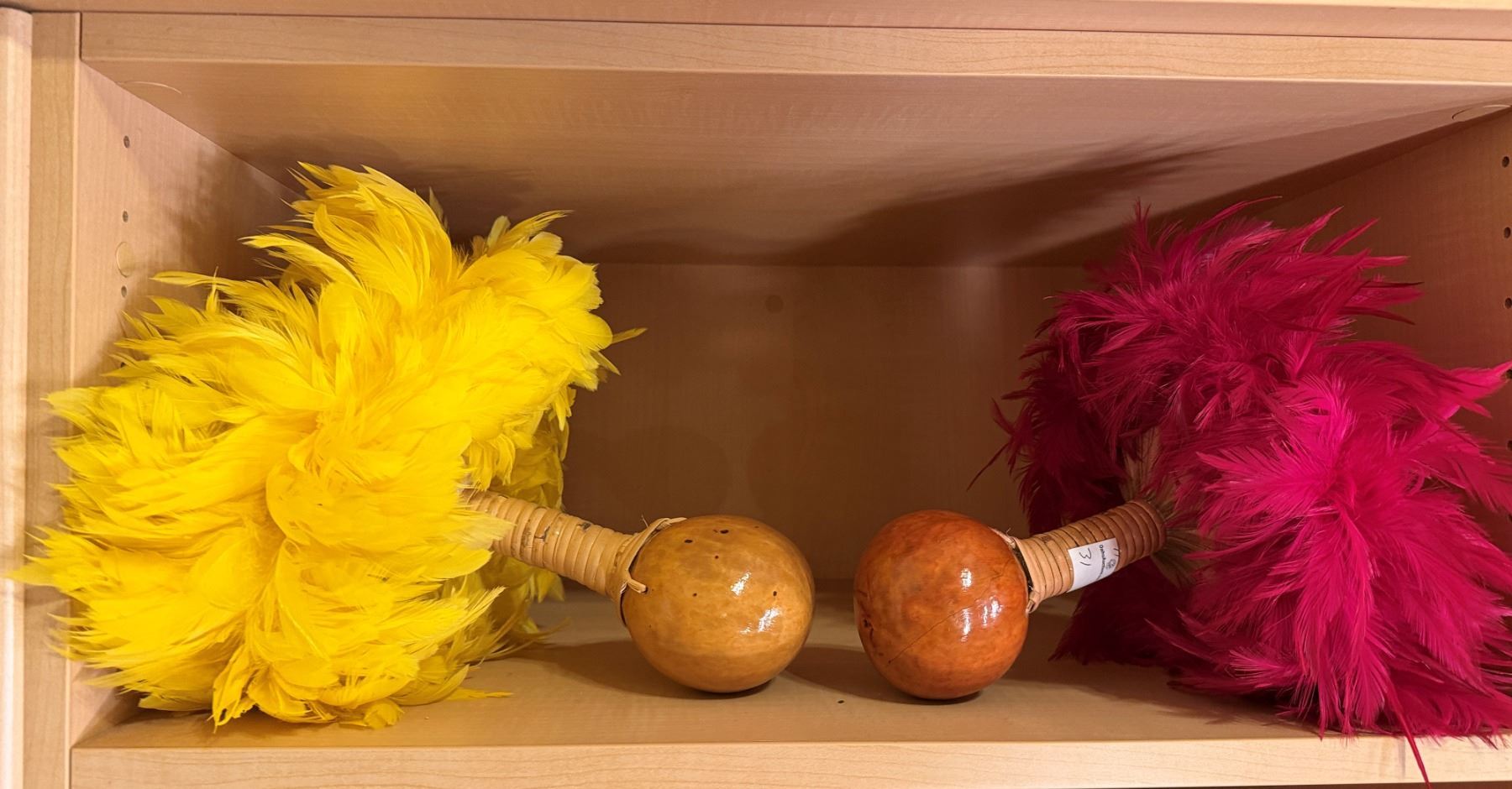 Qty 2 Uli Uli Feathered Gourd Hula Implements