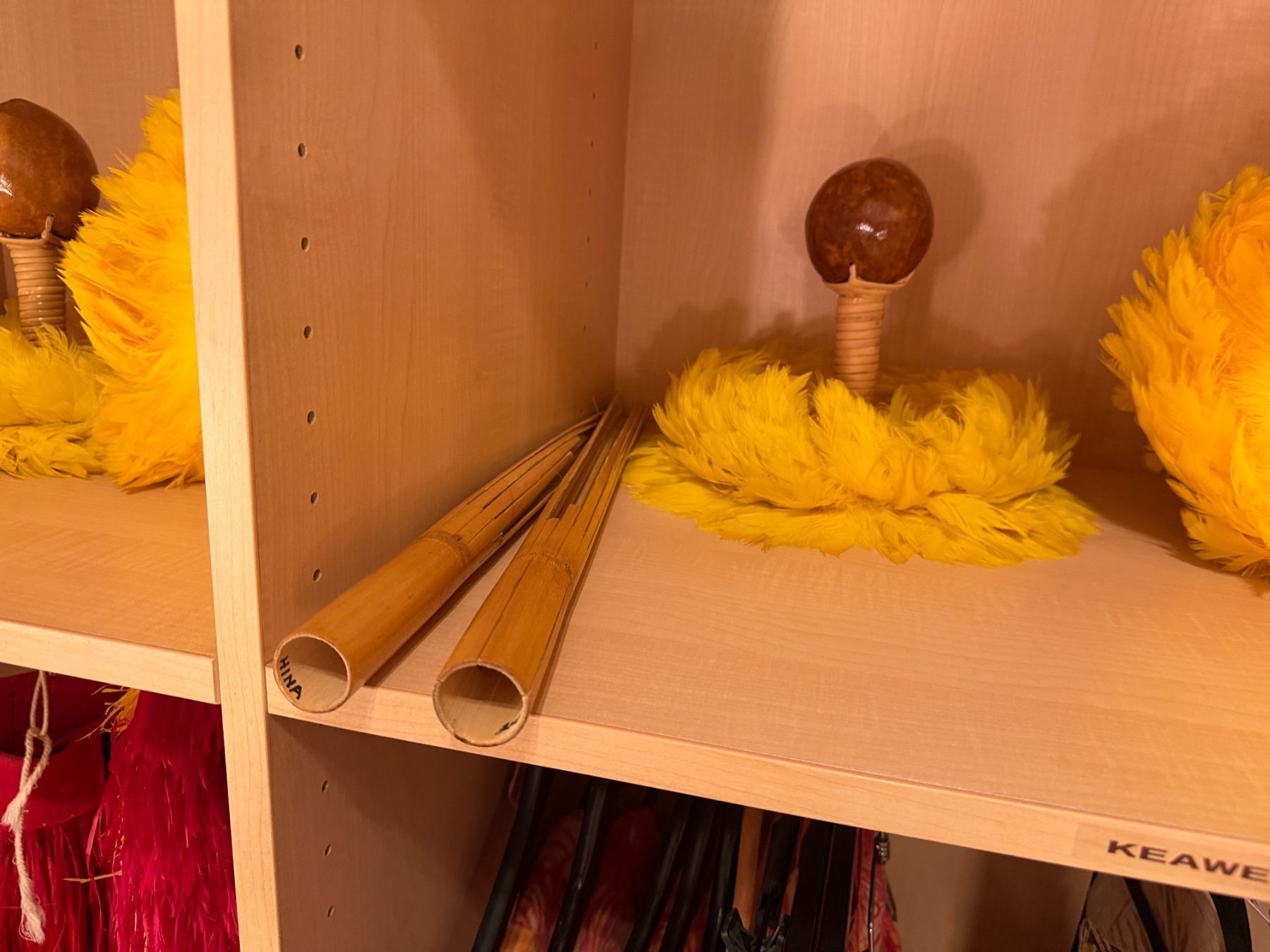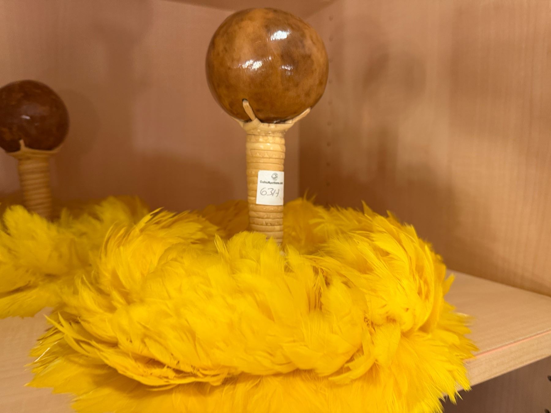 Qty 2 Uli Uli Feathered Gourd Hula Implements