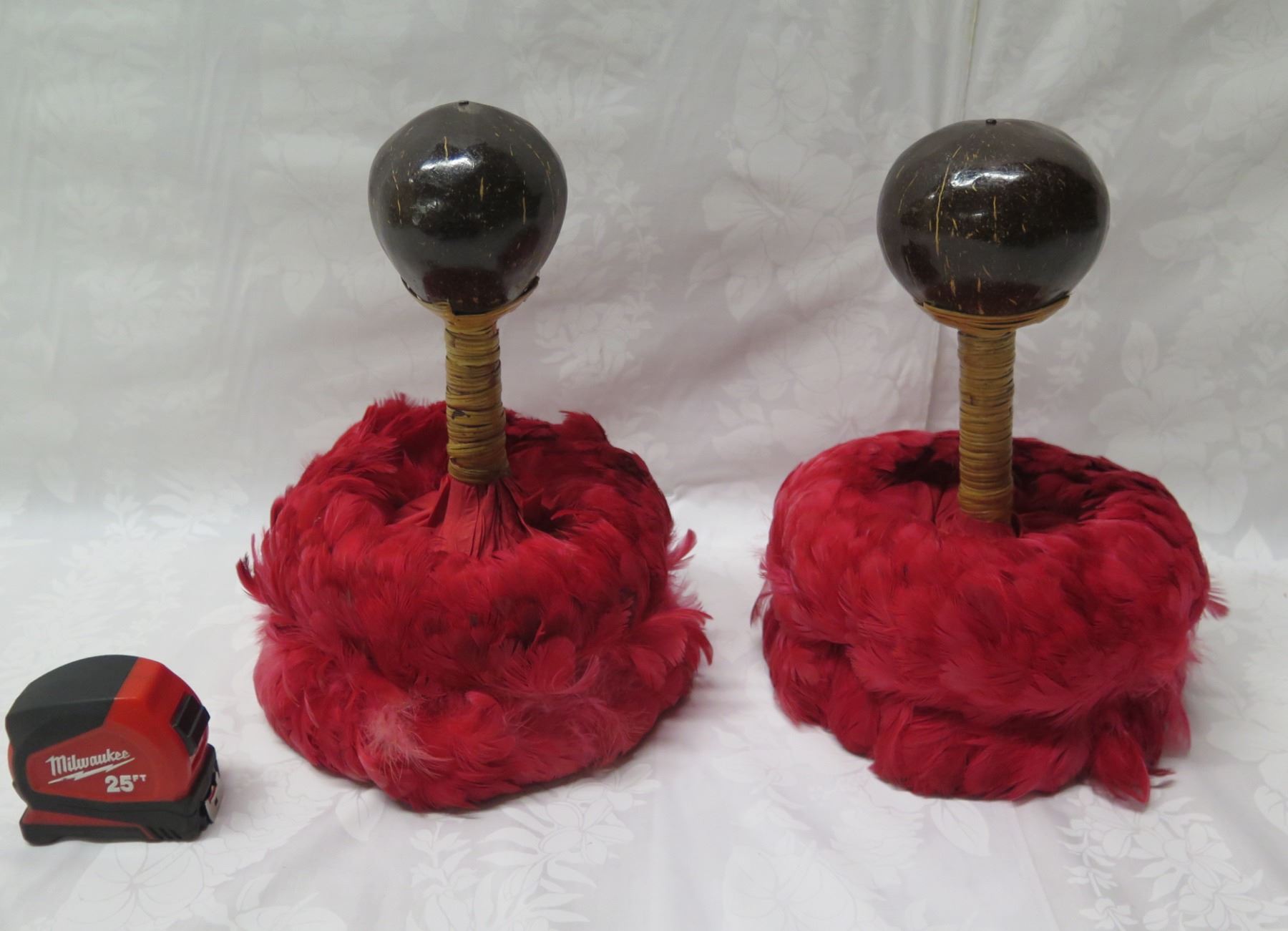 Qty 2 Uli Uli Hawaiian Feathered Hula Instruments Approx. 8" dia, 12"H