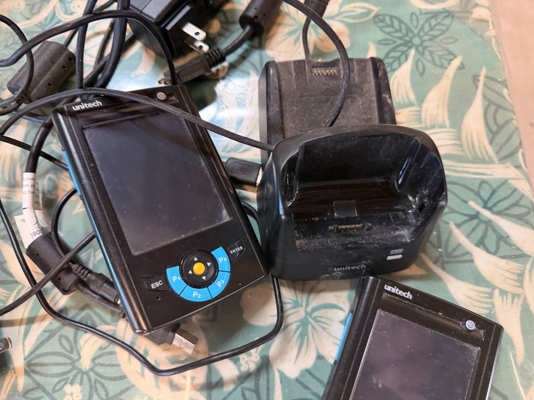 Qty 2 Unitech Handheld Mobile Computers & Accessories. Untested - As Is.