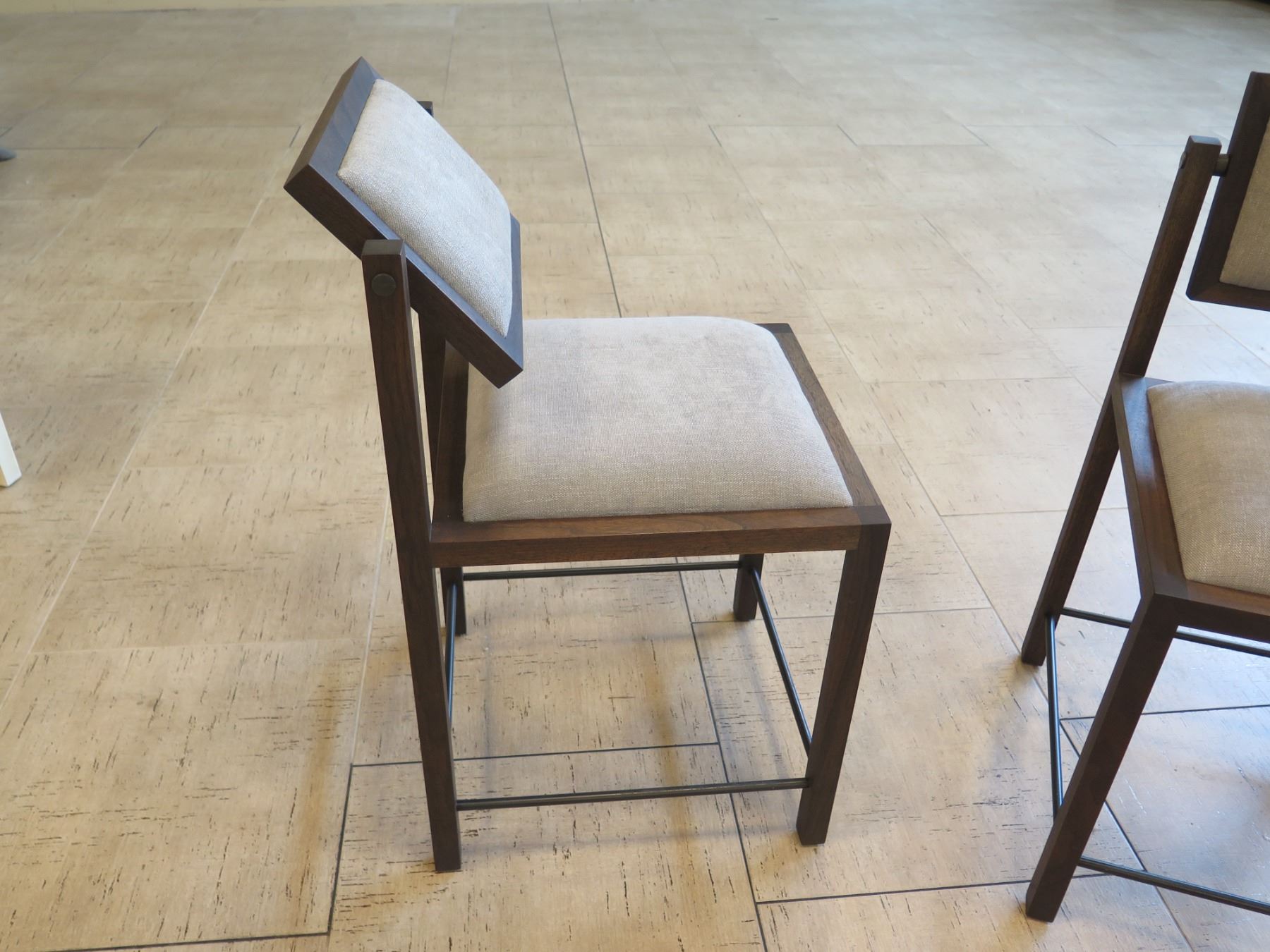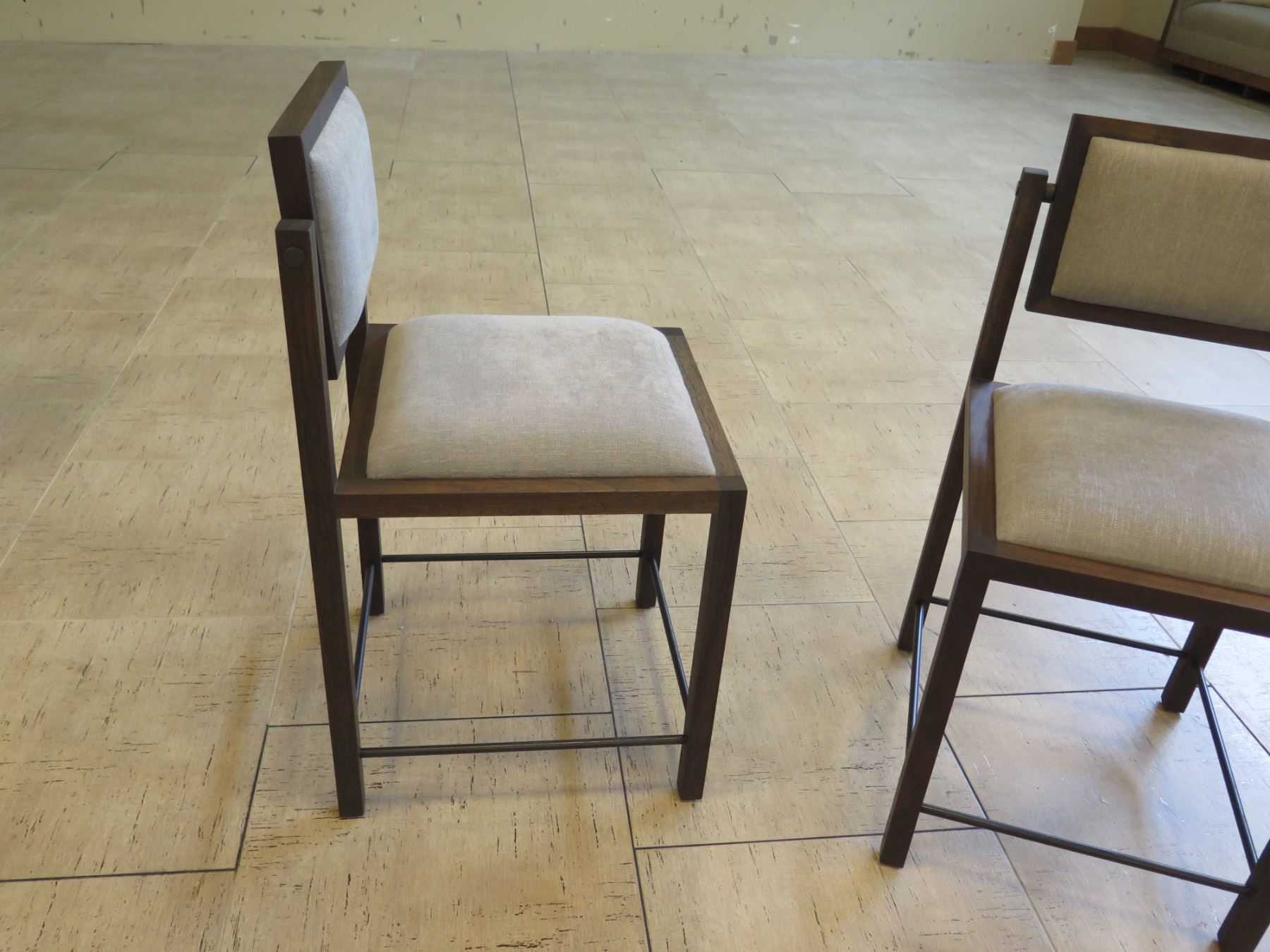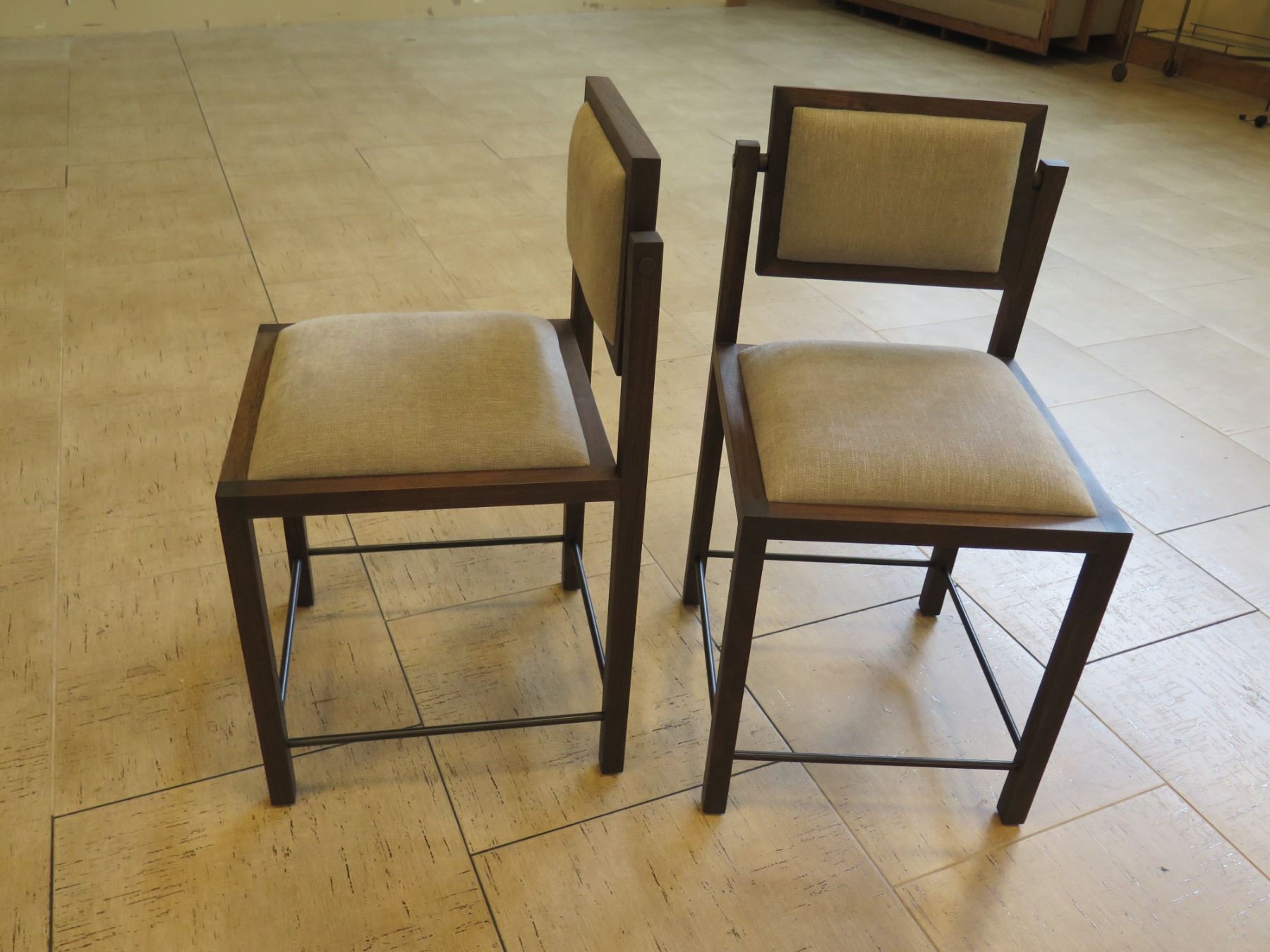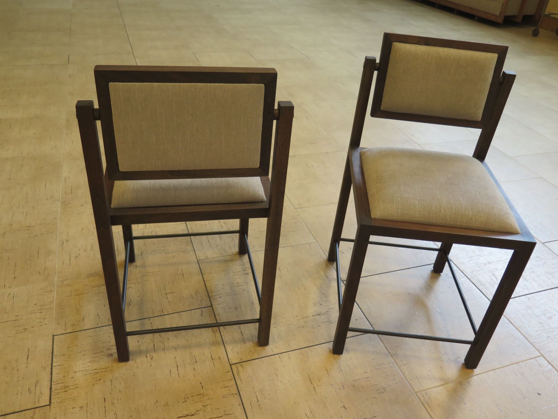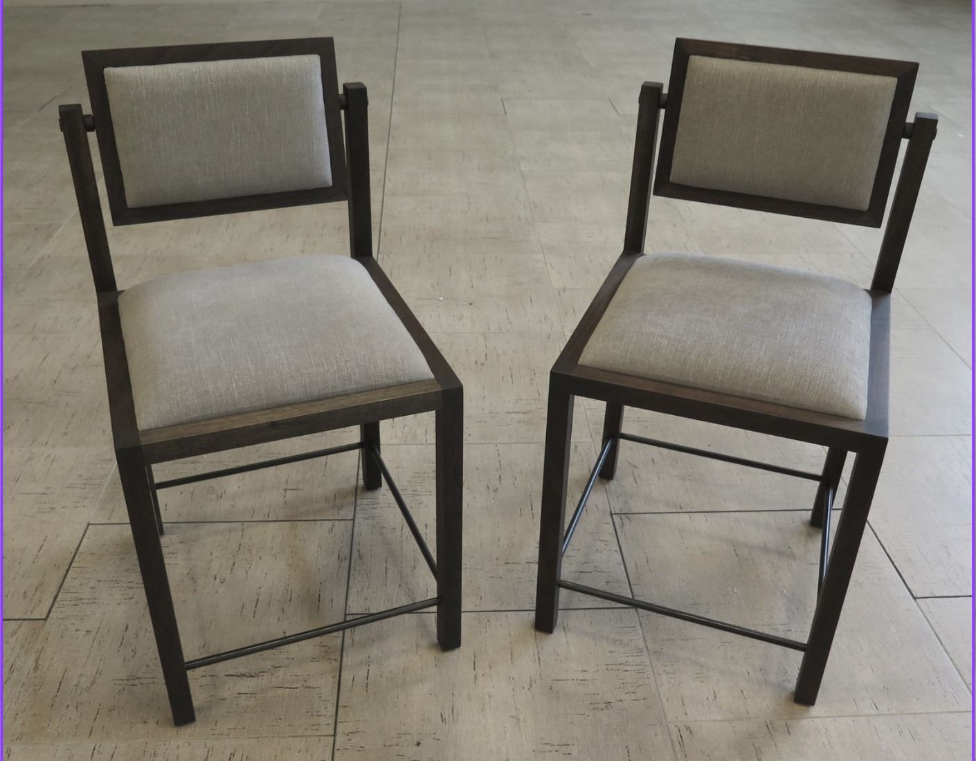Qty 2 Upholstered Teak Wood Counter Stools w/ Reclining Backrest 18" x 19" x 35"H