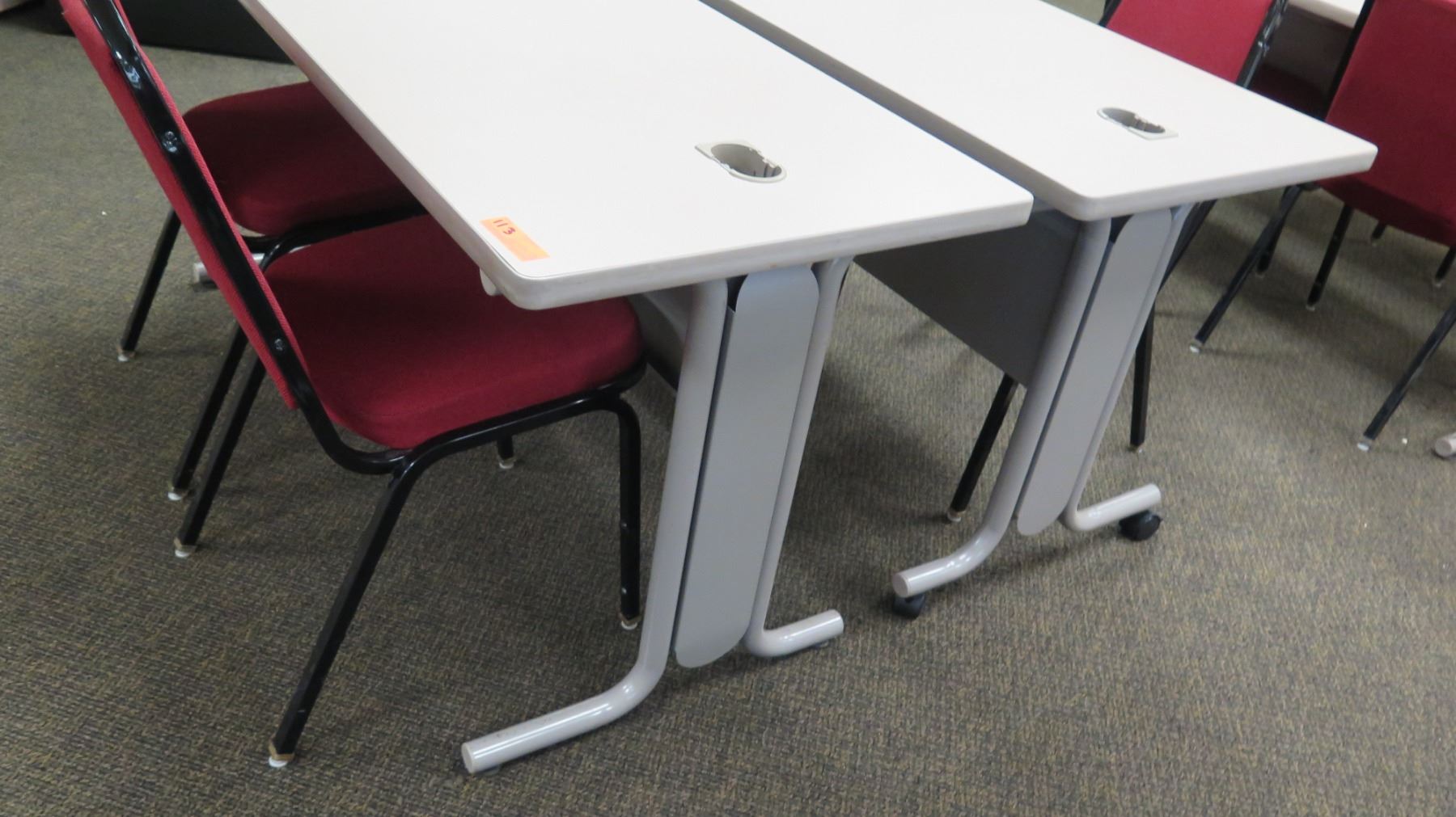 Qty 2 Utility Tables (Desks) 60" x 24" x 29"H & 4 Chairs (1 table has wheels). Buyer will be responsible for disassembling and removing all purchased items in this auction. Buyer must bring own tools, carts, etc. Loadout Thursday, May 9 to Saturday May 11. Detailed directions to building’s loading zone and designated load-out areas will be provided.