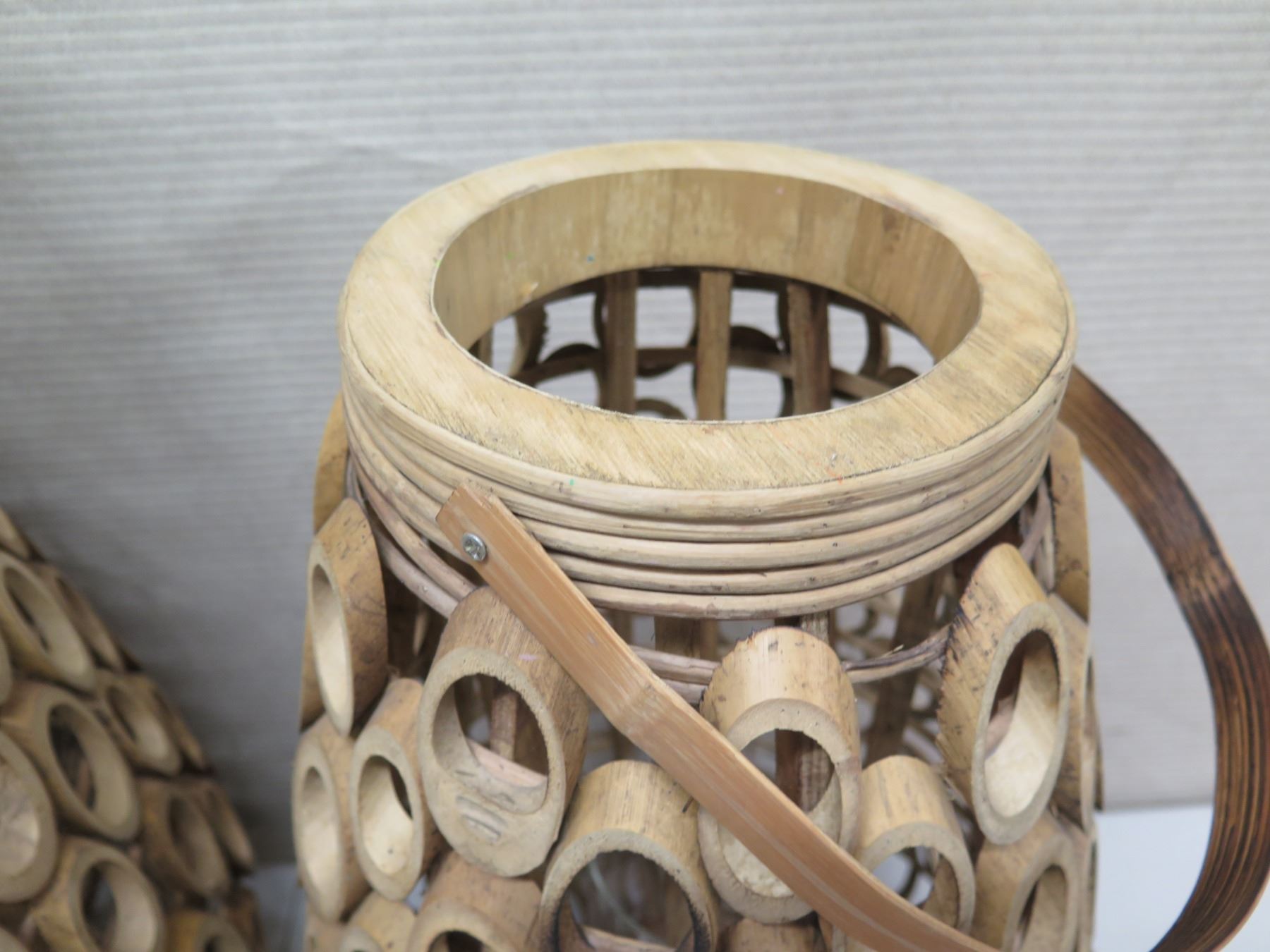 Qty 2 Vases w/ Round Cut Bamboo Ornamentation & Handle 23" & 29"H