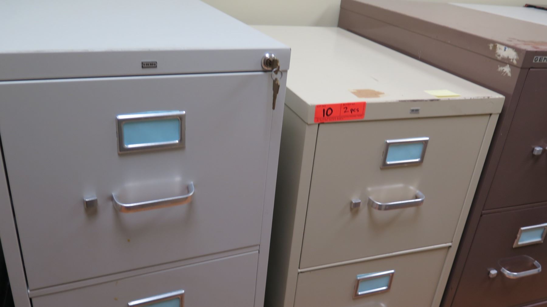 Qty 2 Vertical File Cabinets (HON, etc) Lt. Gray & Beige