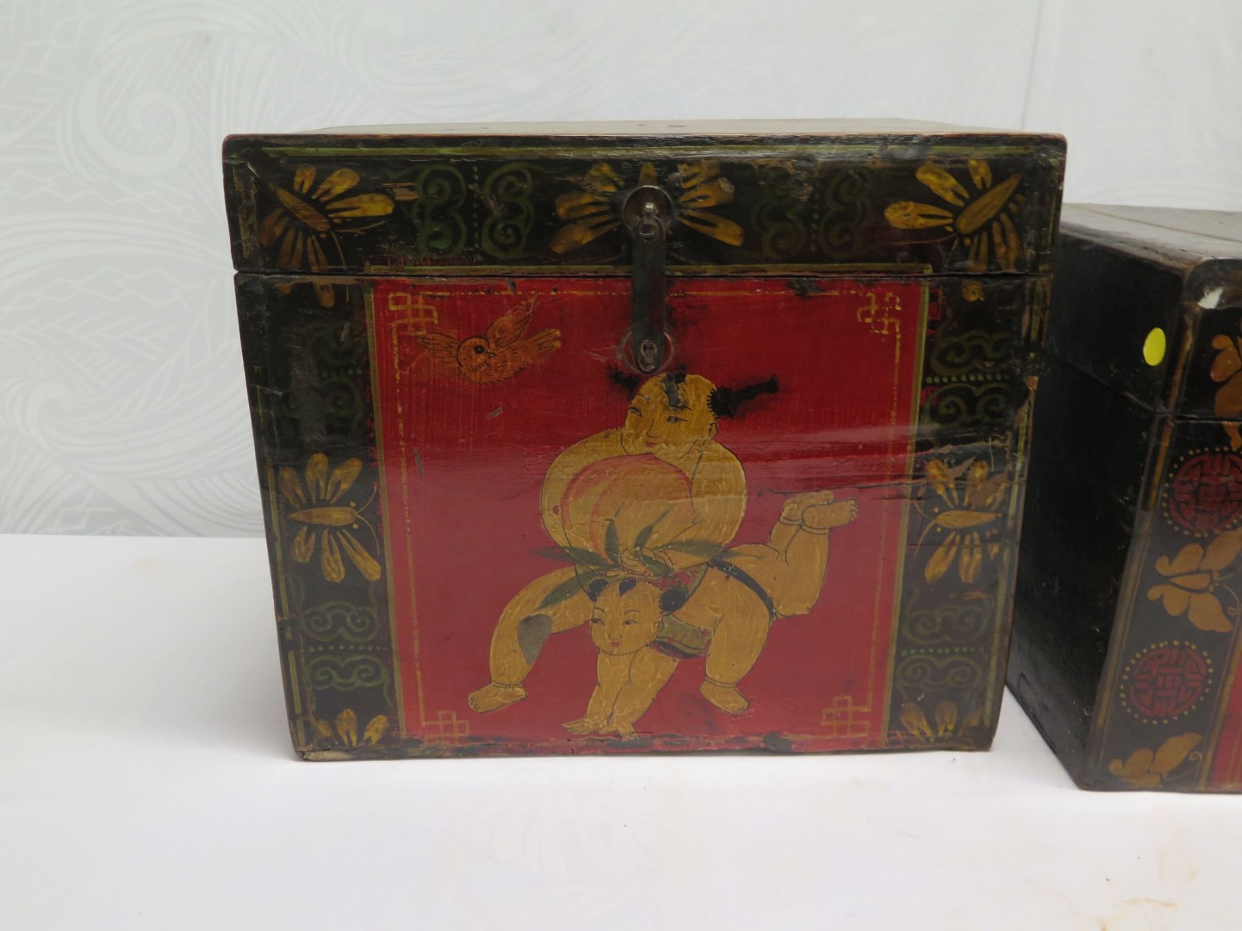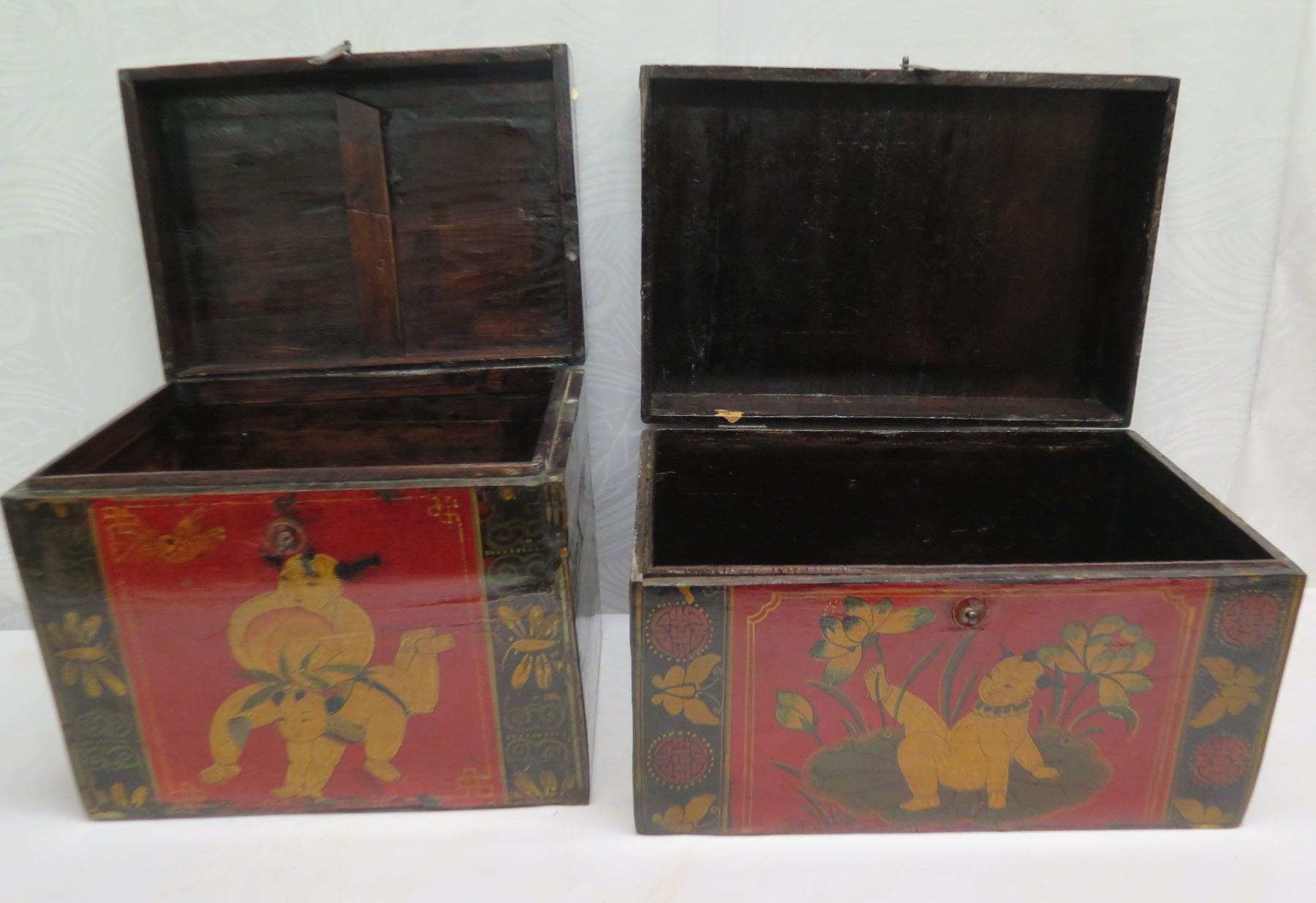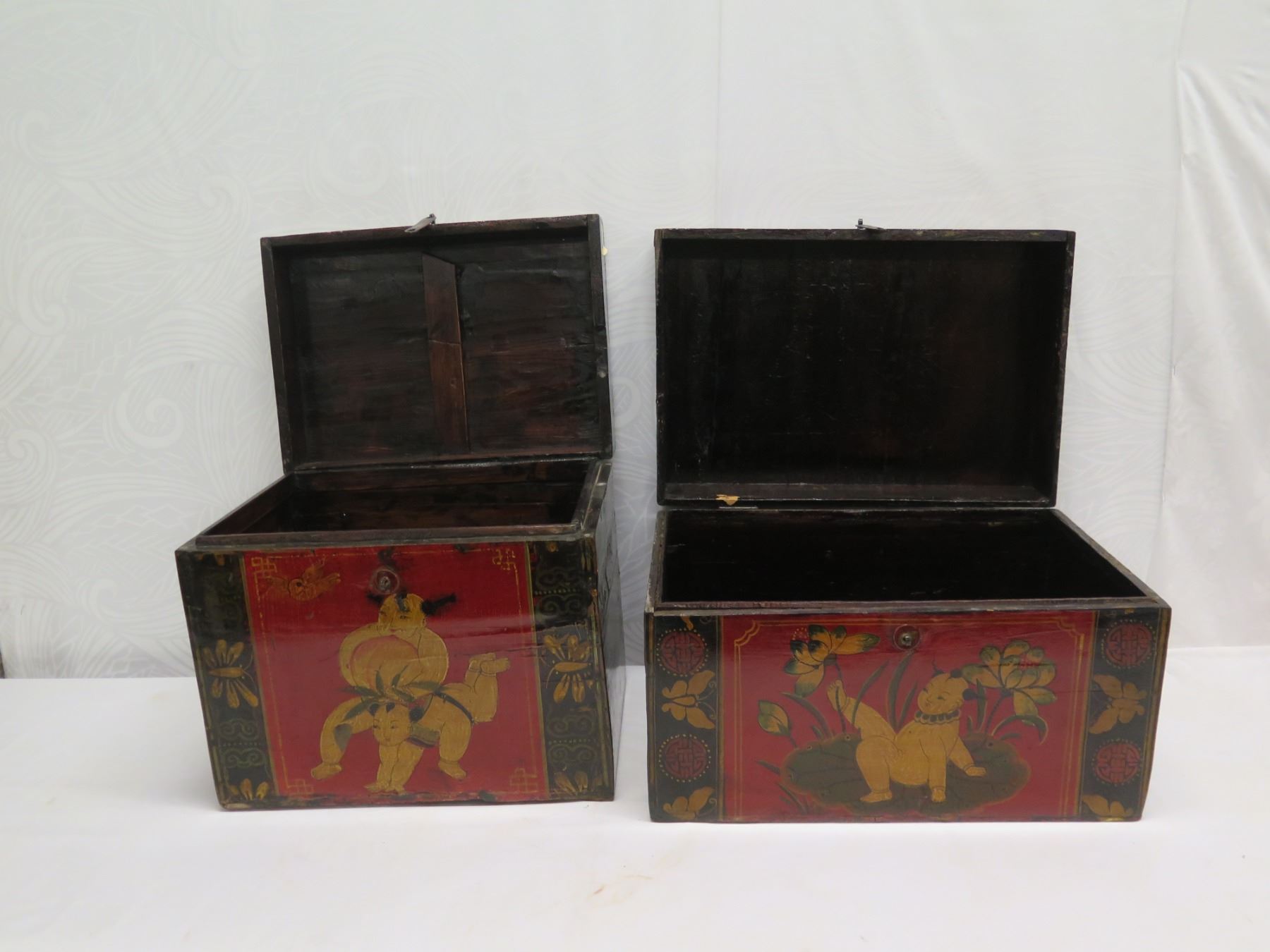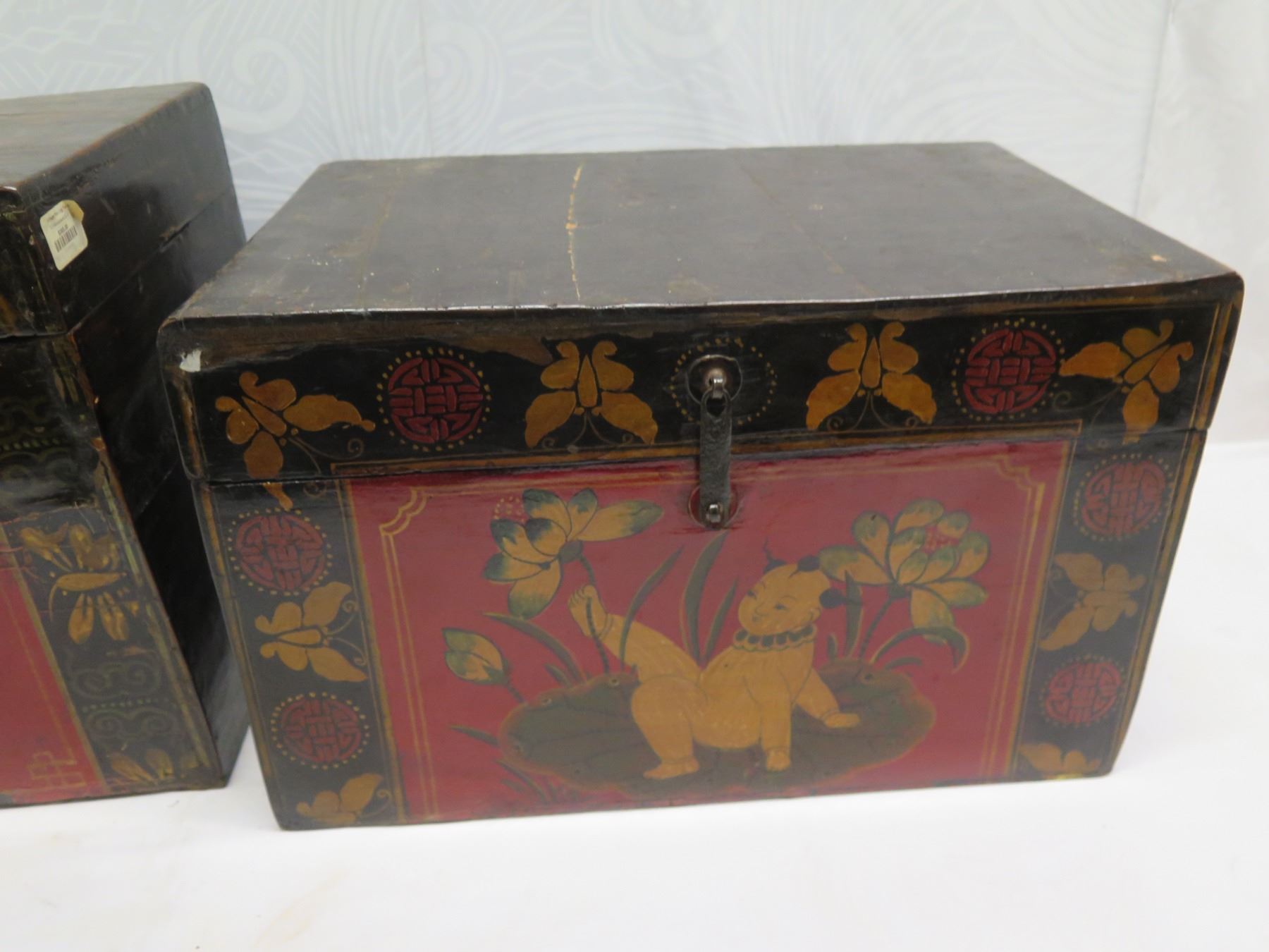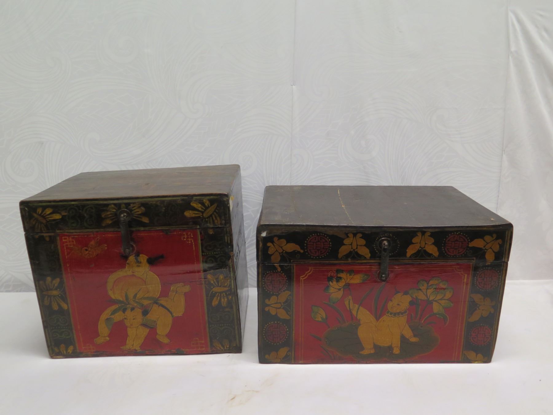 Qty 2 Vintage Foo Dog Trunks 16"x12"x14"H / 19"x13"x12"H (Retail $365)