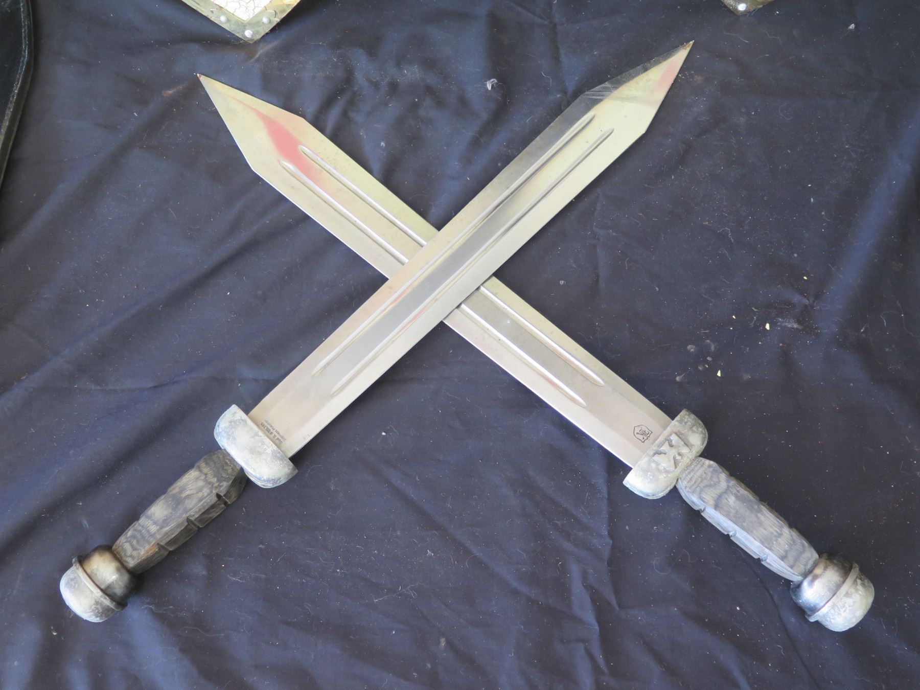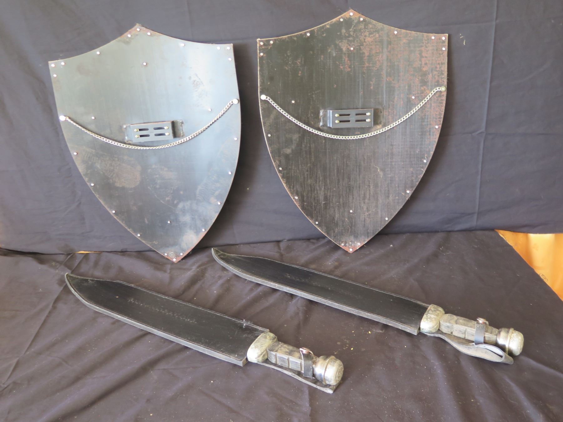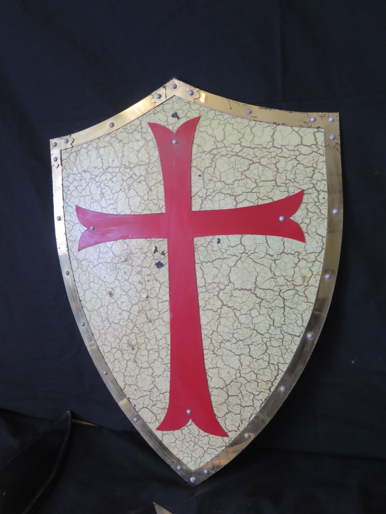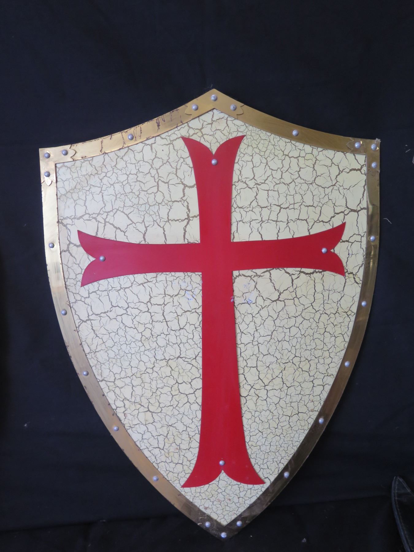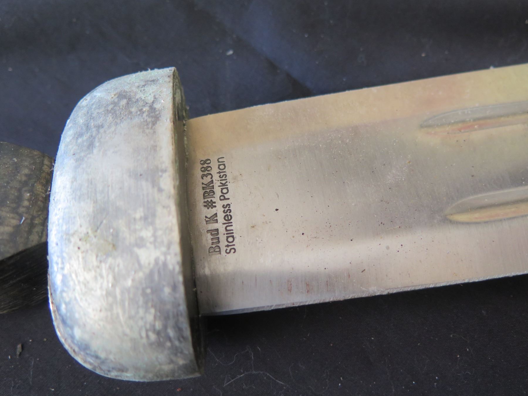 Qty 2 Vintage Metal Shields w/ Cross Design & 2 Bud K #BK388 Stainless Pakistan Knives