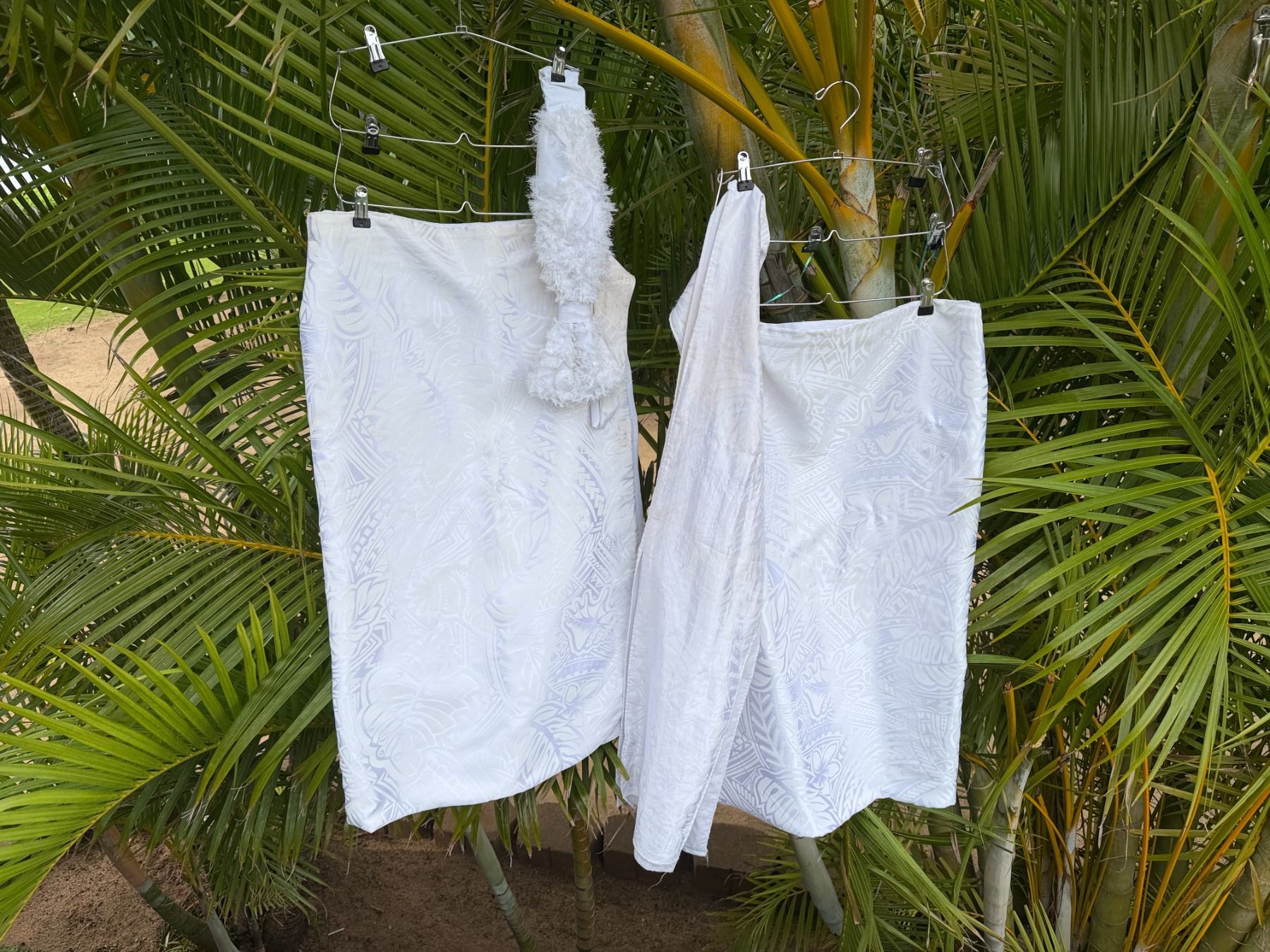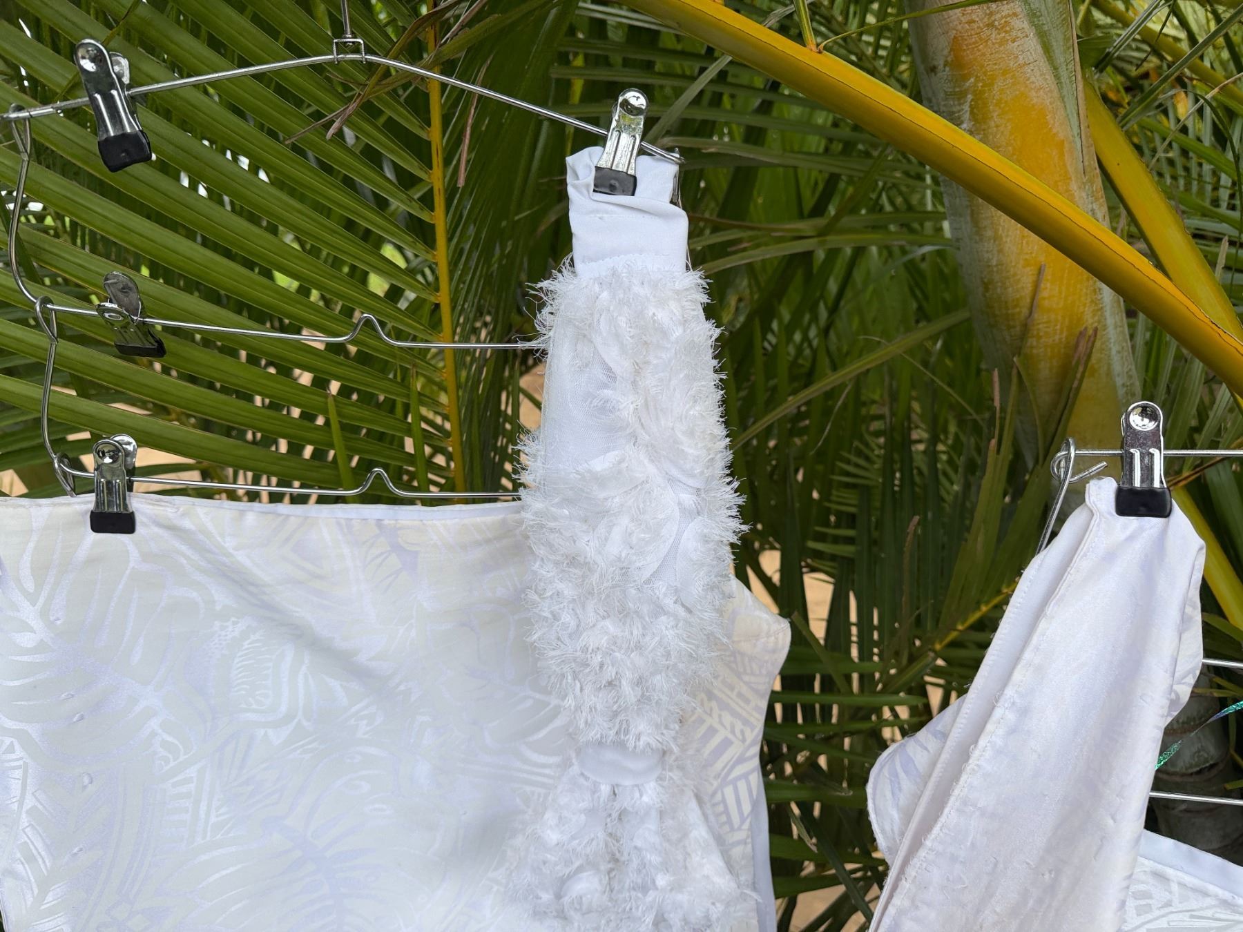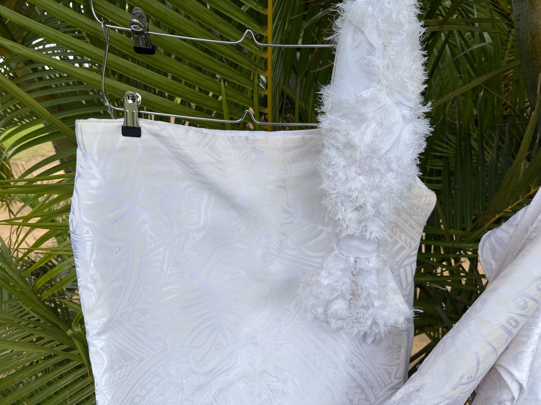 Qty 2 White Floral Wraps, Sash & Fringed Top