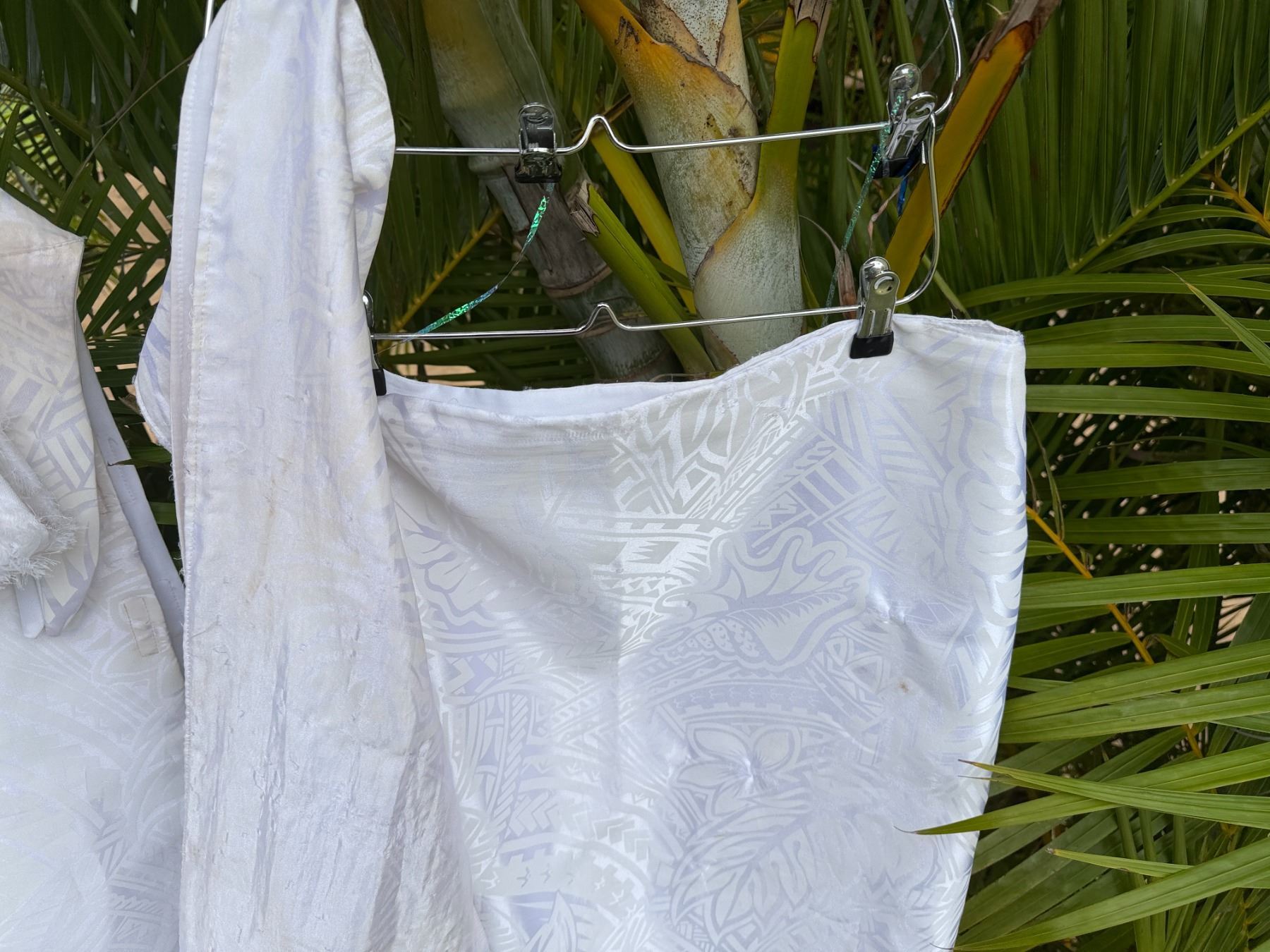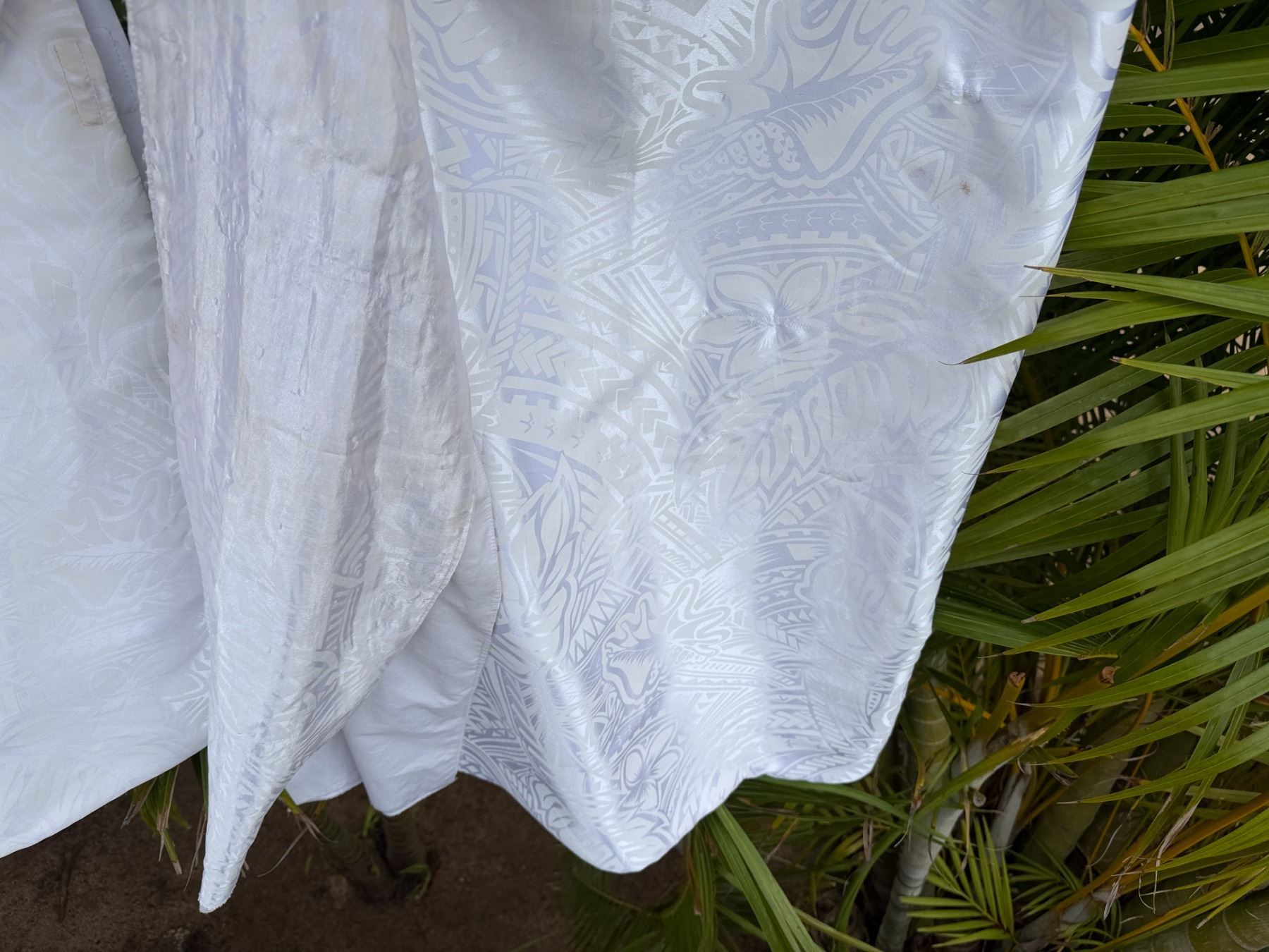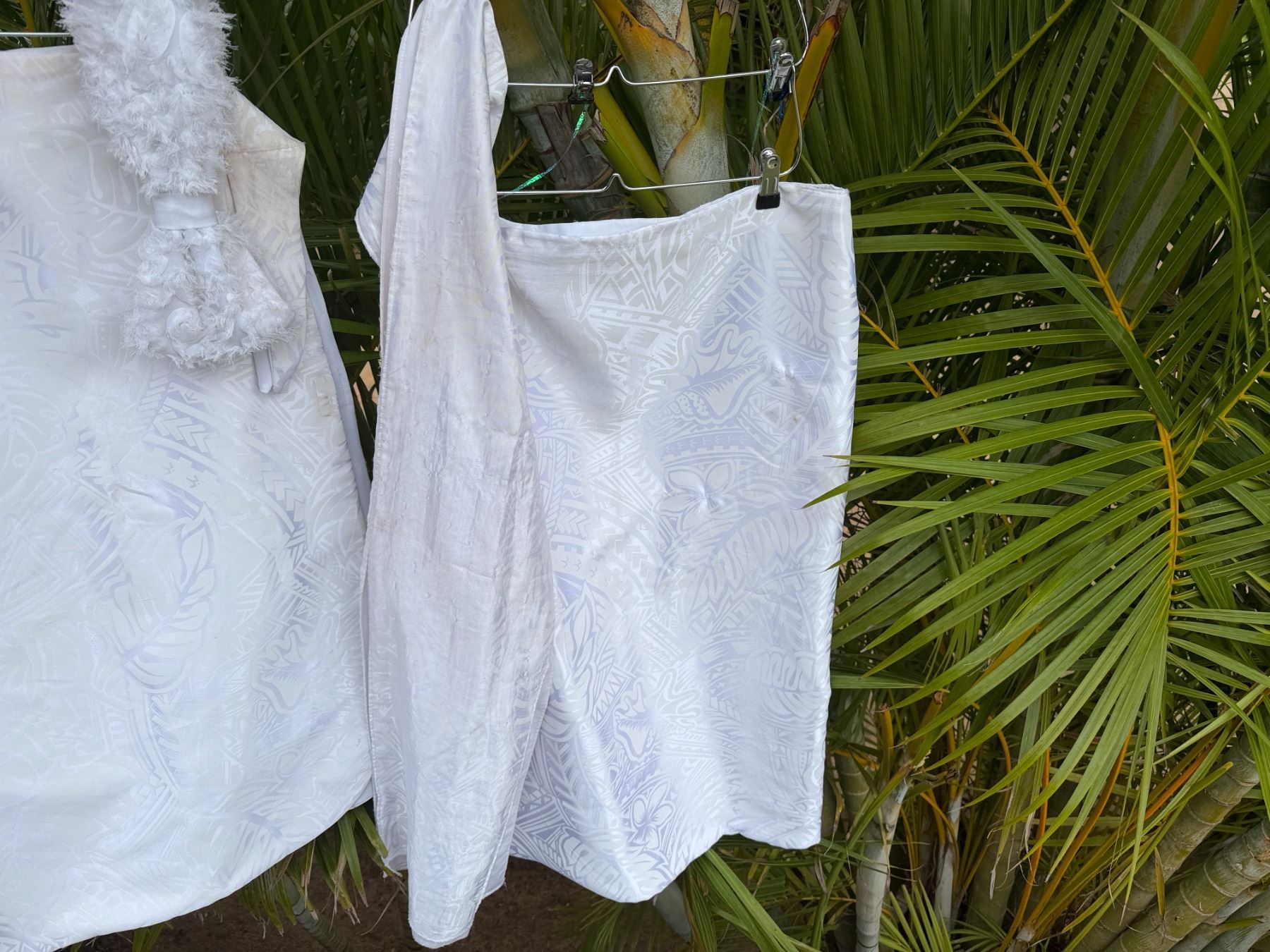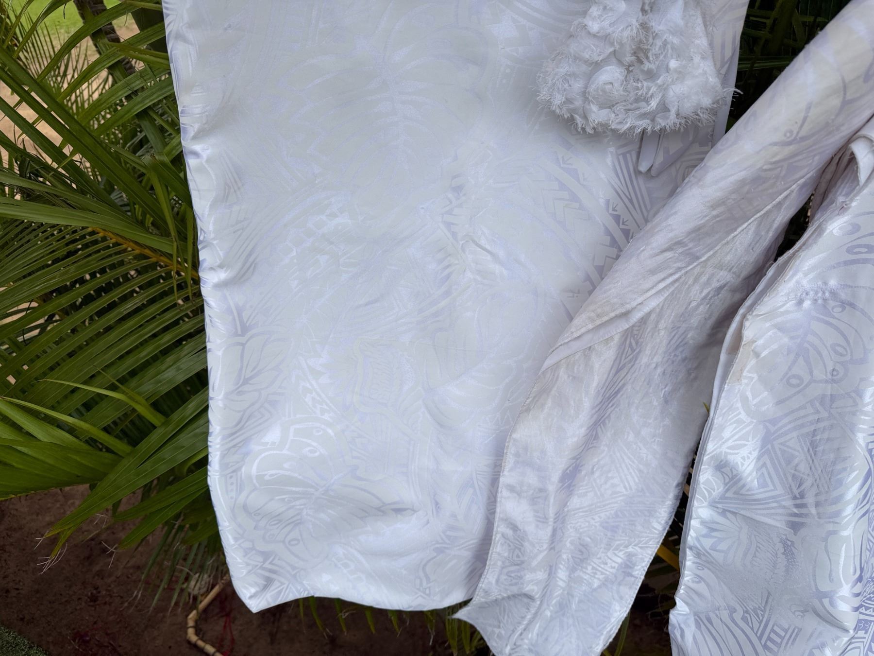 Qty 2 White Floral Wraps, Sash & Fringed Top