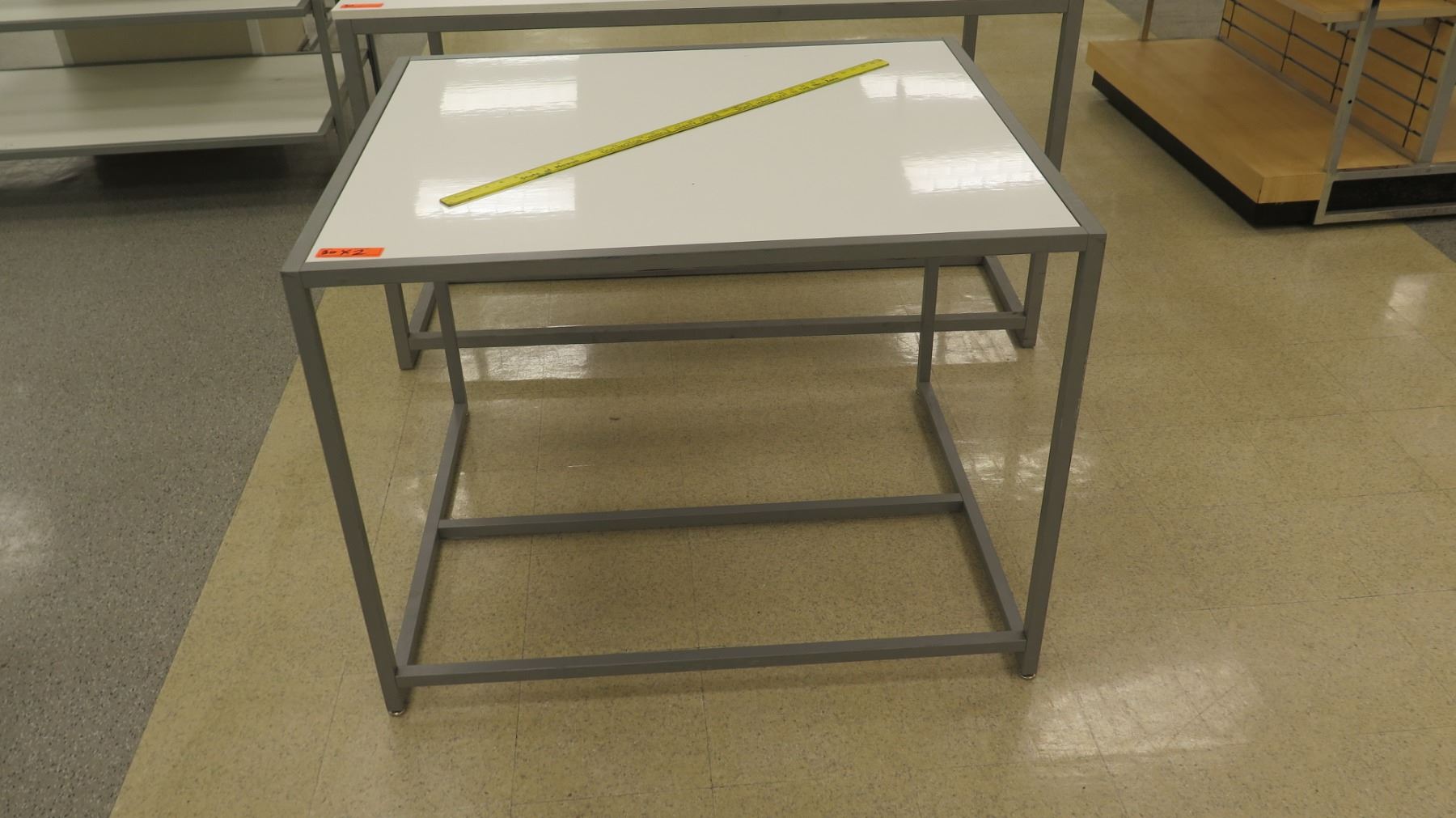 Qty 2 White & Metal Tables, 1 piece, 42"L x 36"W x 32"H; 1 piece, 60"L x 36"W x 33.5"H