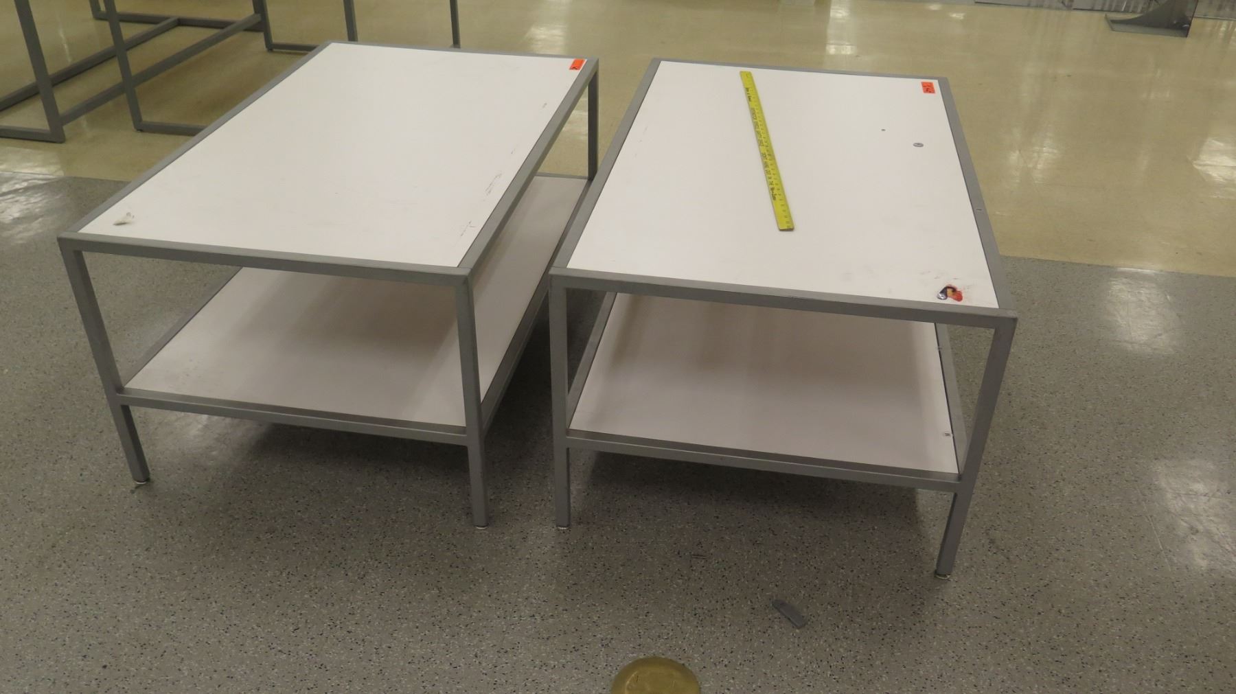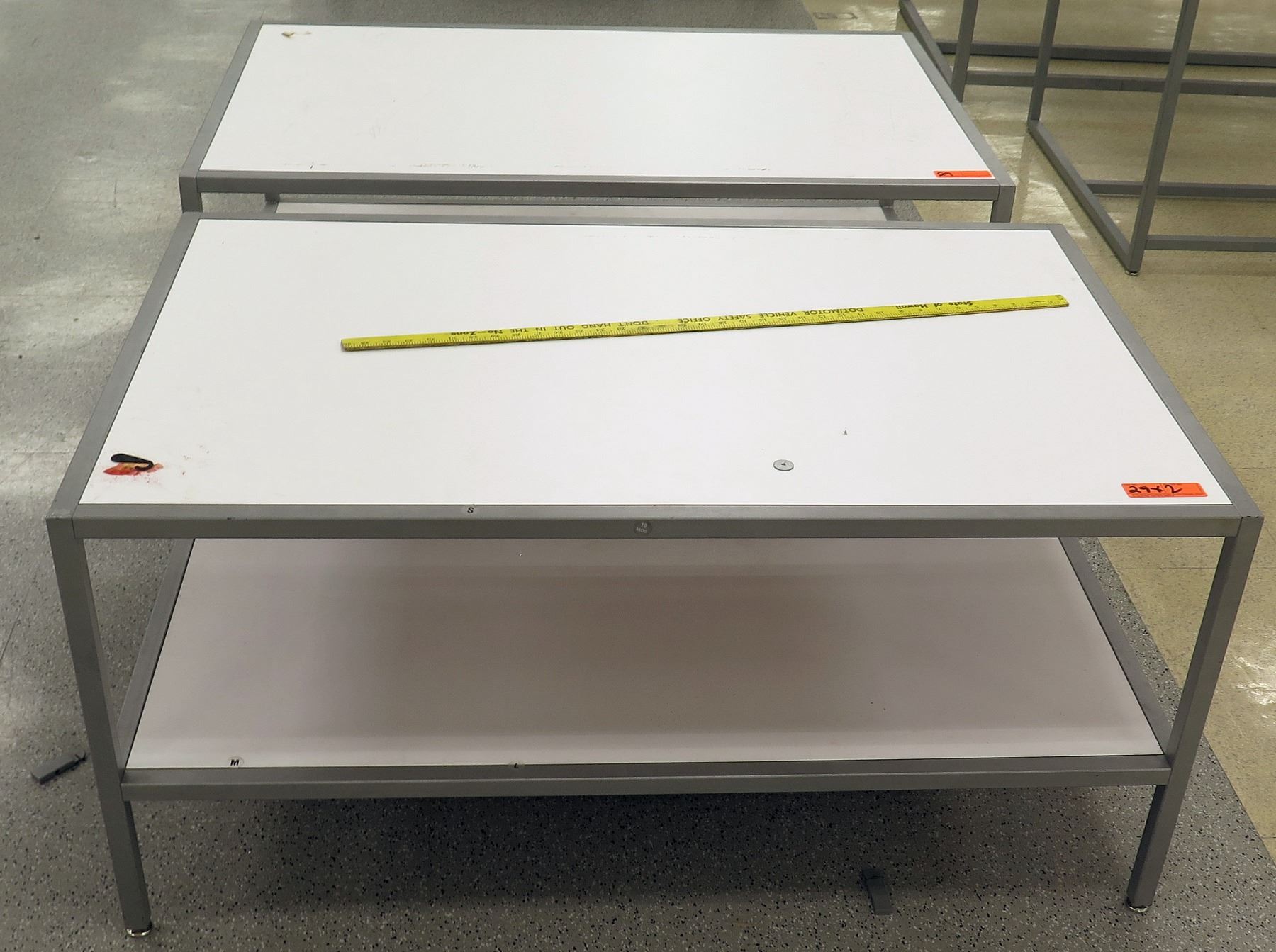 Qty 2 White & Metal Tables w/ Shelf Underneath 48"L x 30"W x 22.5"H