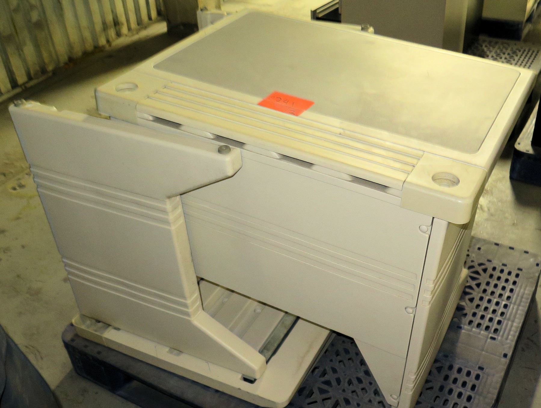 Qty 2 White Plastic Stackable Shop Desk Work Tables