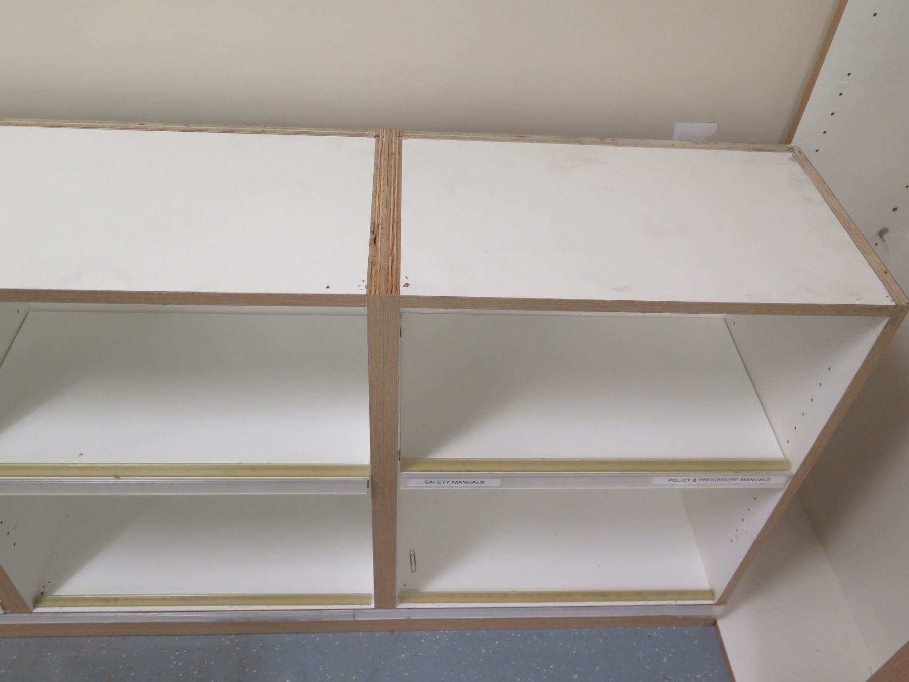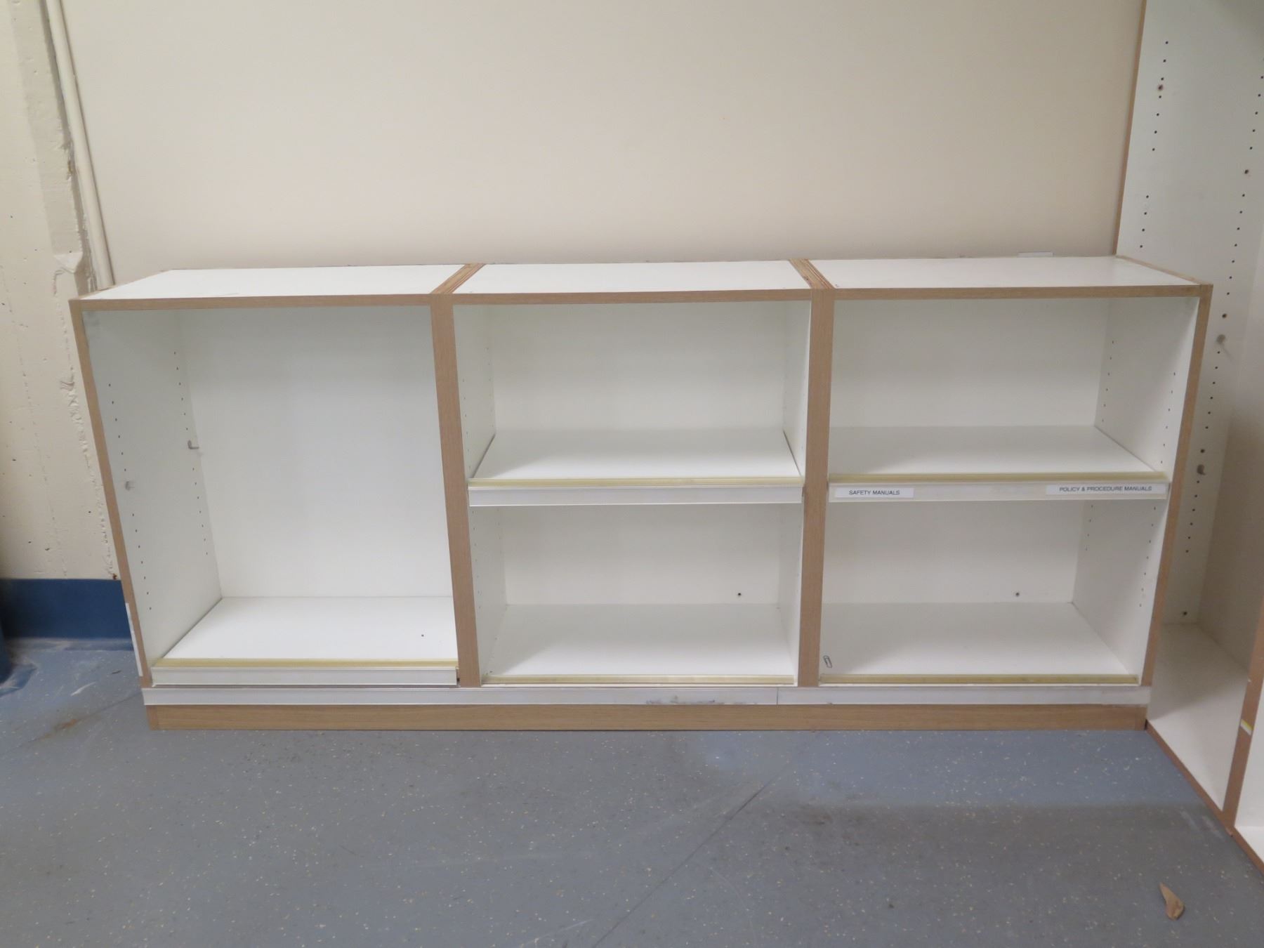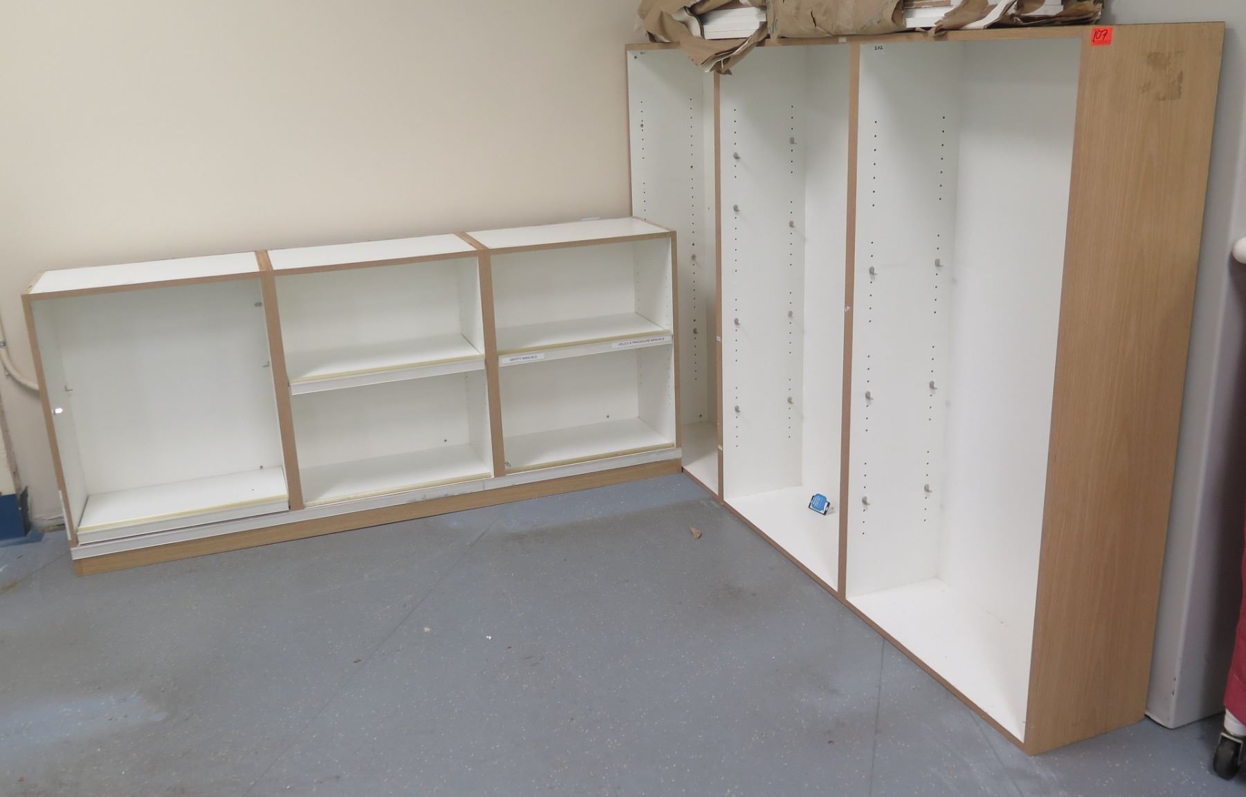 Qty 2 White Shelving Units, Misc Sizes (loose shelves included)