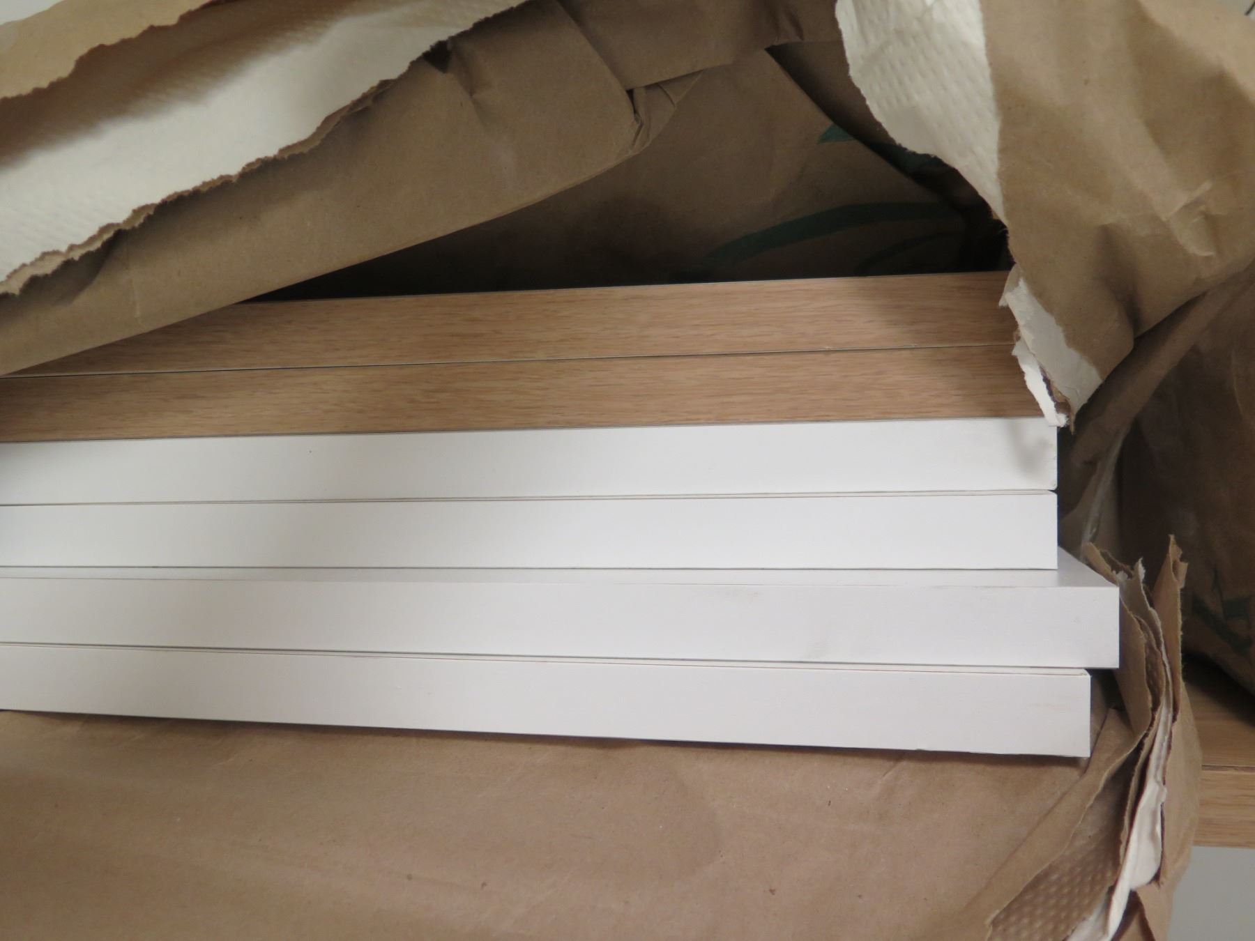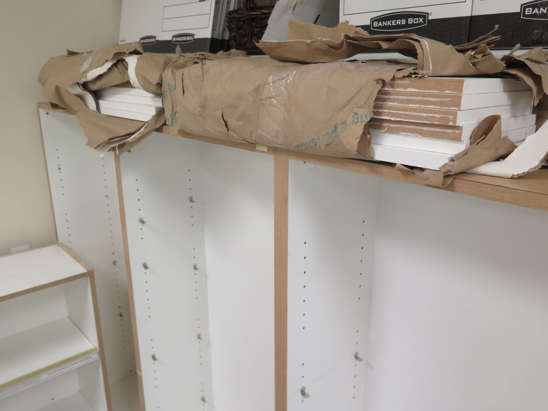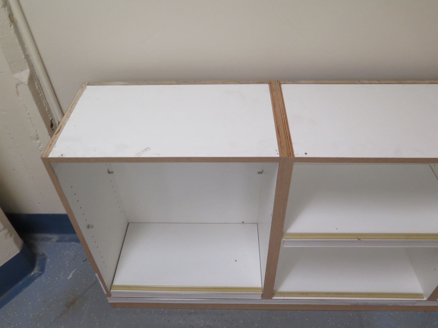 Qty 2 White Shelving Units, Misc Sizes (loose shelves included)