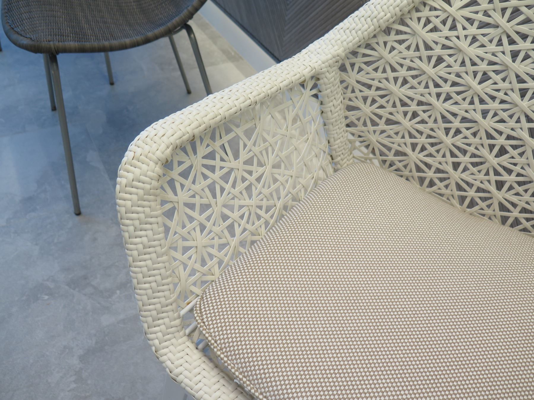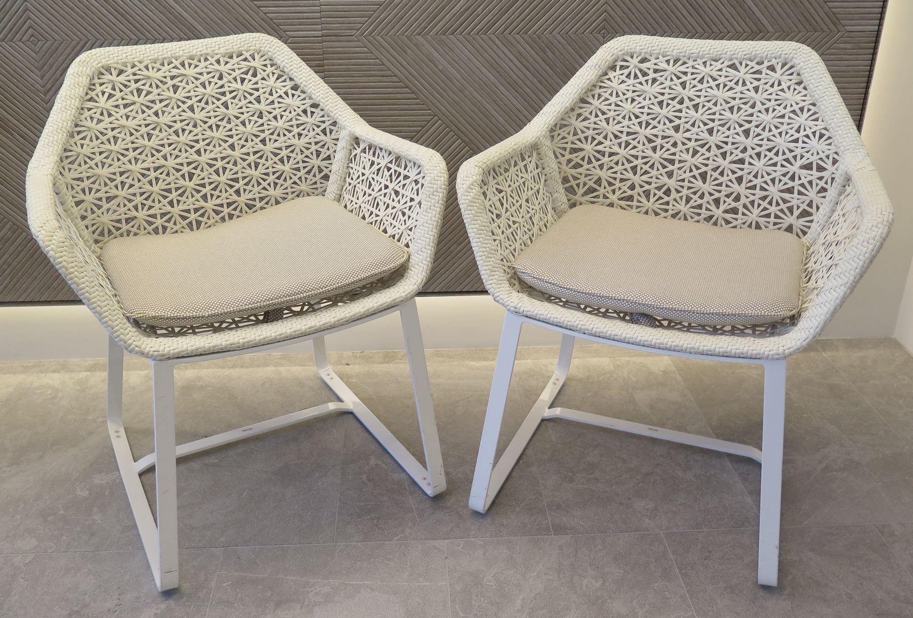 Qty 2 White Woven Chairs w/ Seat Cushion 26"x19"x33"H
