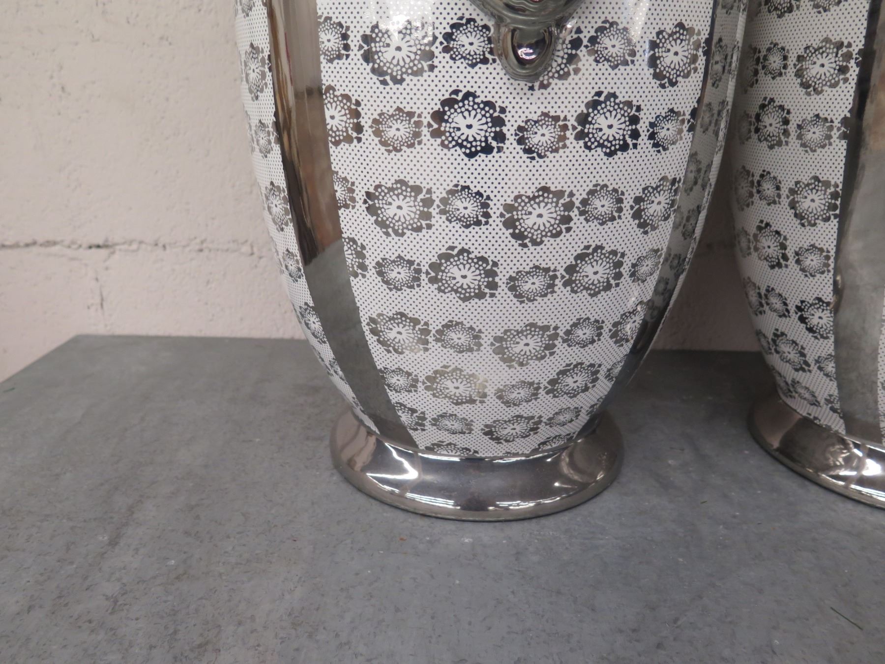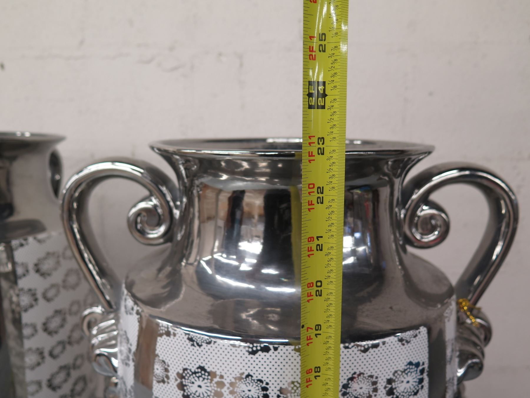 Qty 2 Winward Decorative Urns Vases w/ Lion Handles 10"D x 23"H