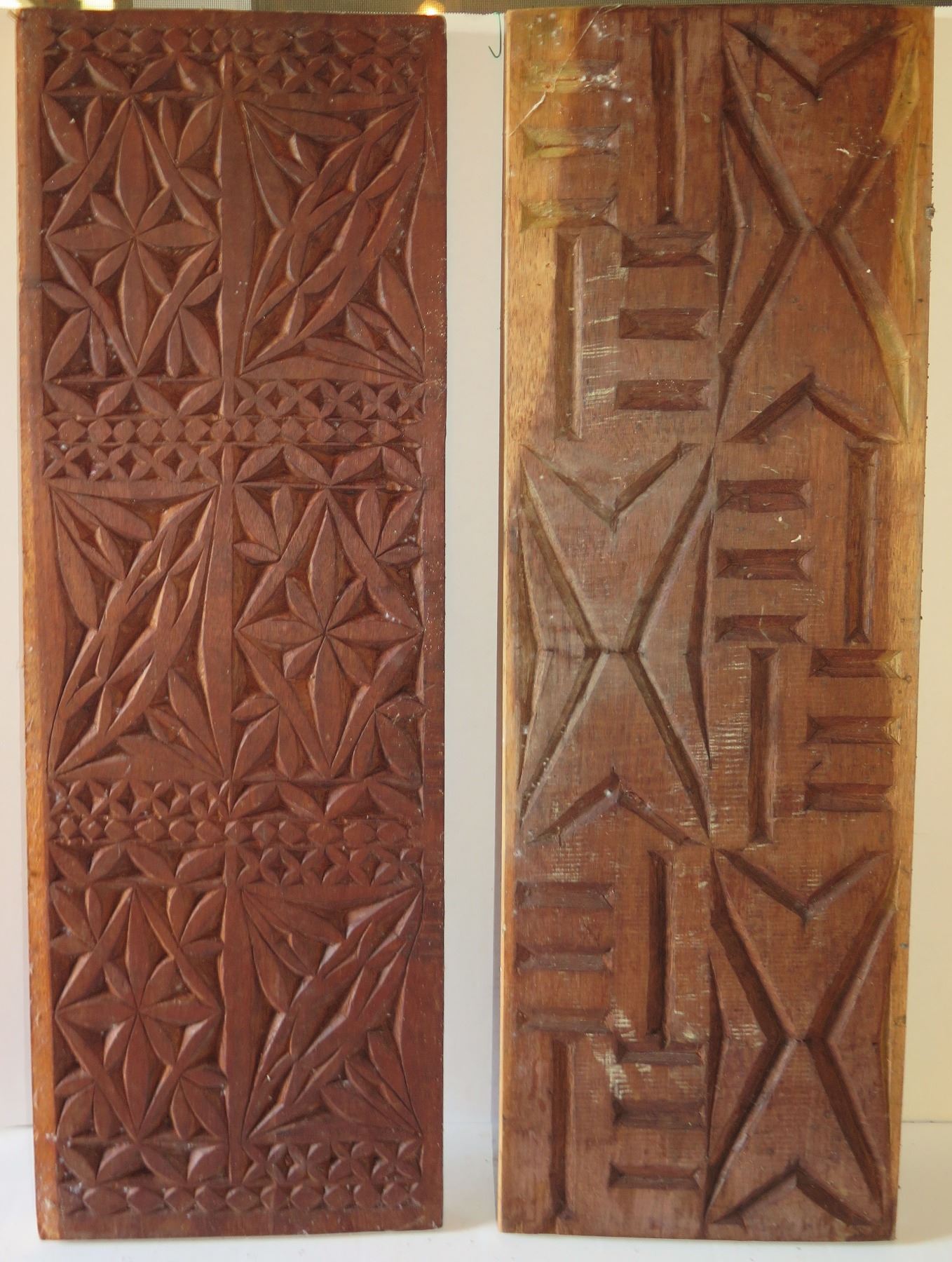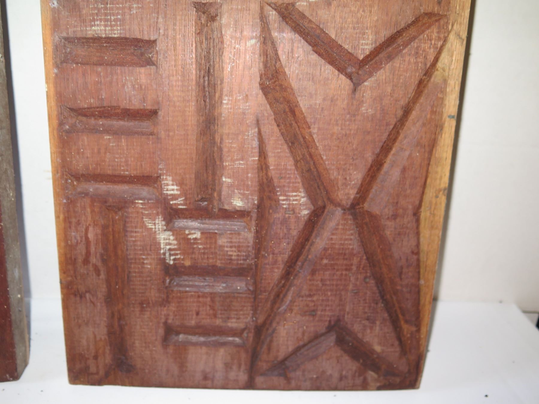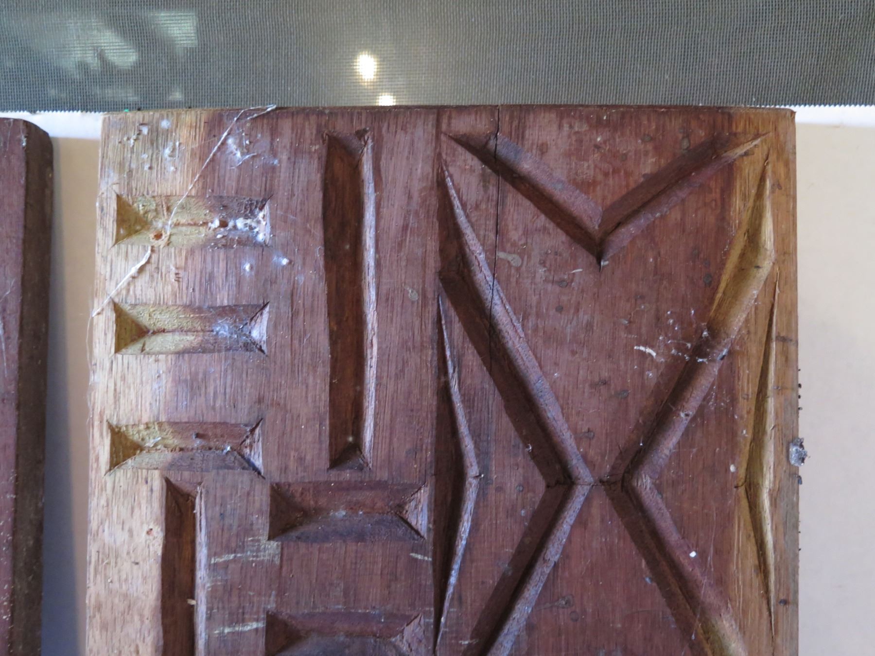 Qty 2 Wood Carved Panels Signed M Chun 36" x 12"