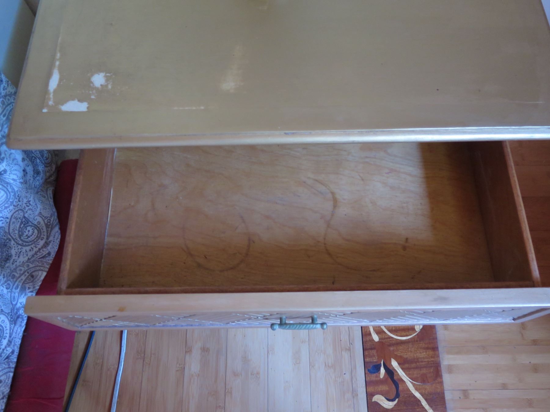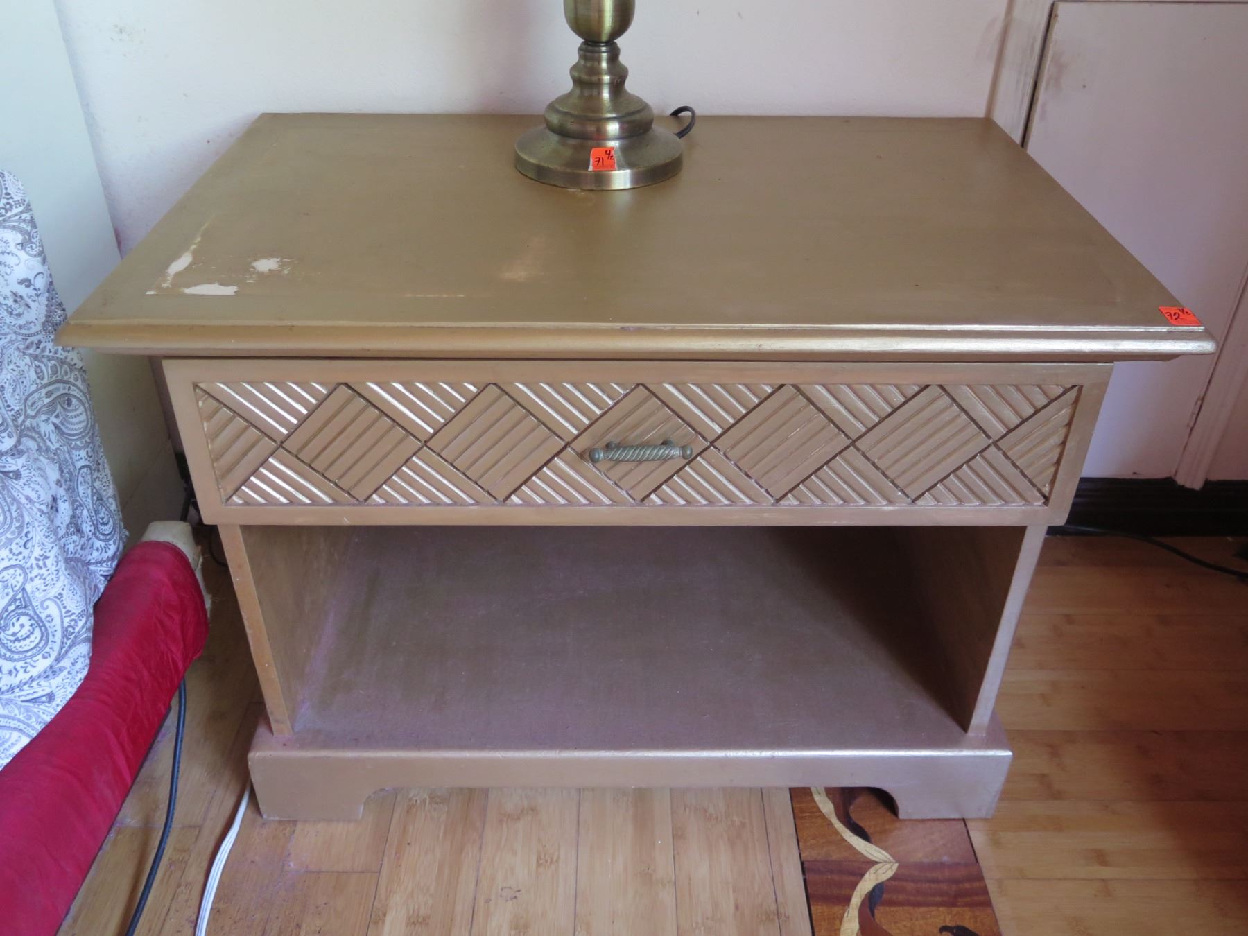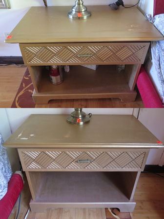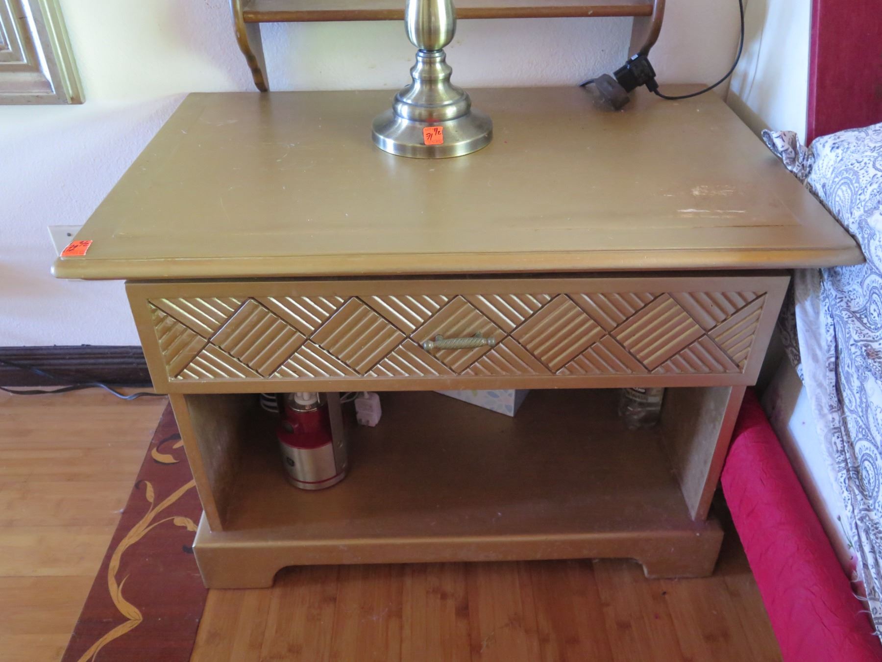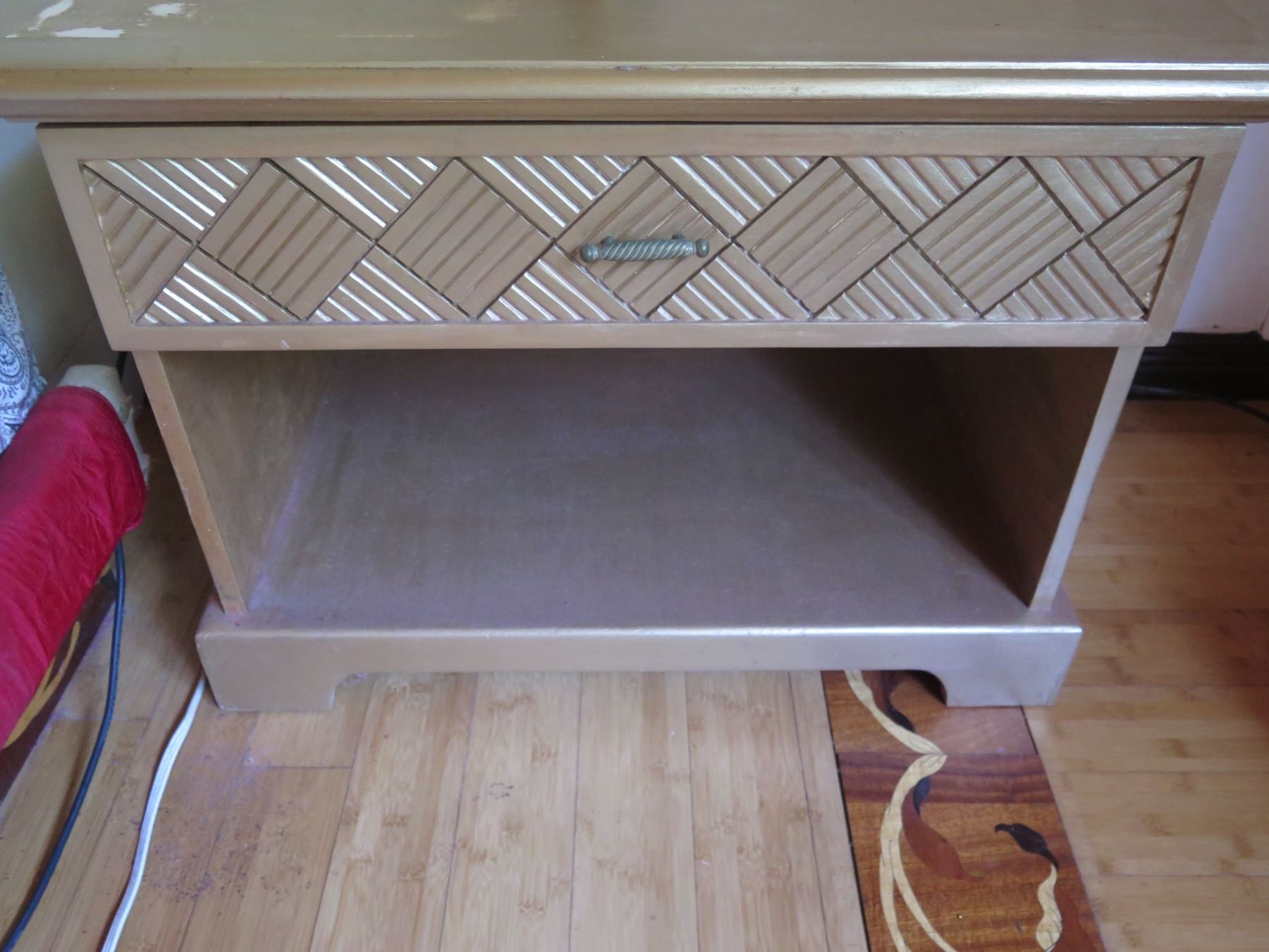 Qty 2 Wood Night Stands w/ Woven Design Drawers
