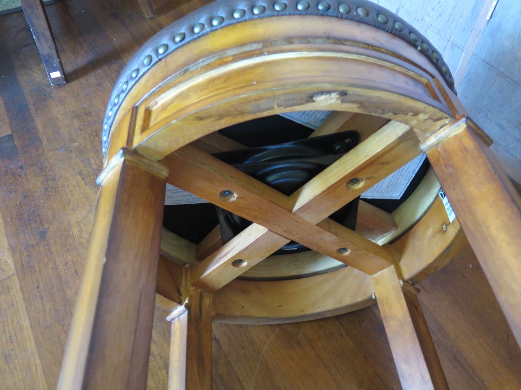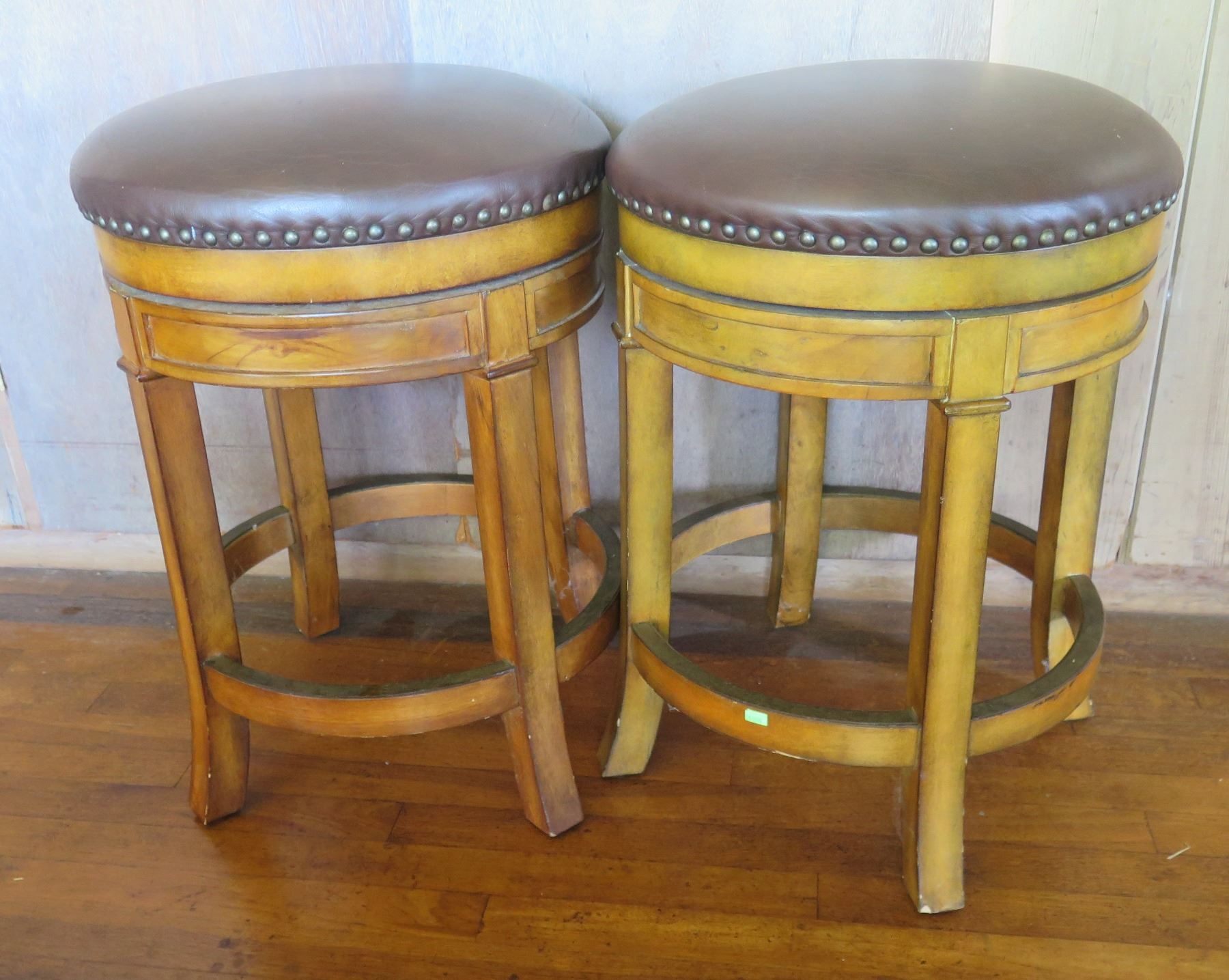 Qty 2 Wood Upholstered Bar Stools w/Curved Legs 24" Tall
