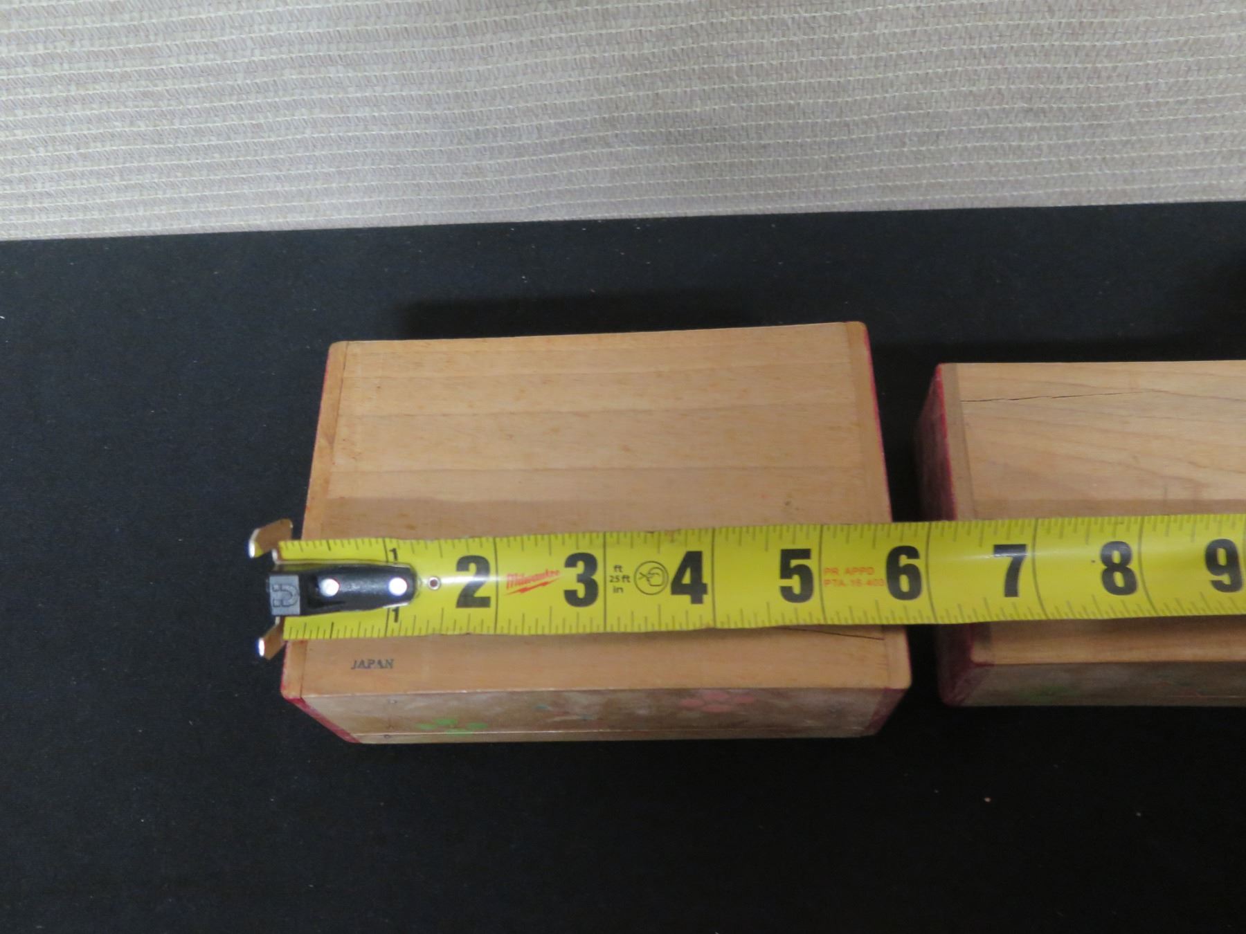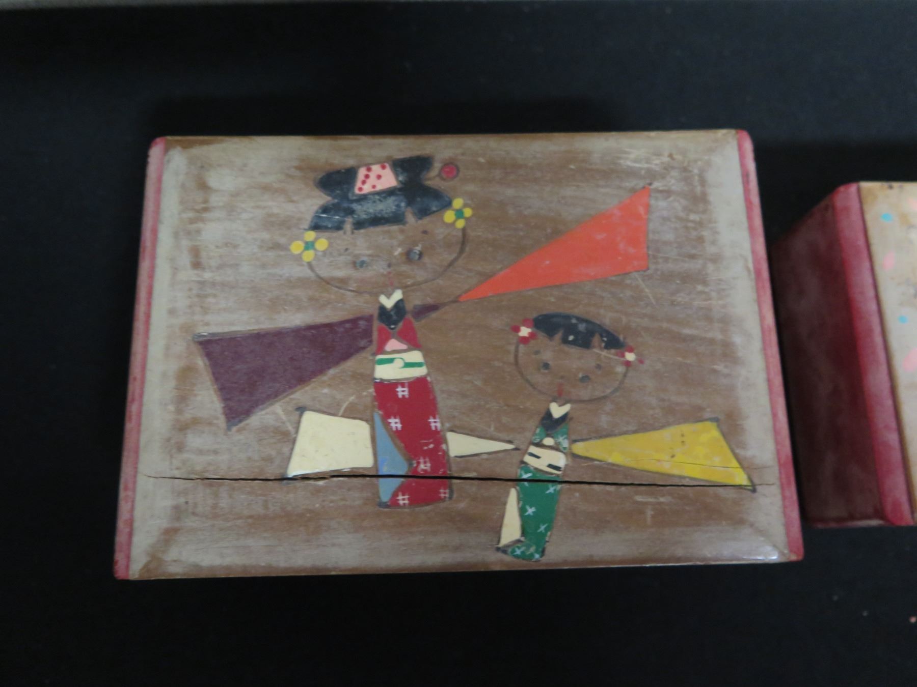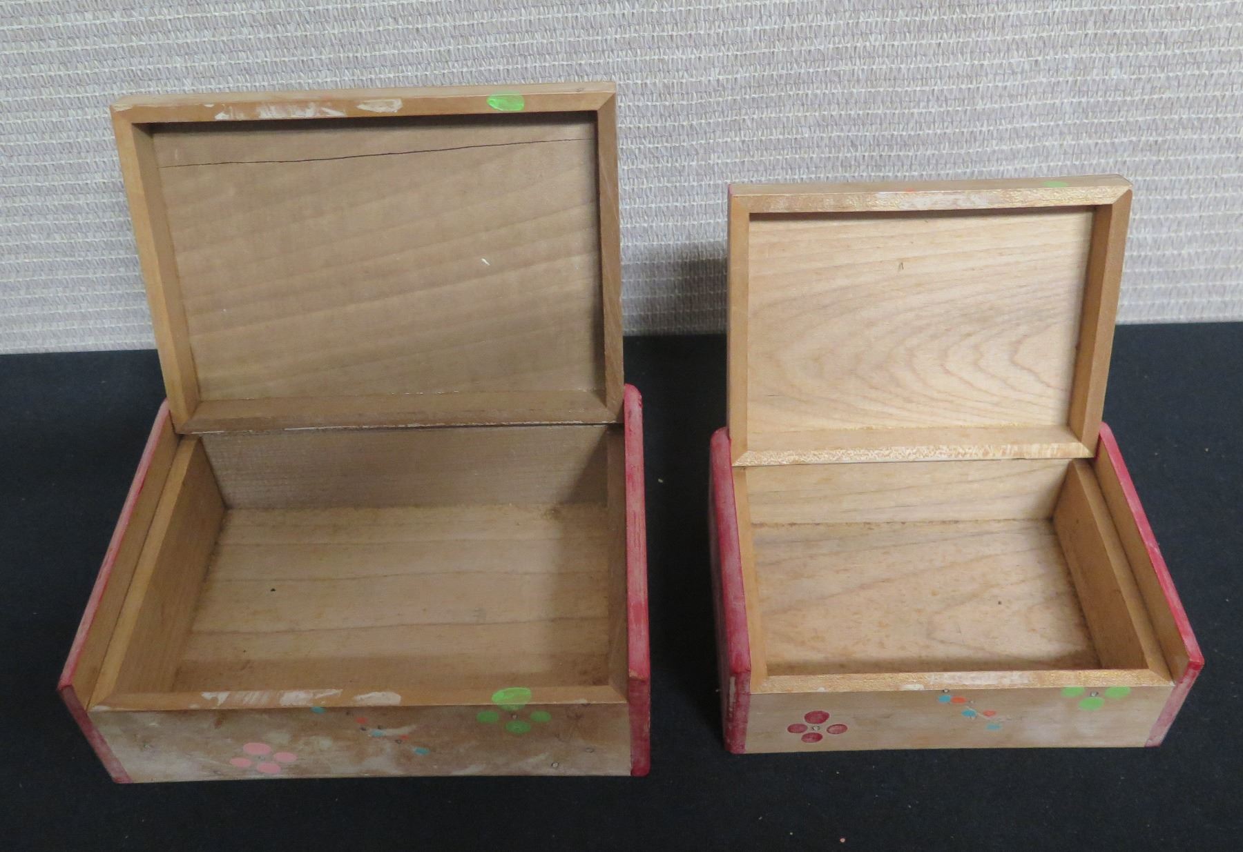 Qty 2 Wooden Boxes Made in Japan w/ Decorative Lids 5"-6"L