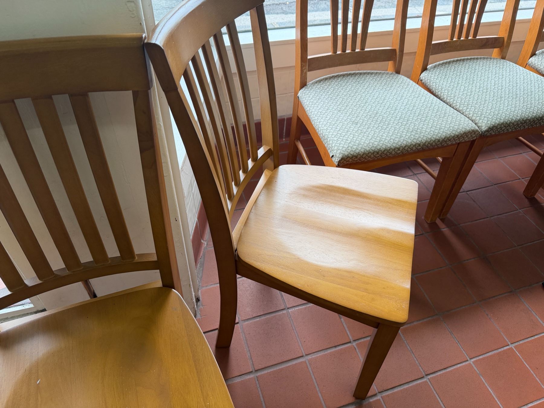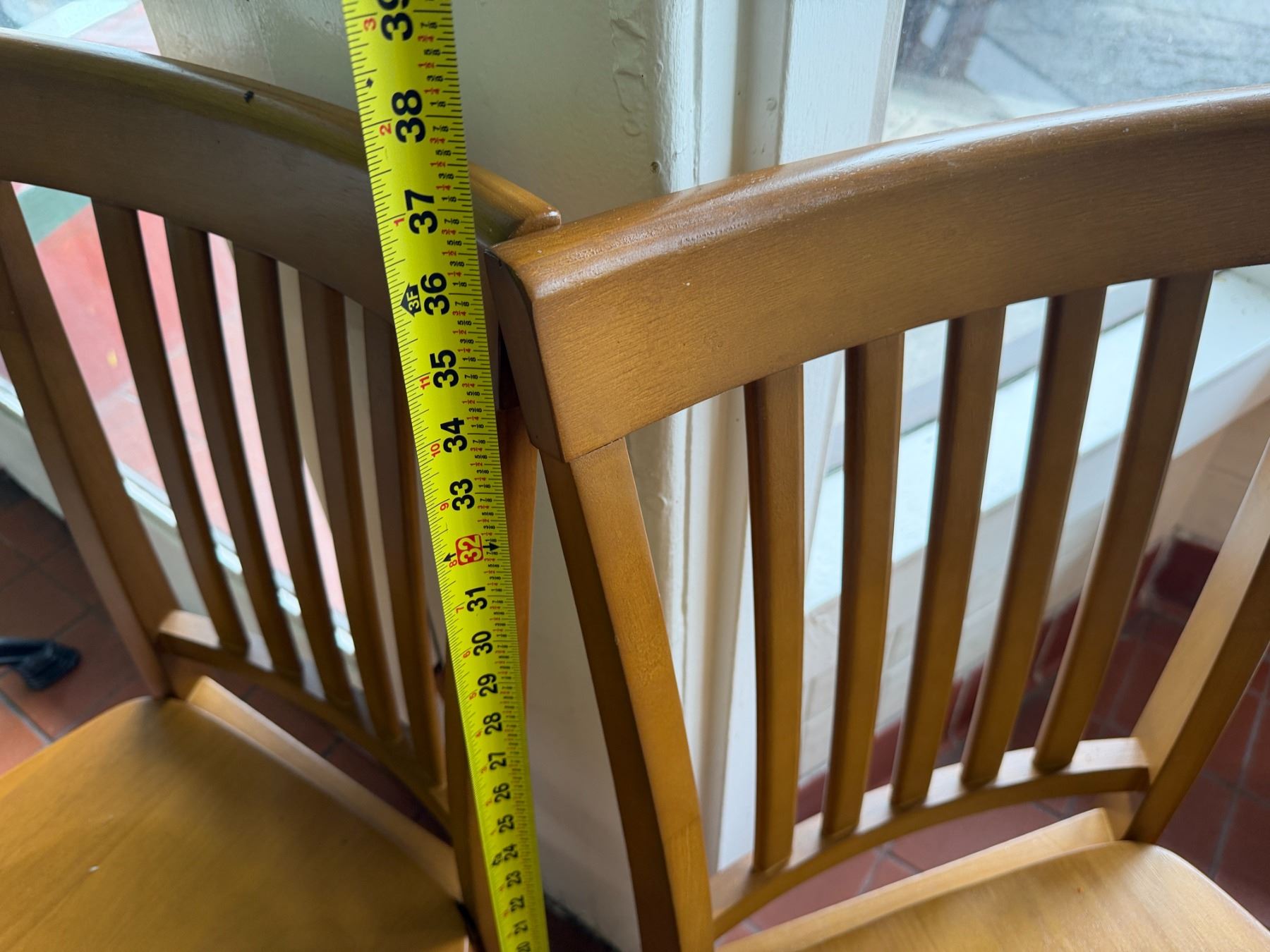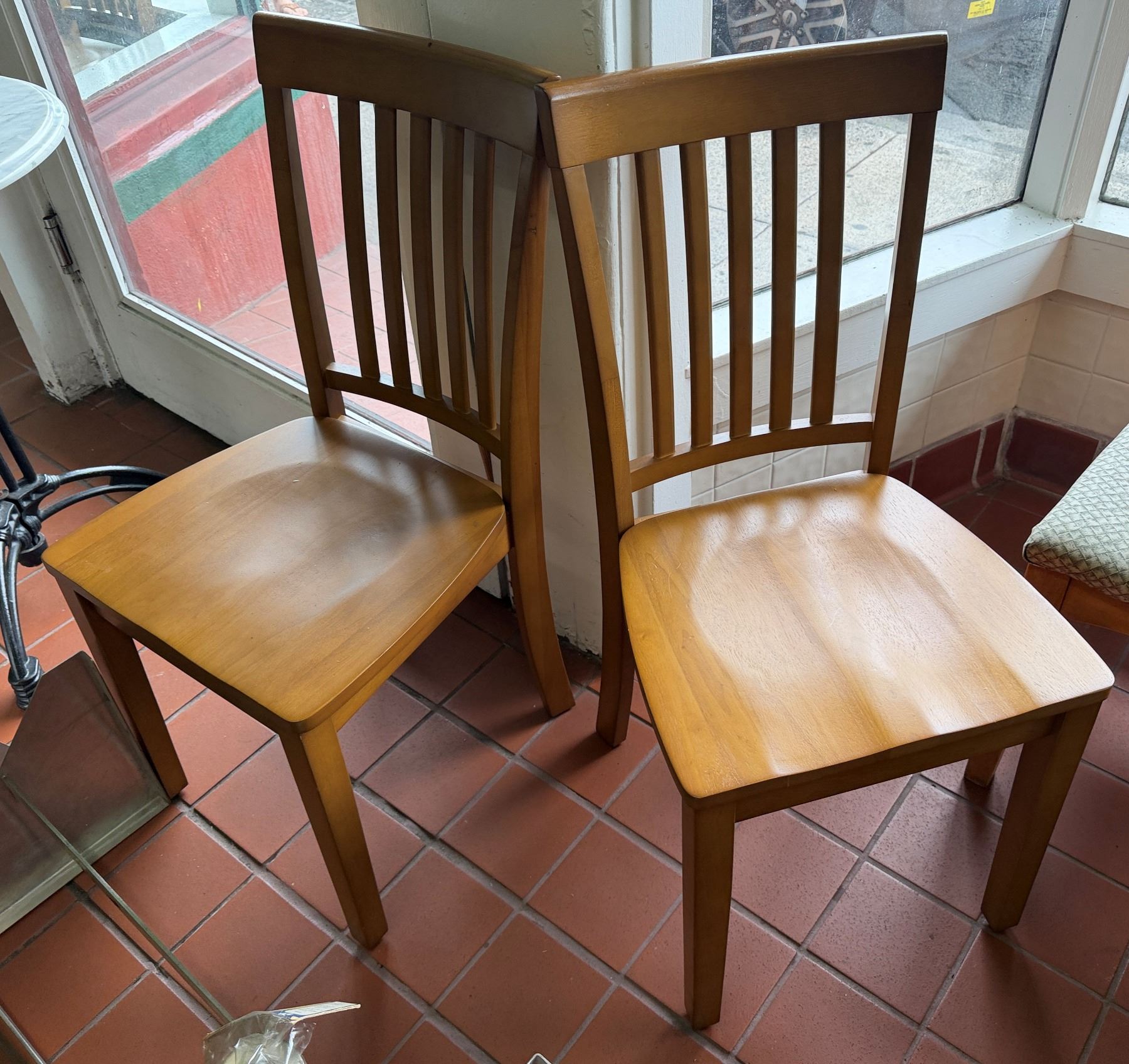 Qty 2 Wooden Chairs w/ Slatted Backs 17" x 37"H