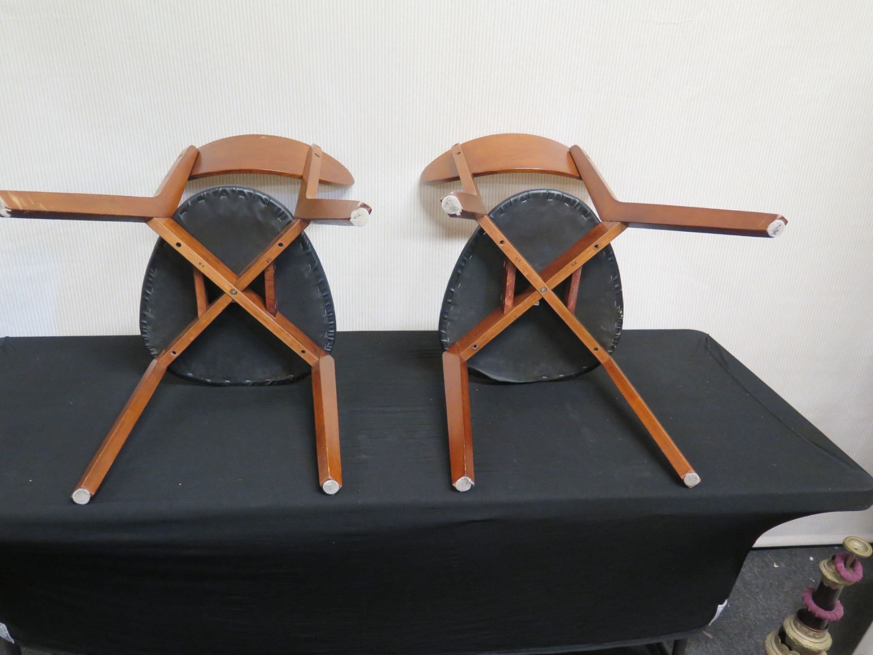 Qty 2 Wooden Chairs w/ Upholstered Triangular Seats 15" x 17" x 32"H