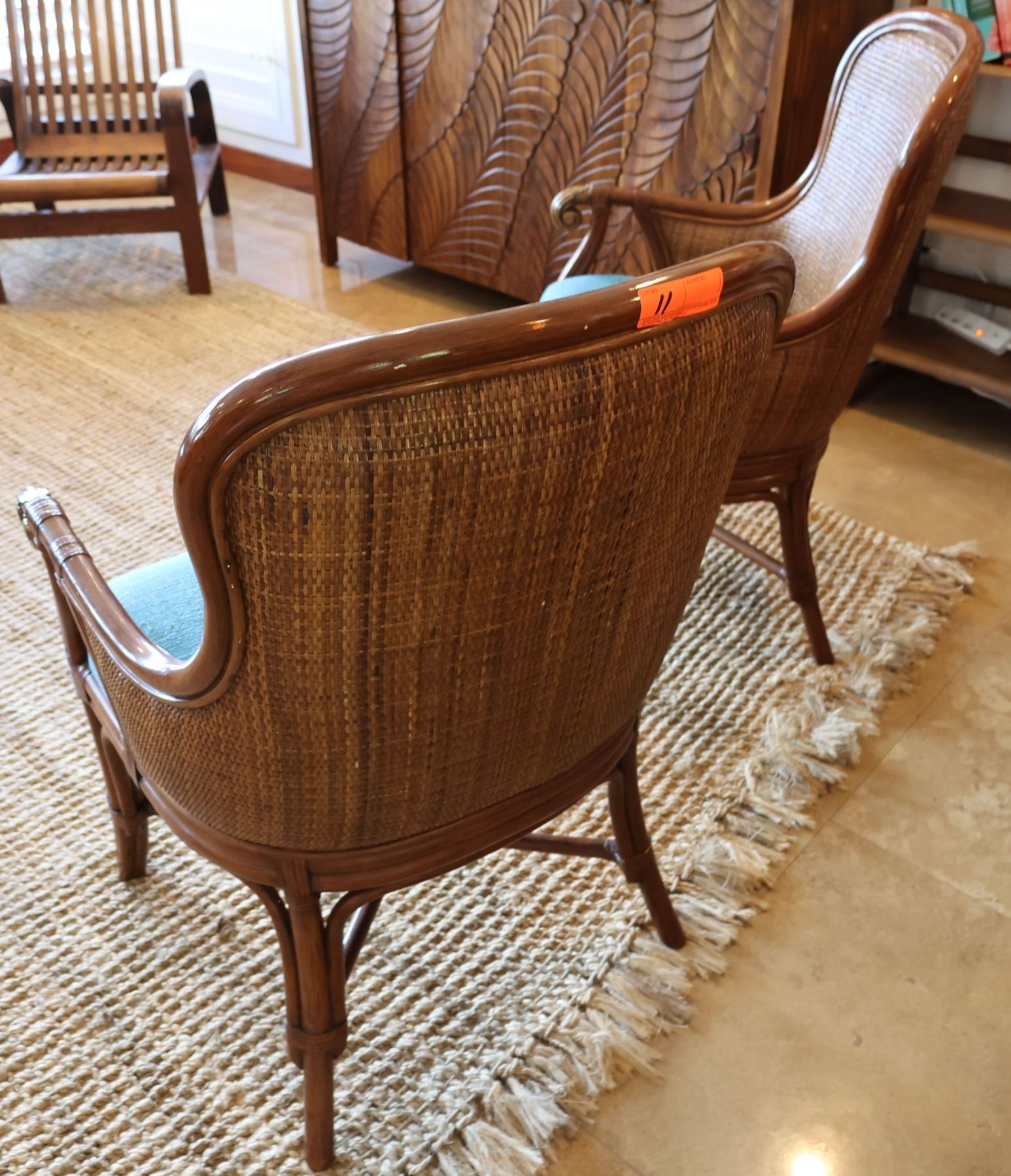 Qty 2 Wooden Chairs w/ Woven Backs & Upholstered Seats 24" x 19" x 38"H