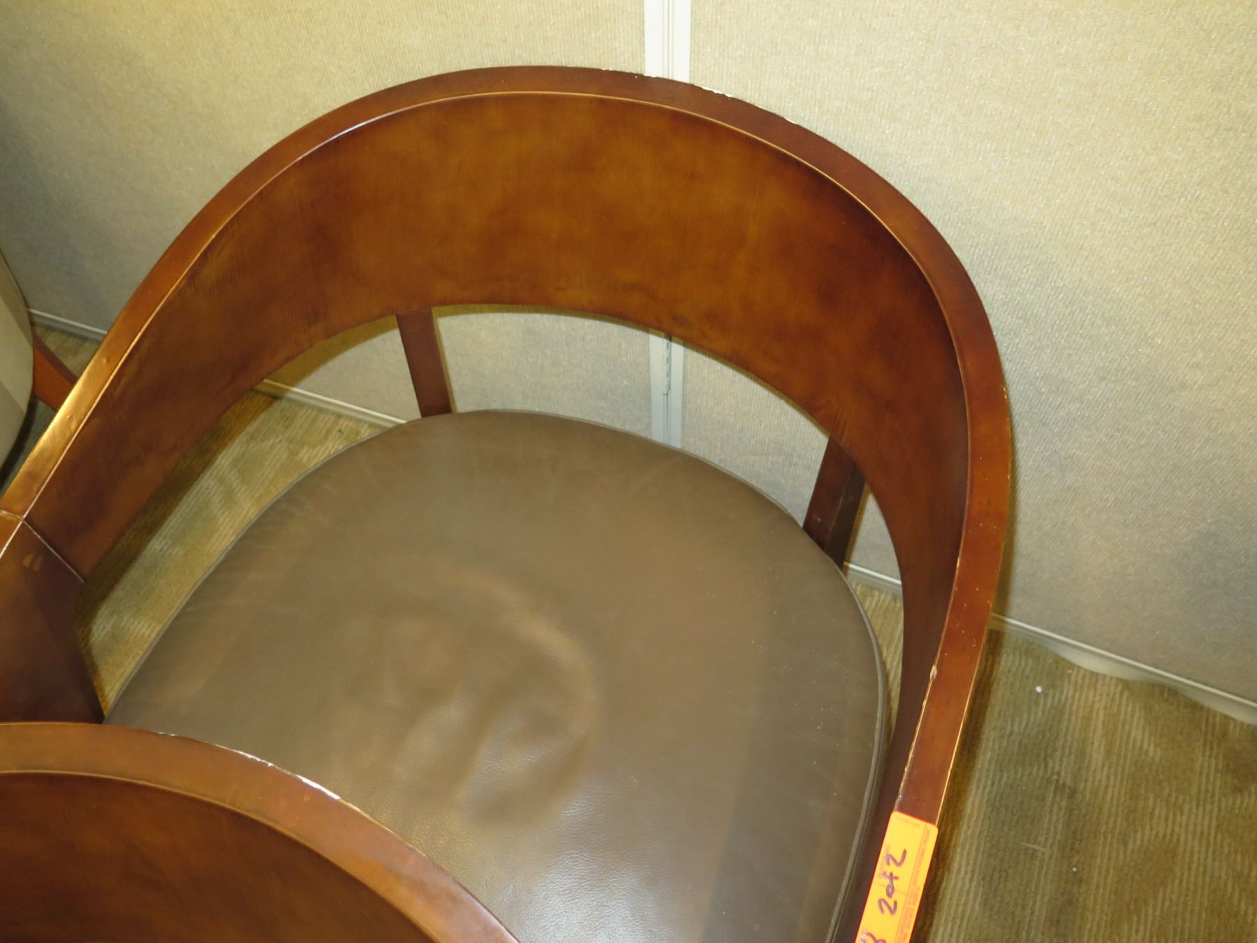 Qty 2 Wooden Curved Armchairs w/ Upholstered Seat 26" x 24" x 18" Seat Height