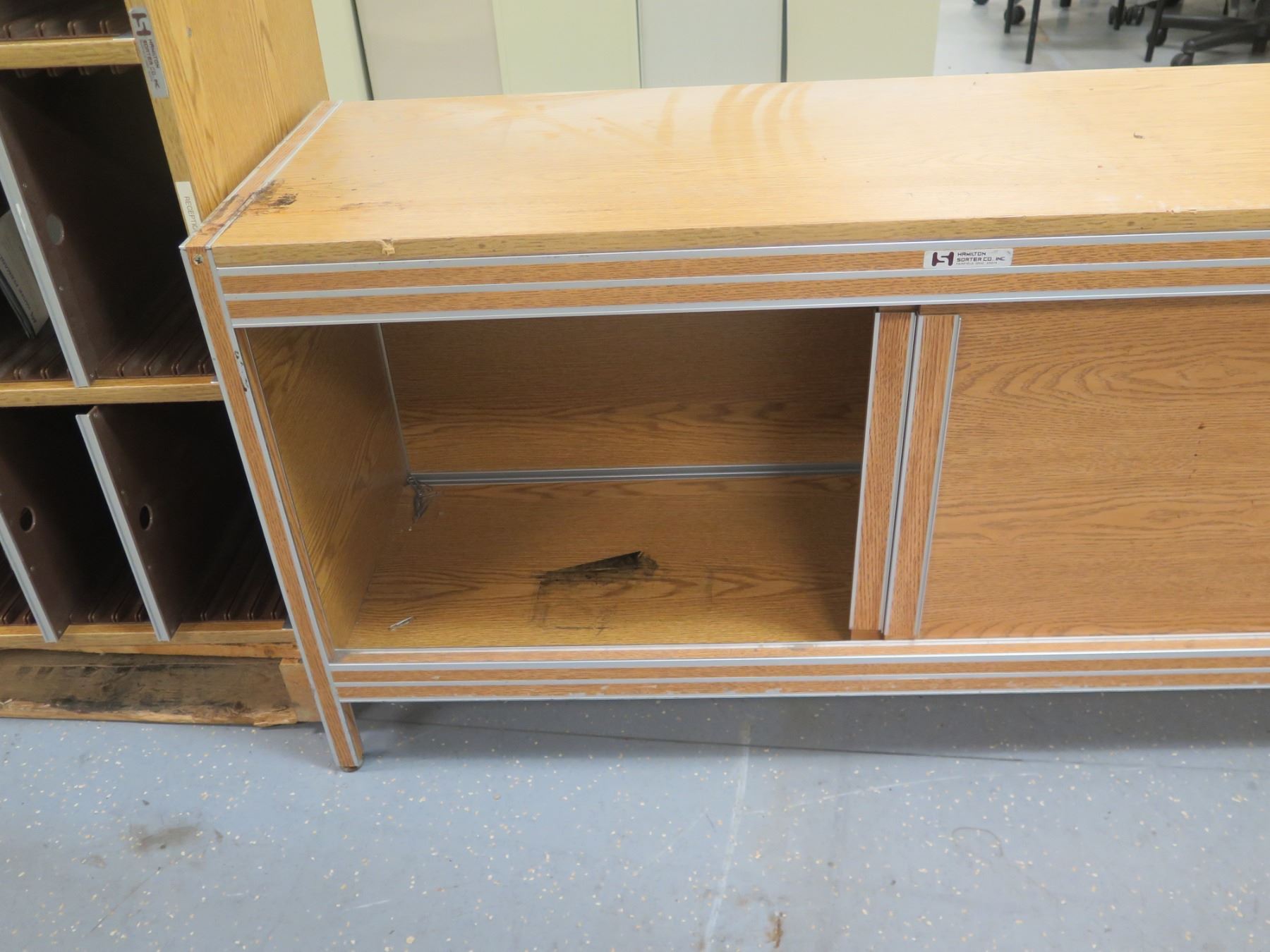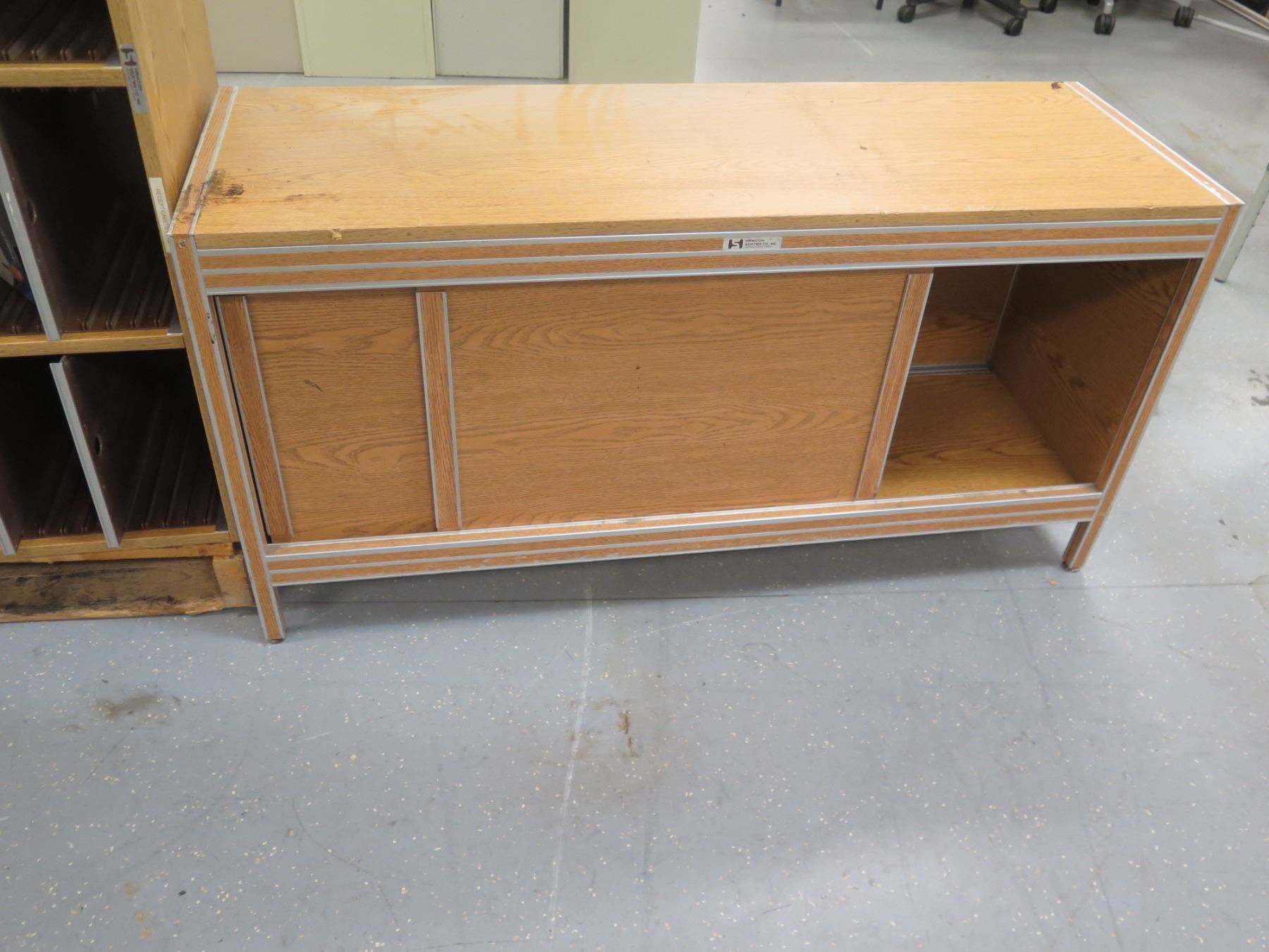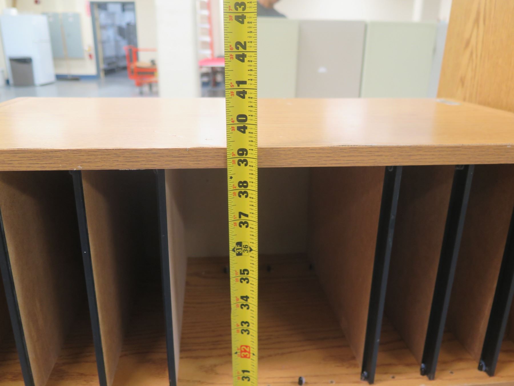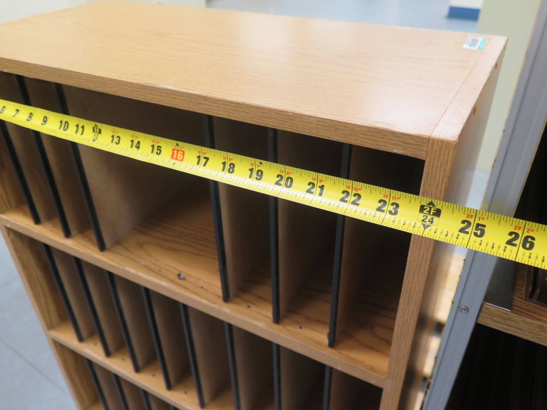 Qty 2 Wooden Organizer Open-Front Cabinets & Hamilton Sorter Shelf