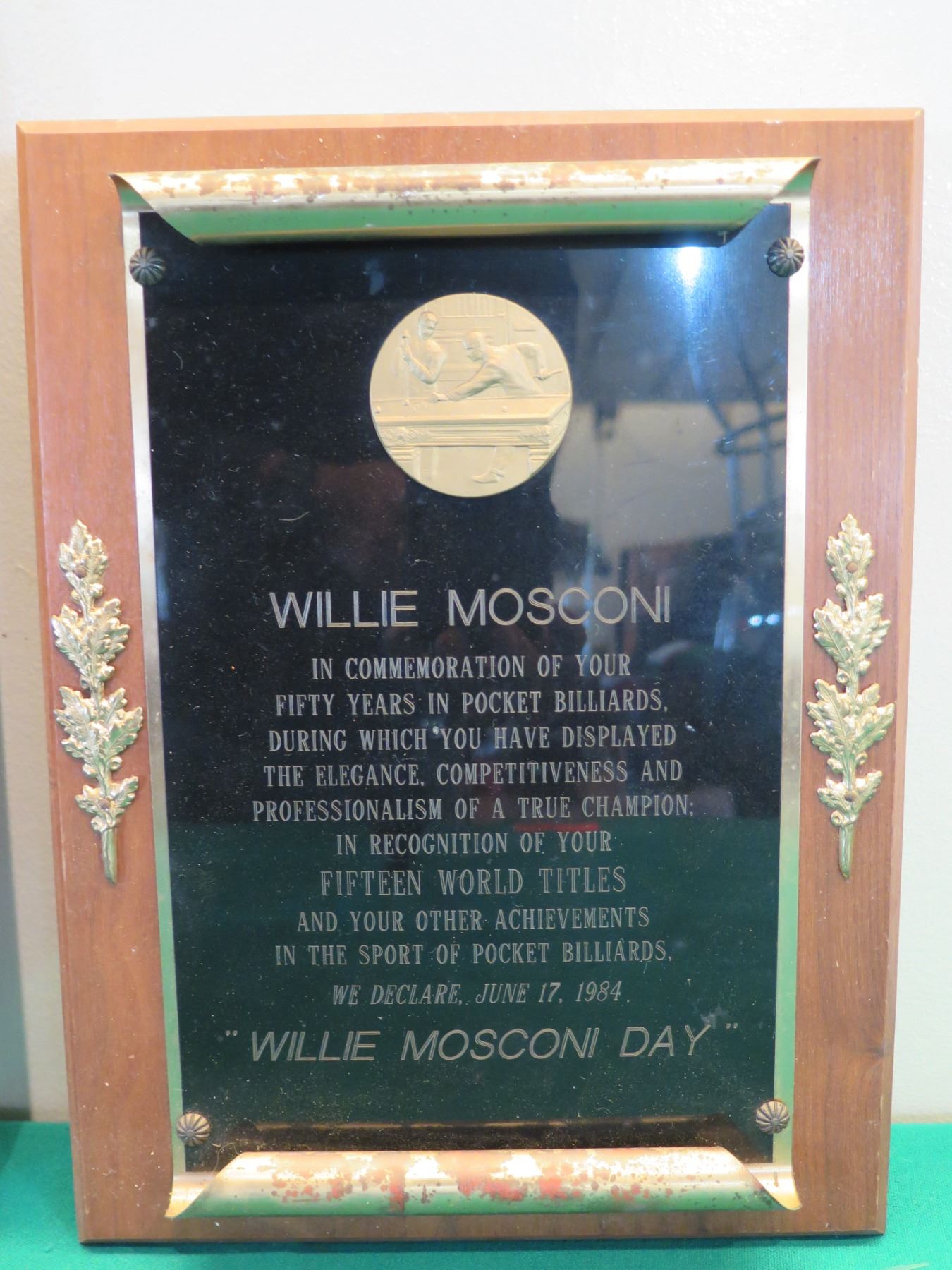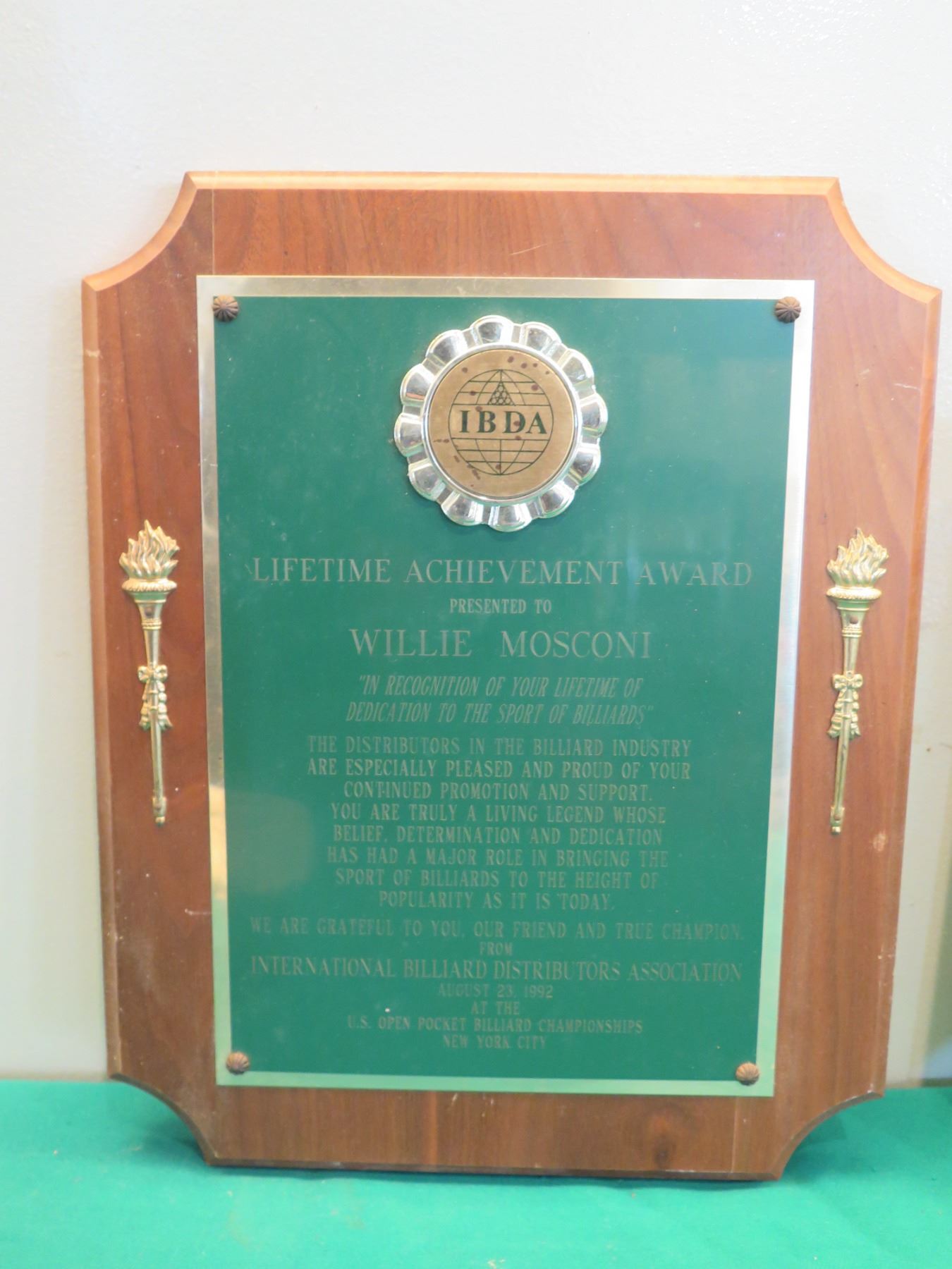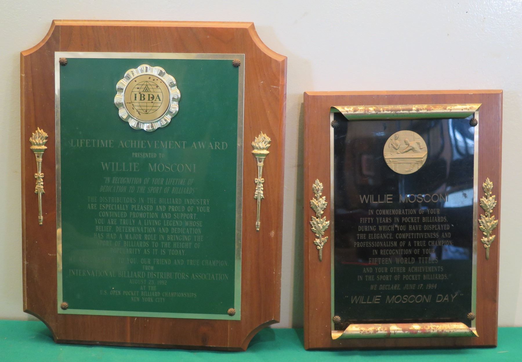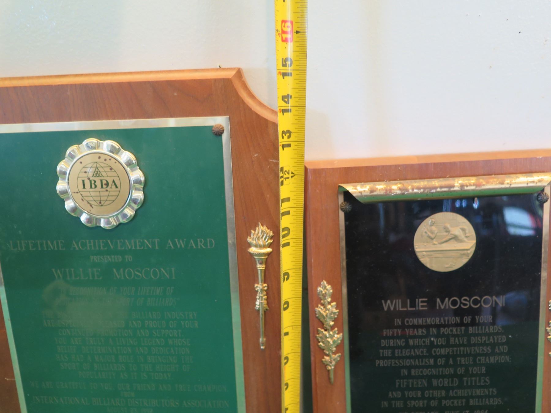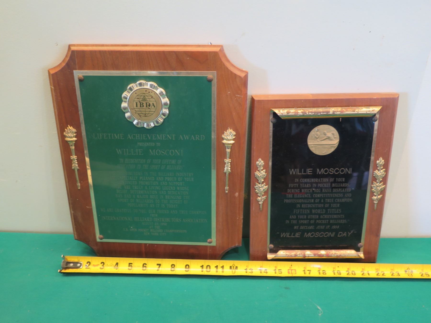 Qty 2 Wooden Plaques Trophy Wall Hangings Willie Mosconi Award
