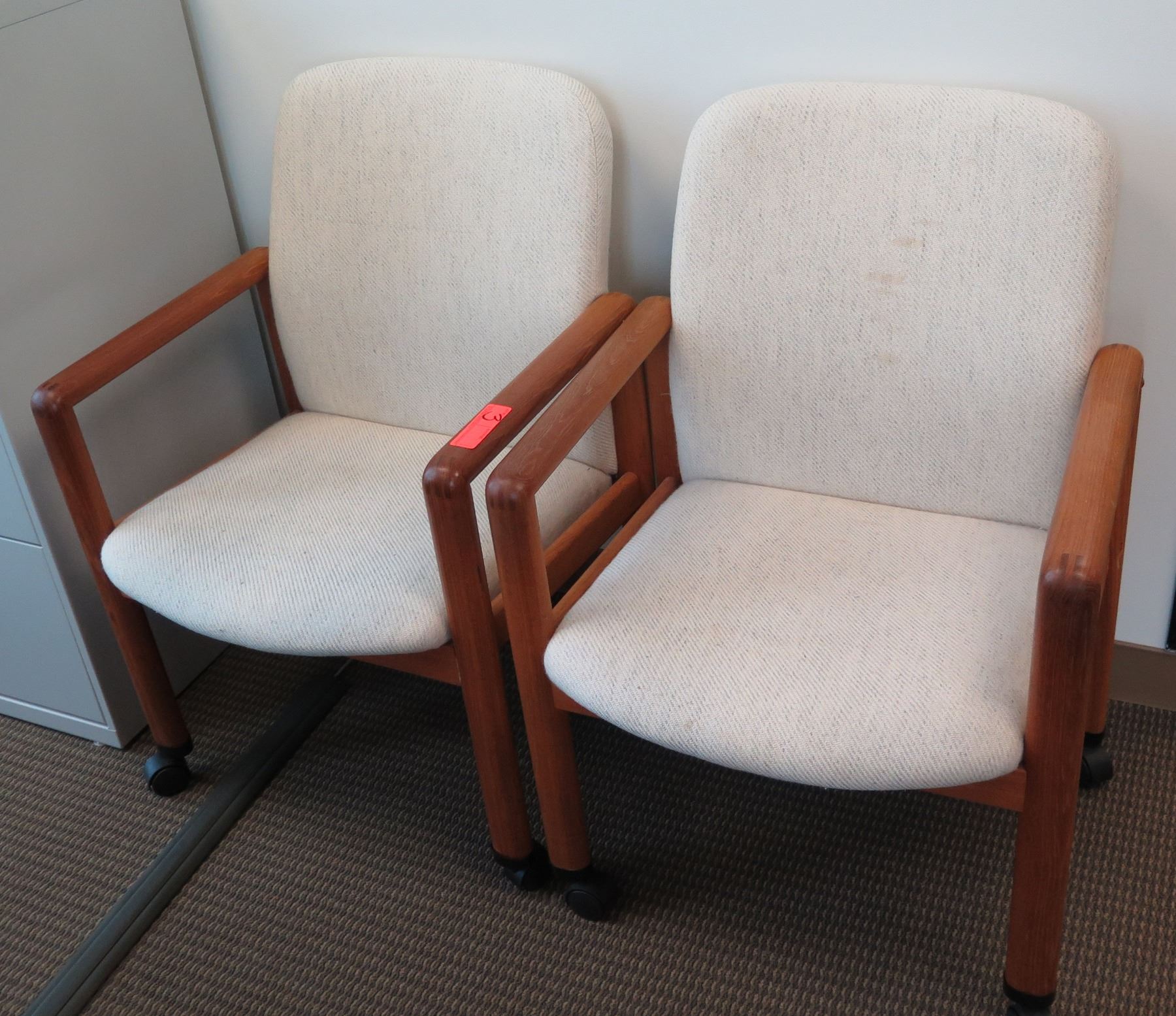 Qty 2 Wooden Reception Chairs w/ Upholstered Seat & Back