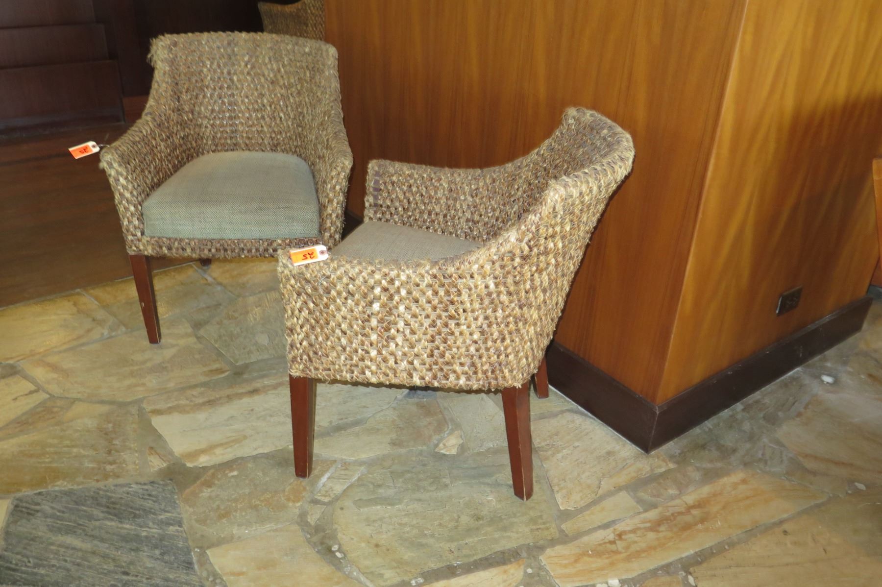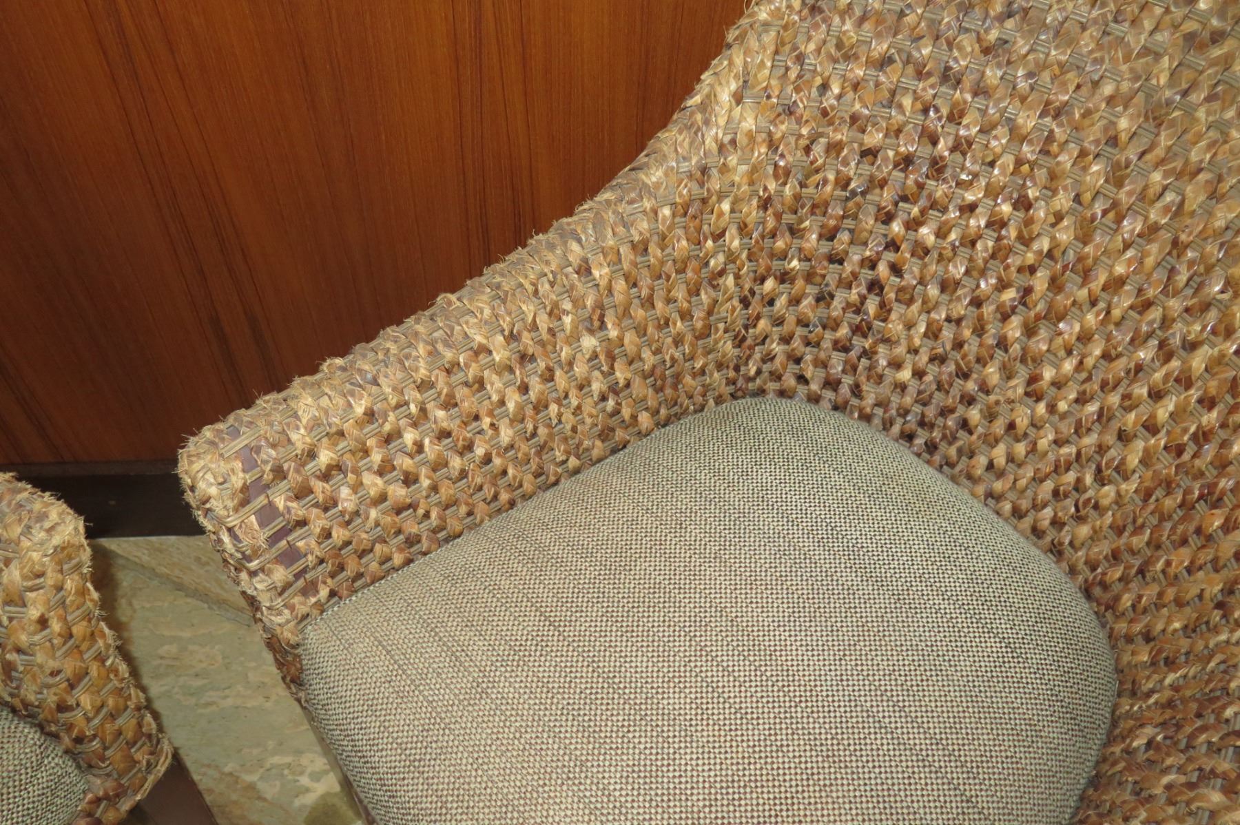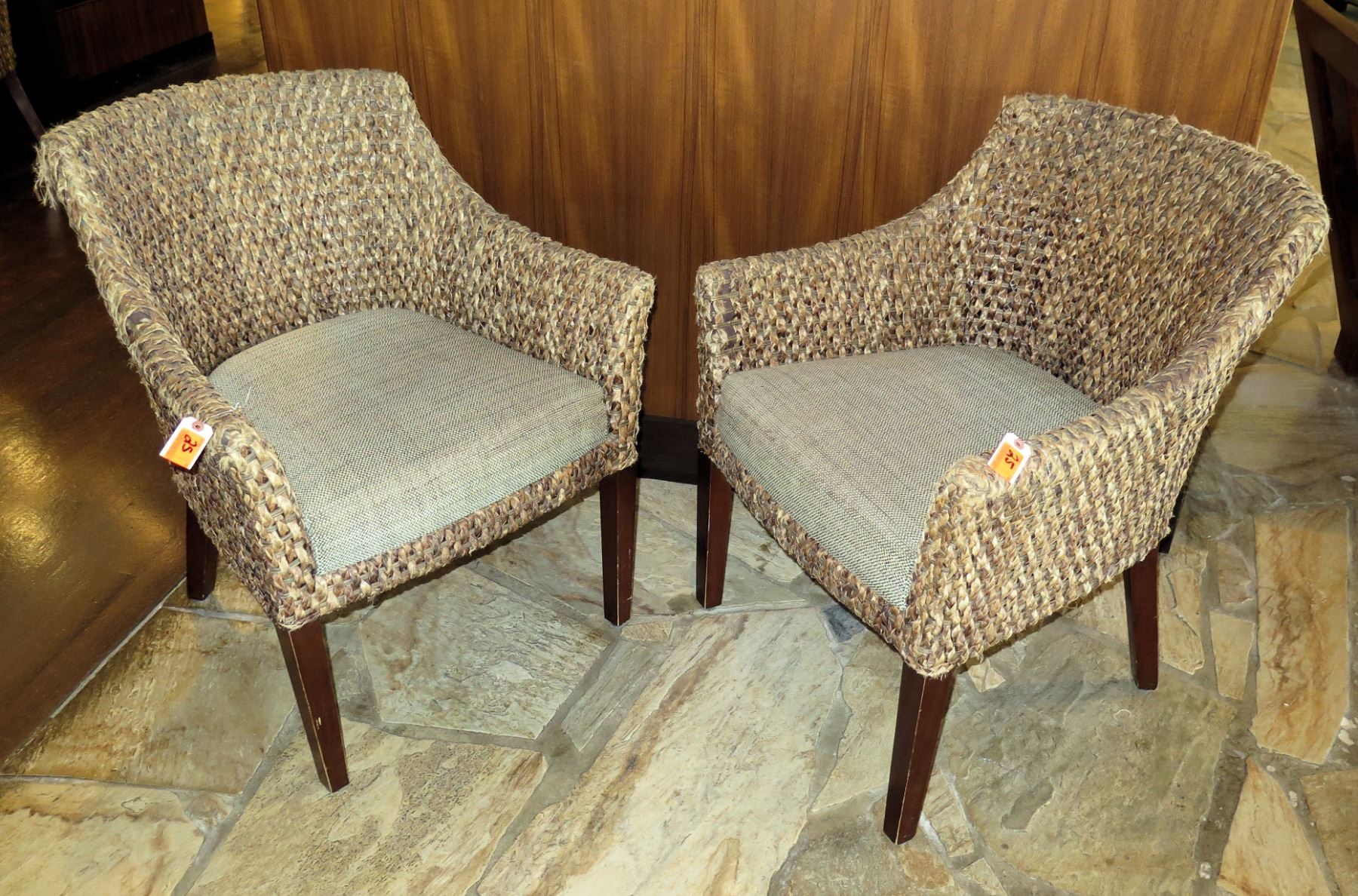 Qty 2 Woven Chairs w/ Upholstered Seats (26" Across)