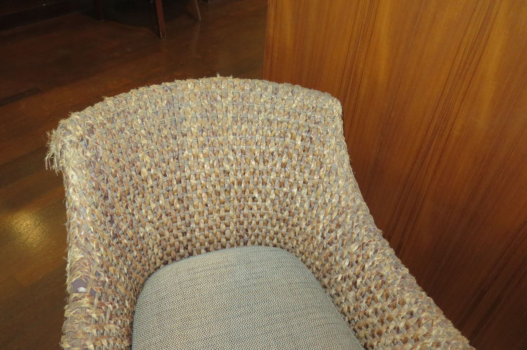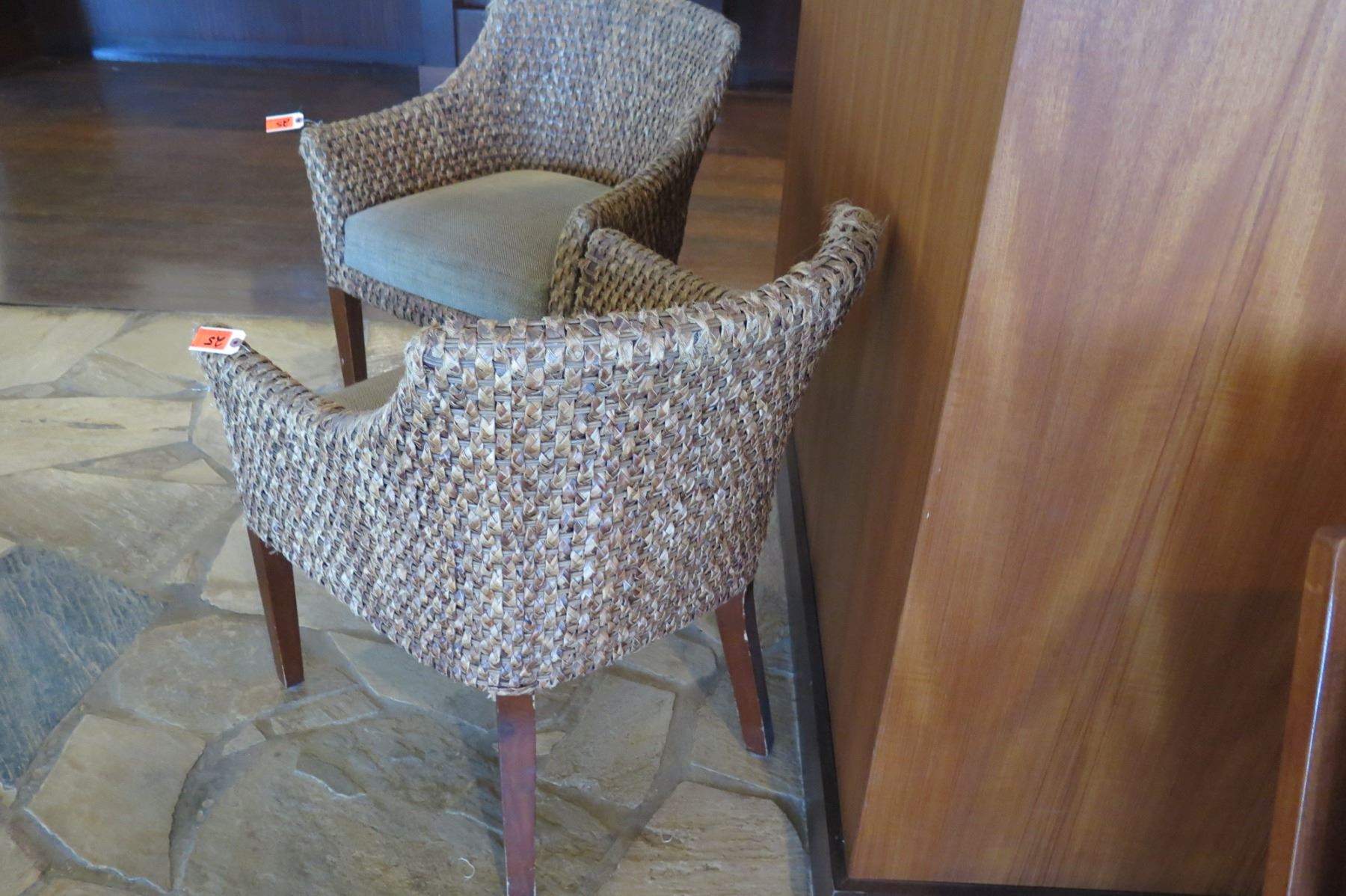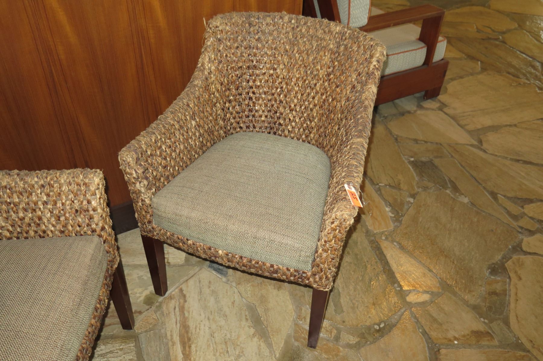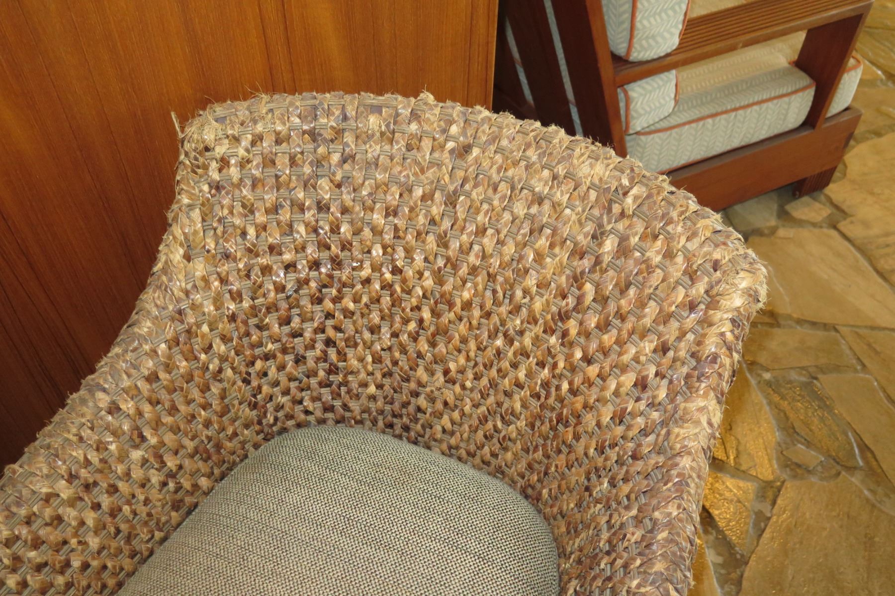 Qty 2 Woven Chairs w/ Upholstered Seats (26" Across)