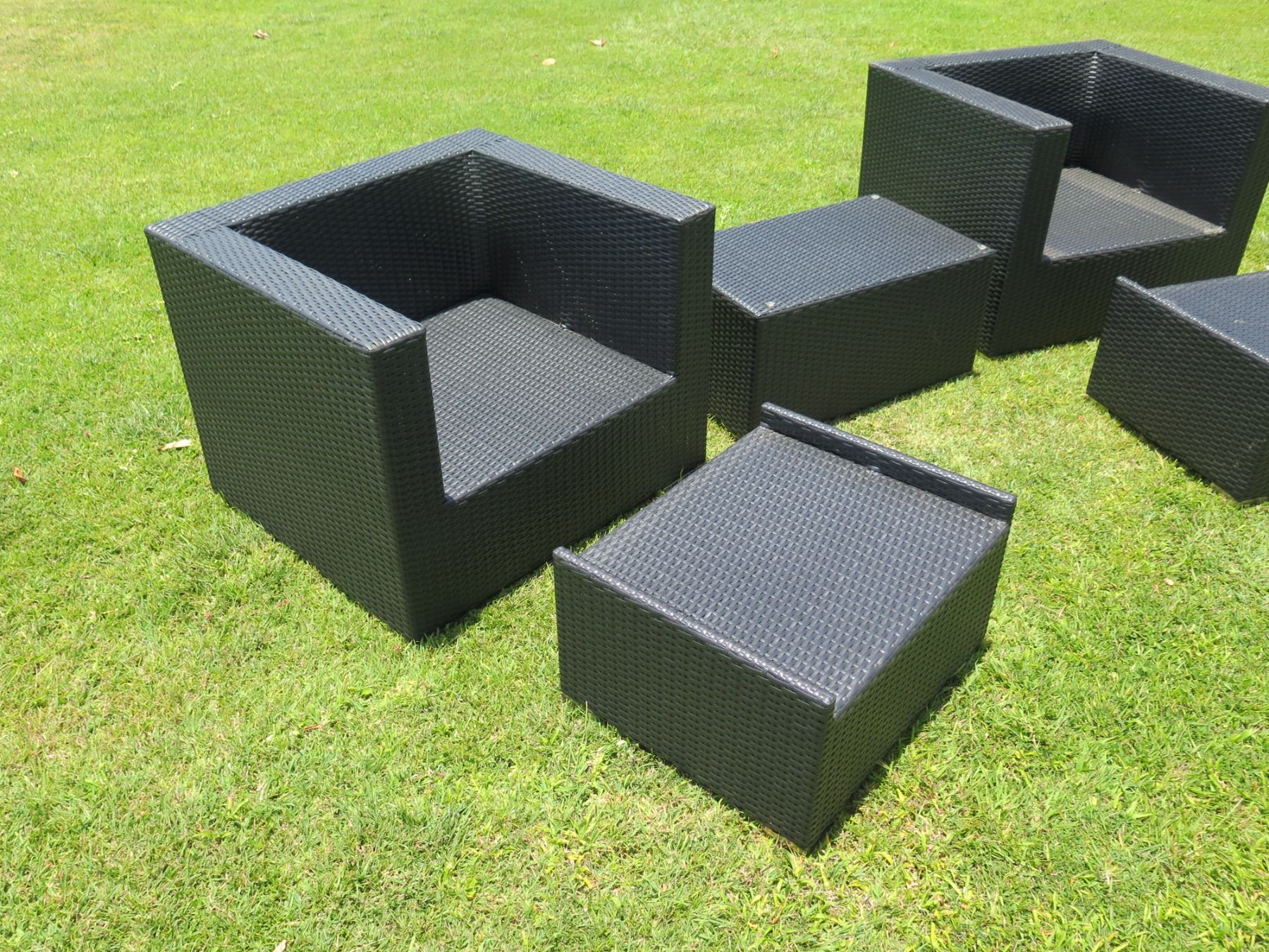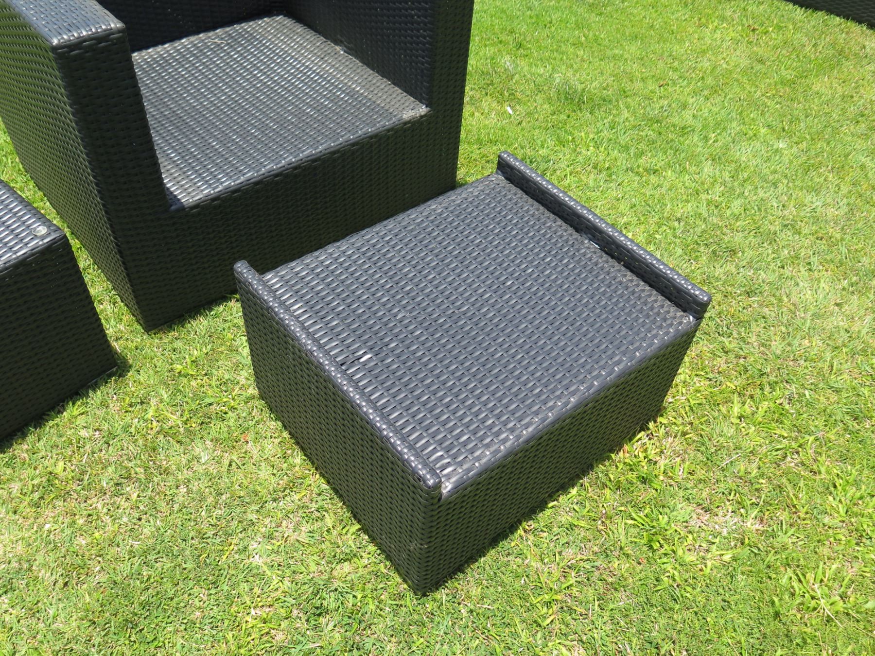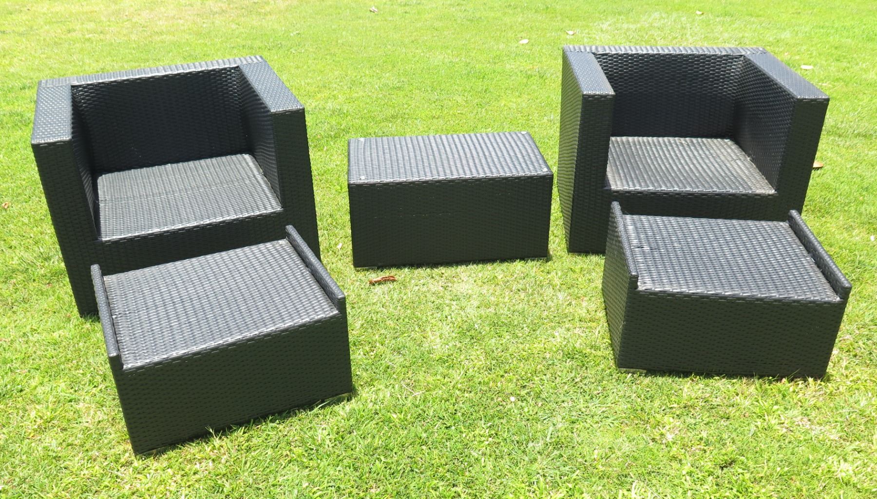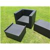 Qty 2 Woven Synthetic Armchairs 36"x26"x28"H w/ 2 Ottomans & Side Table