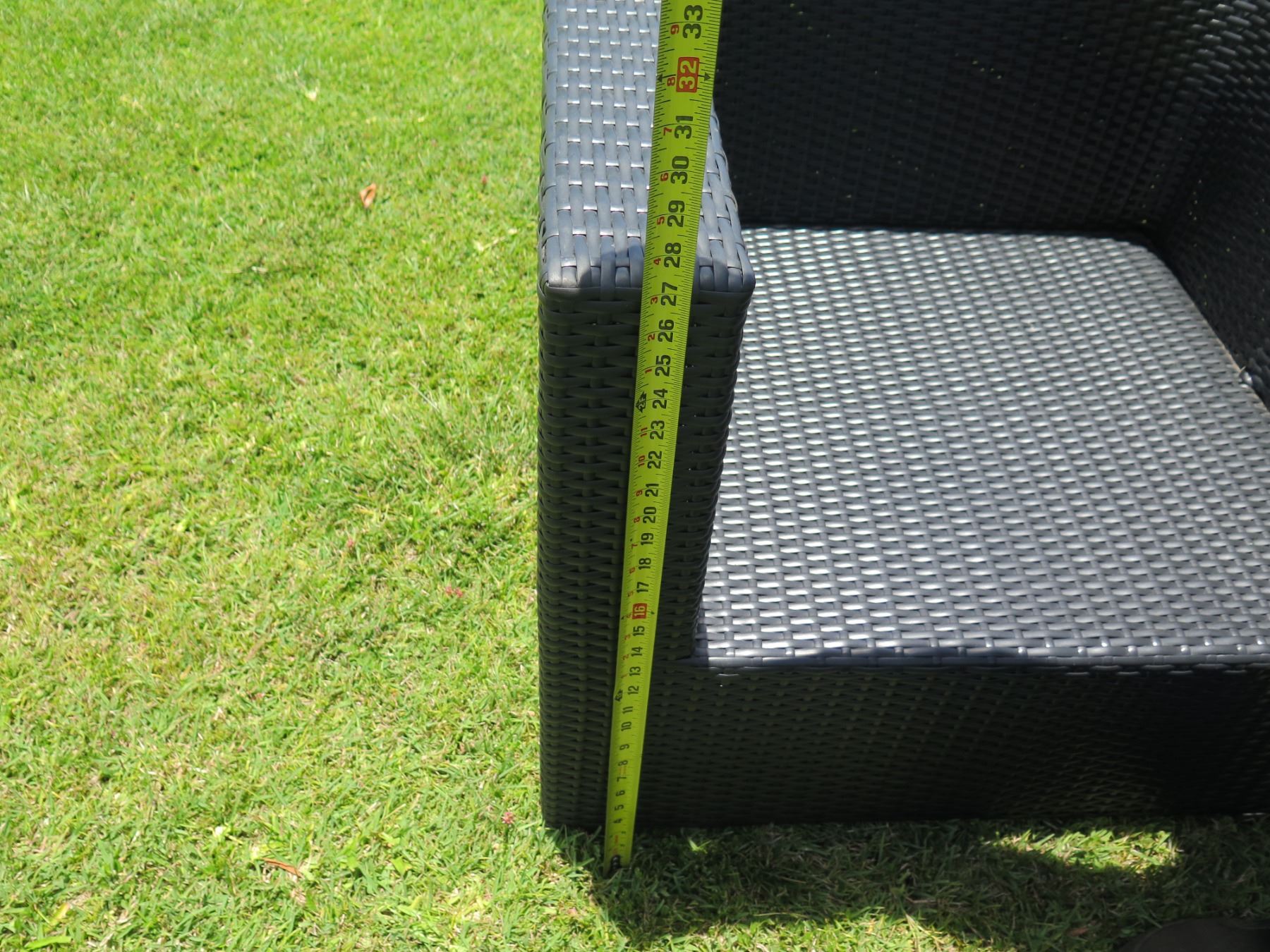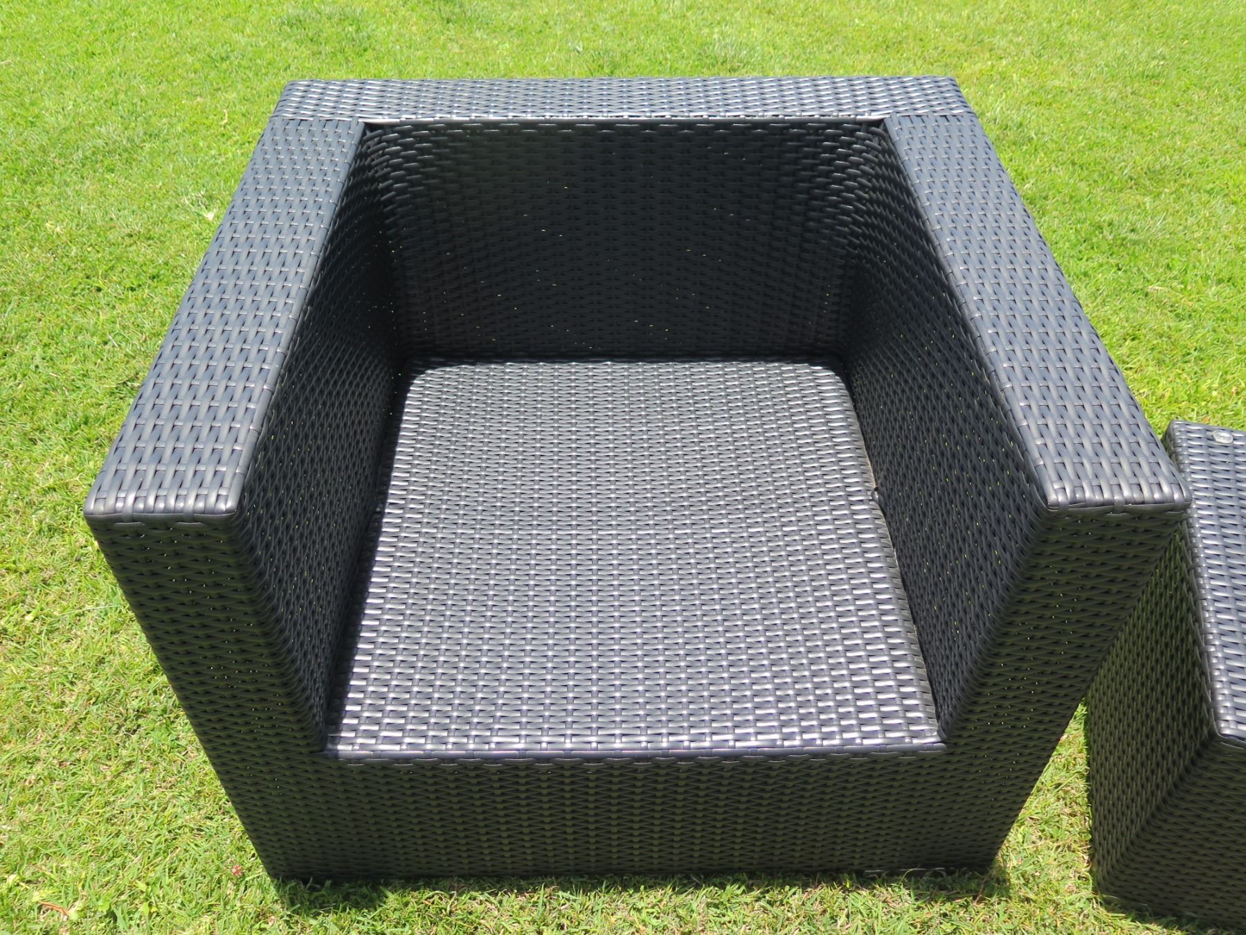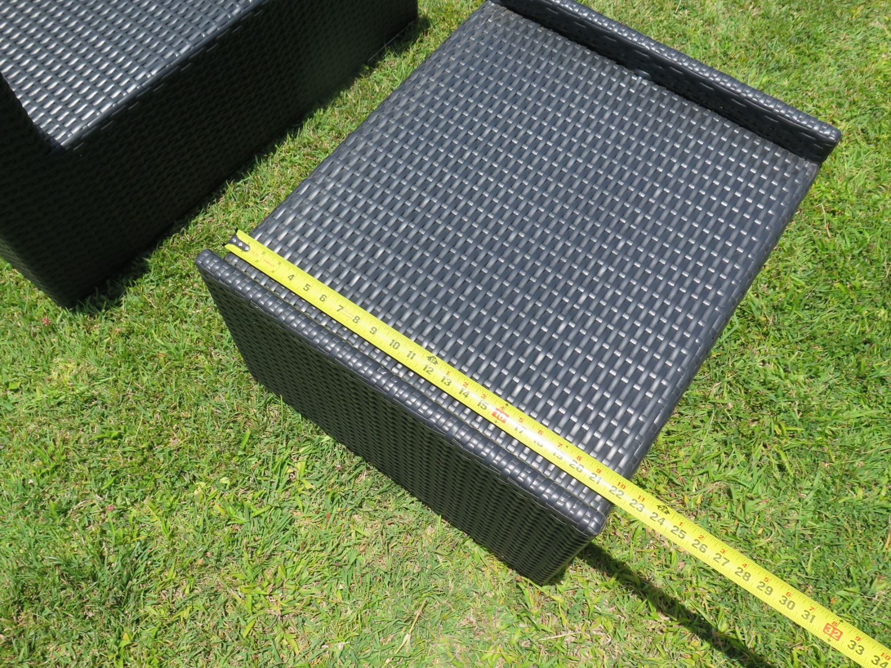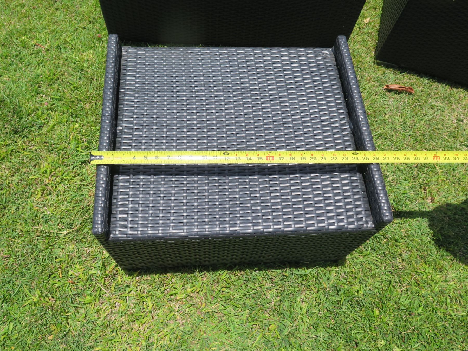 Qty 2 Woven Synthetic Armchairs 36"x26"x28"H w/ 2 Ottomans & Side Table