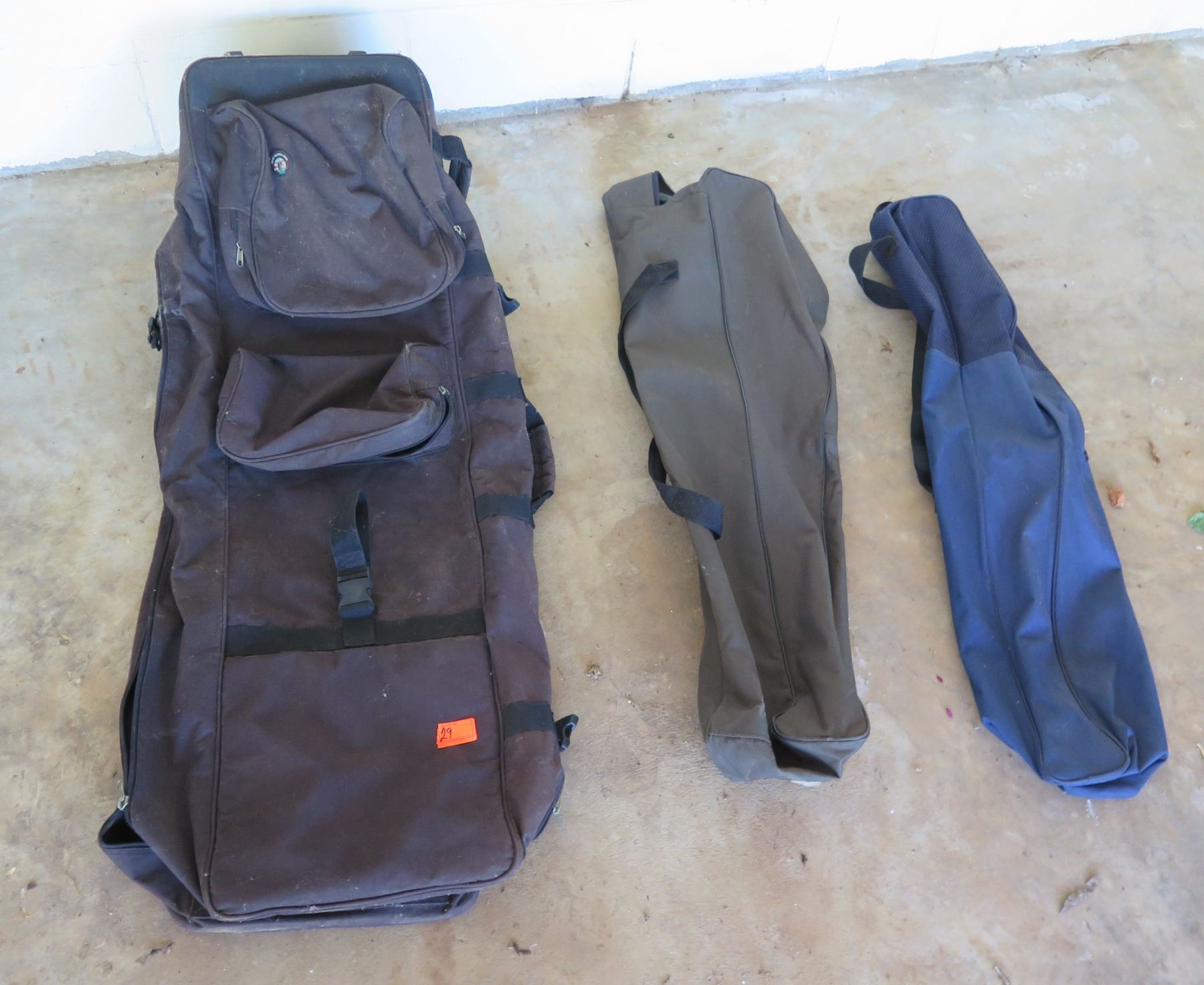 Qty 2 Zipper Instrument Bags & Large 3 Section Golf Travel Backpack