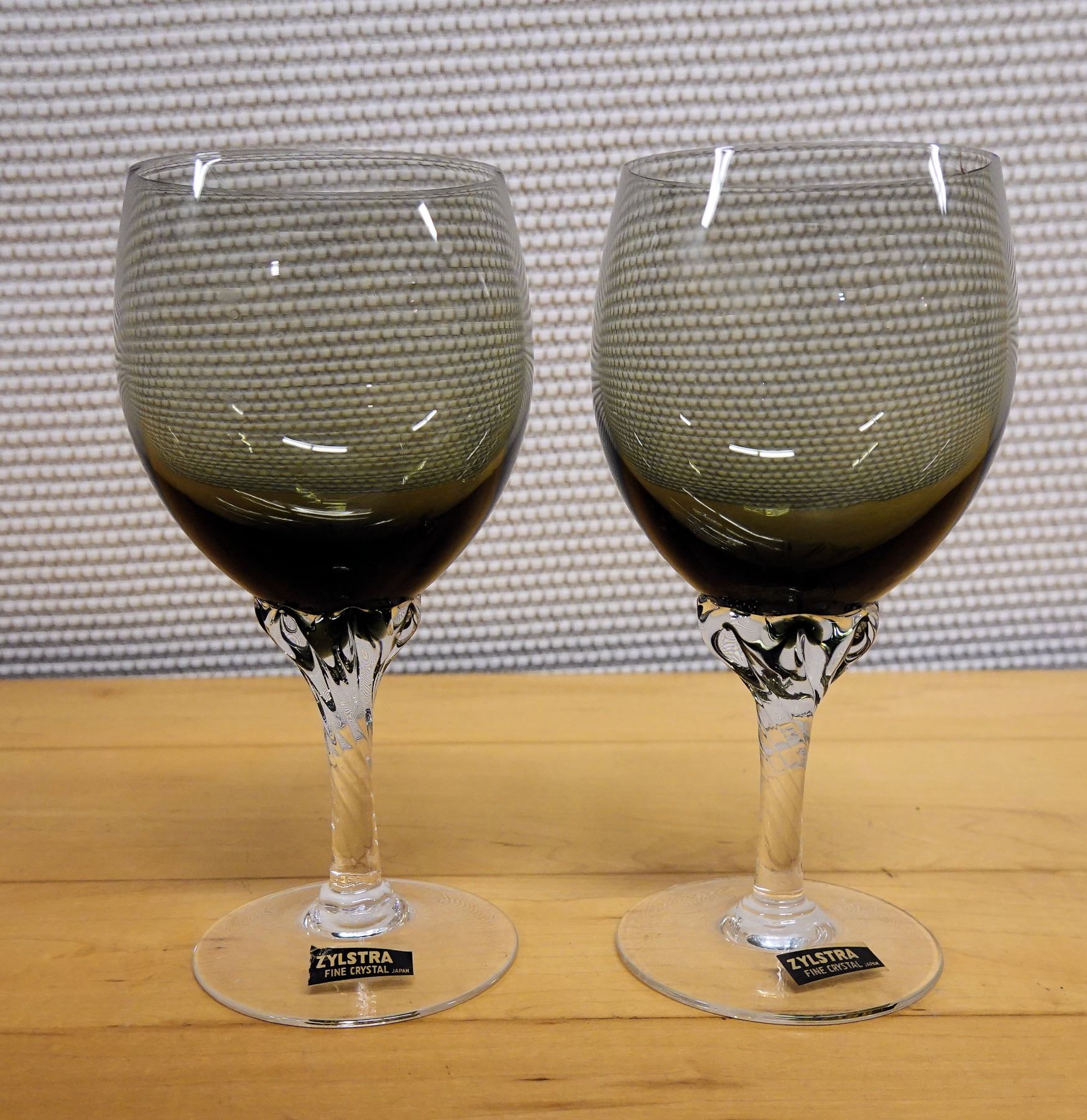 Qty 2 Zylstra Fine Crystal Japan Stemmed Wine Glasses 3" Dia, 6.75"H