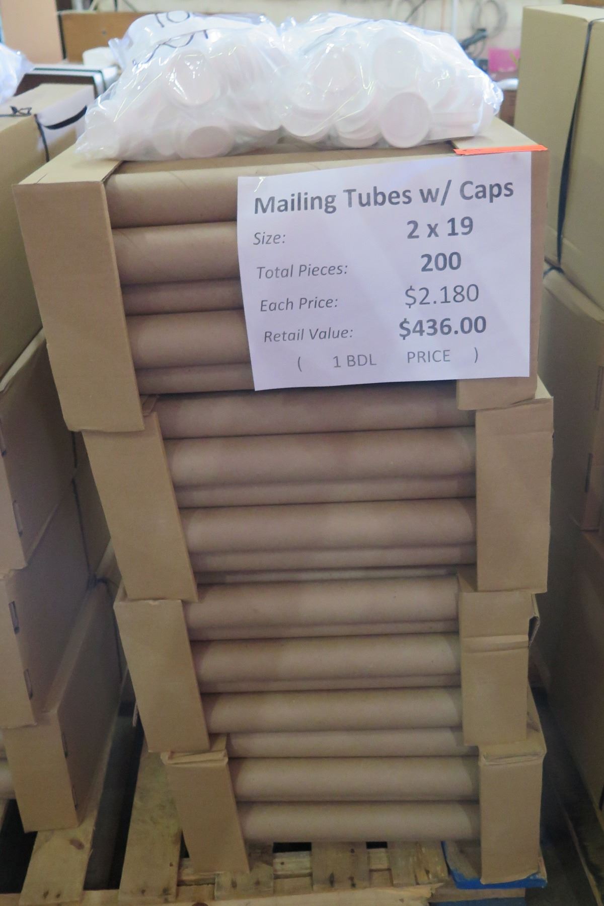 Qty 200 Mailing Tubes w/ Caps 2 x19  Retail $436