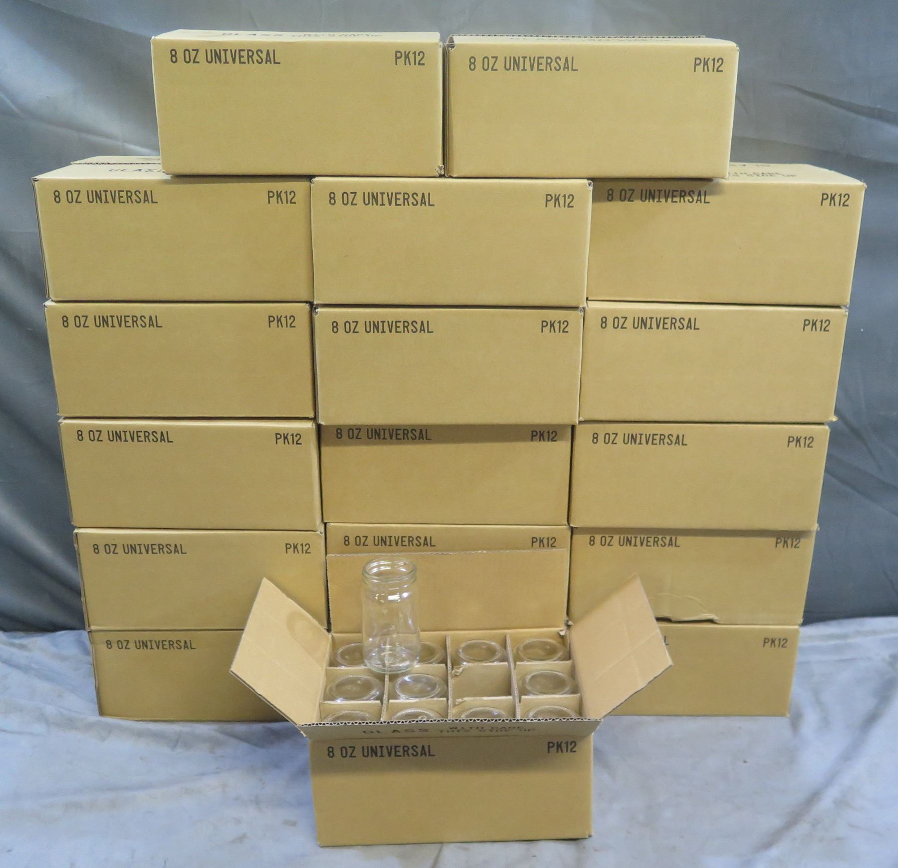 Qty 216 Mason Jars, 8 oz Universal (no lids)