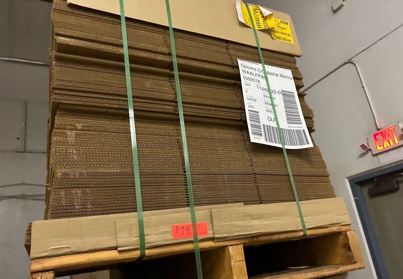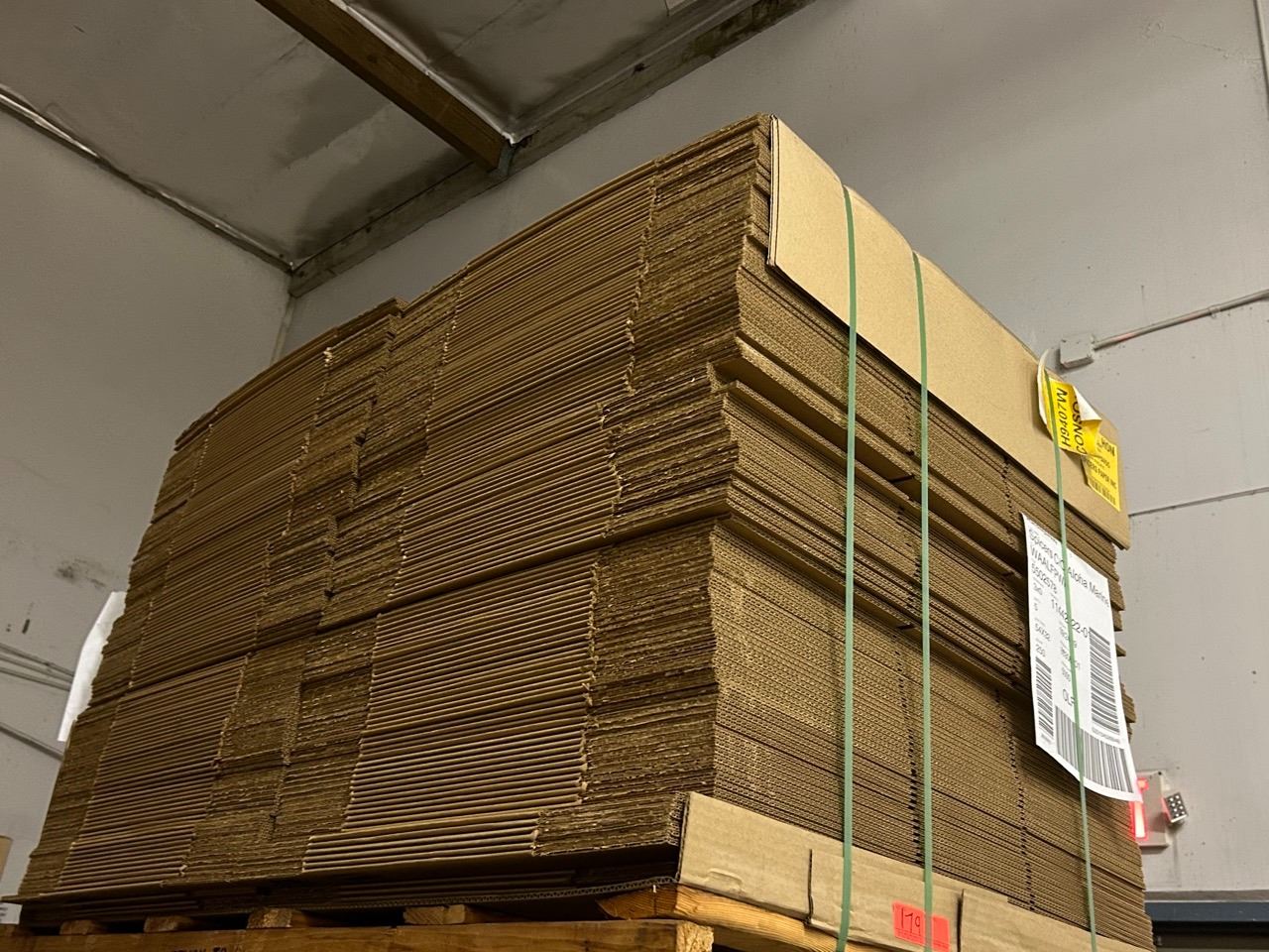 Qty 250 Unused Cardboard Boxes w/ Ed & Don's Logo 19"x11"14"H (all strapped onto 1 pallet)